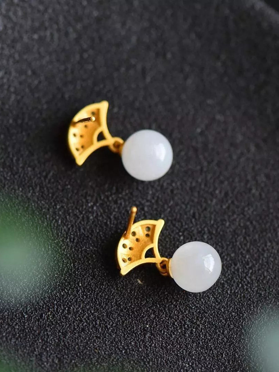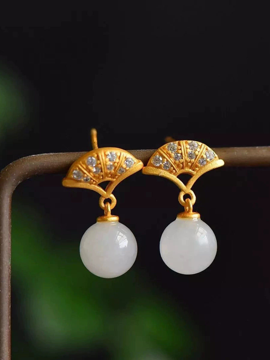 Boucles d'oreilles éventail vintage pour femmes en alliage de jade et boucles d'oreilles éventail