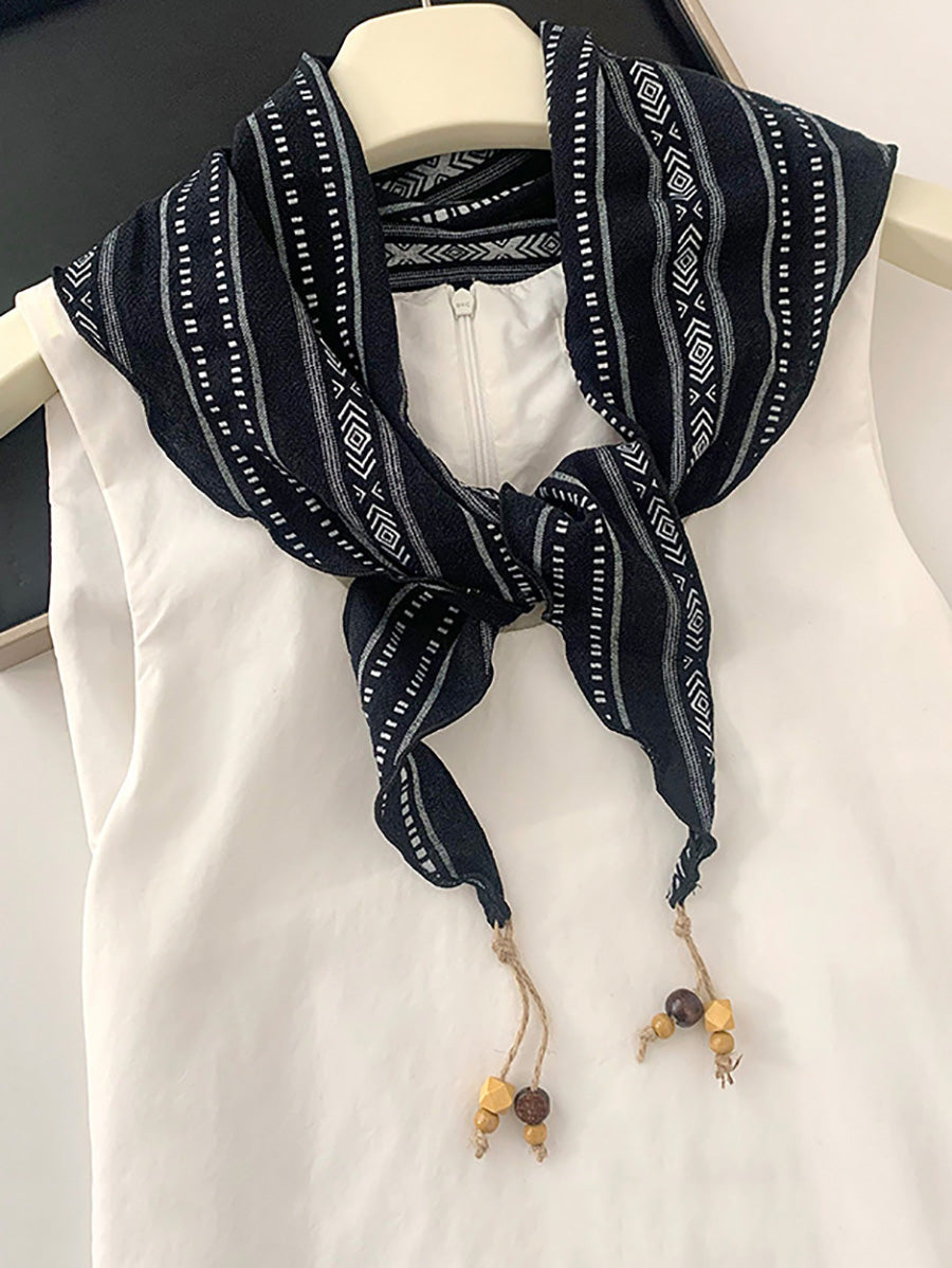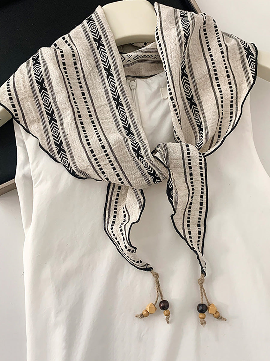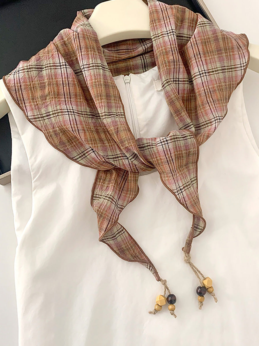 Écharpe triangulaire vintage à carreaux, perles et pompons pour femme