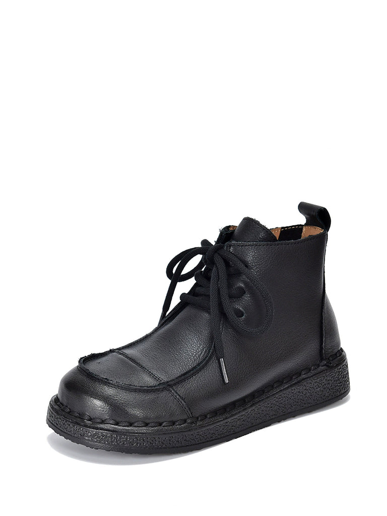 Bottines plates d'hiver en cuir véritable de couleur pure pour femmes