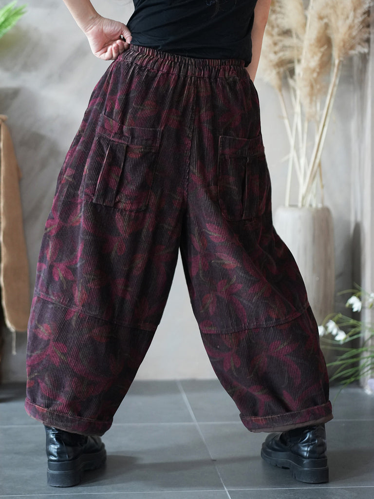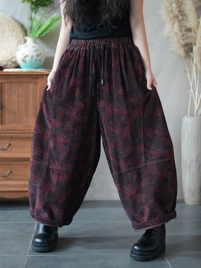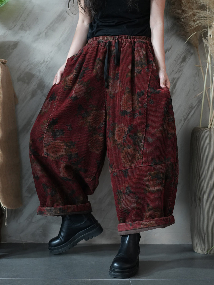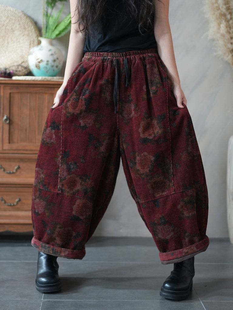 מכנסי הרמון מרופדים פרחוניים בסגנון חורף לנשים