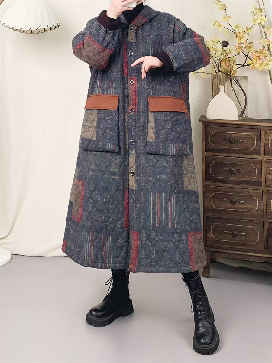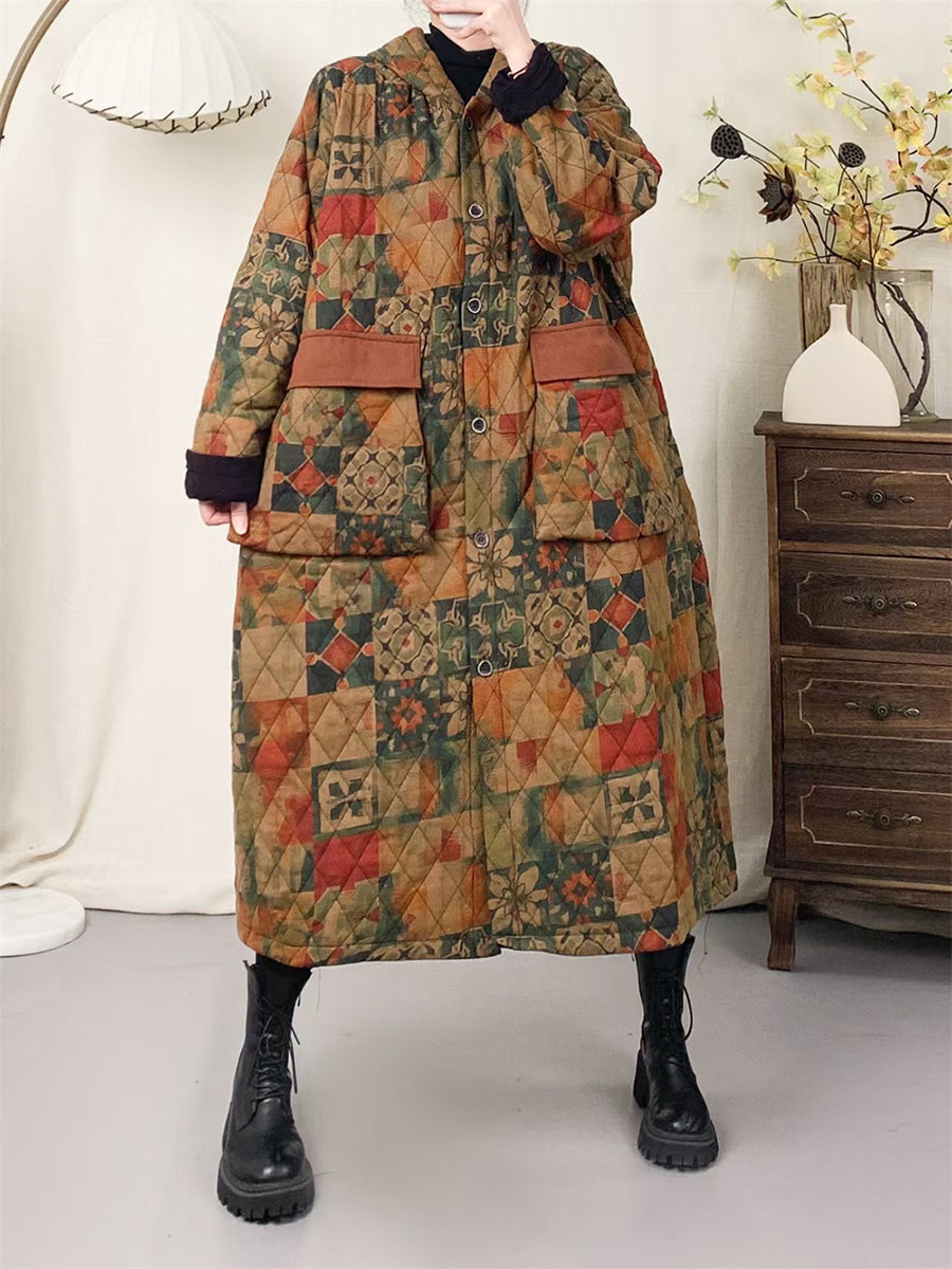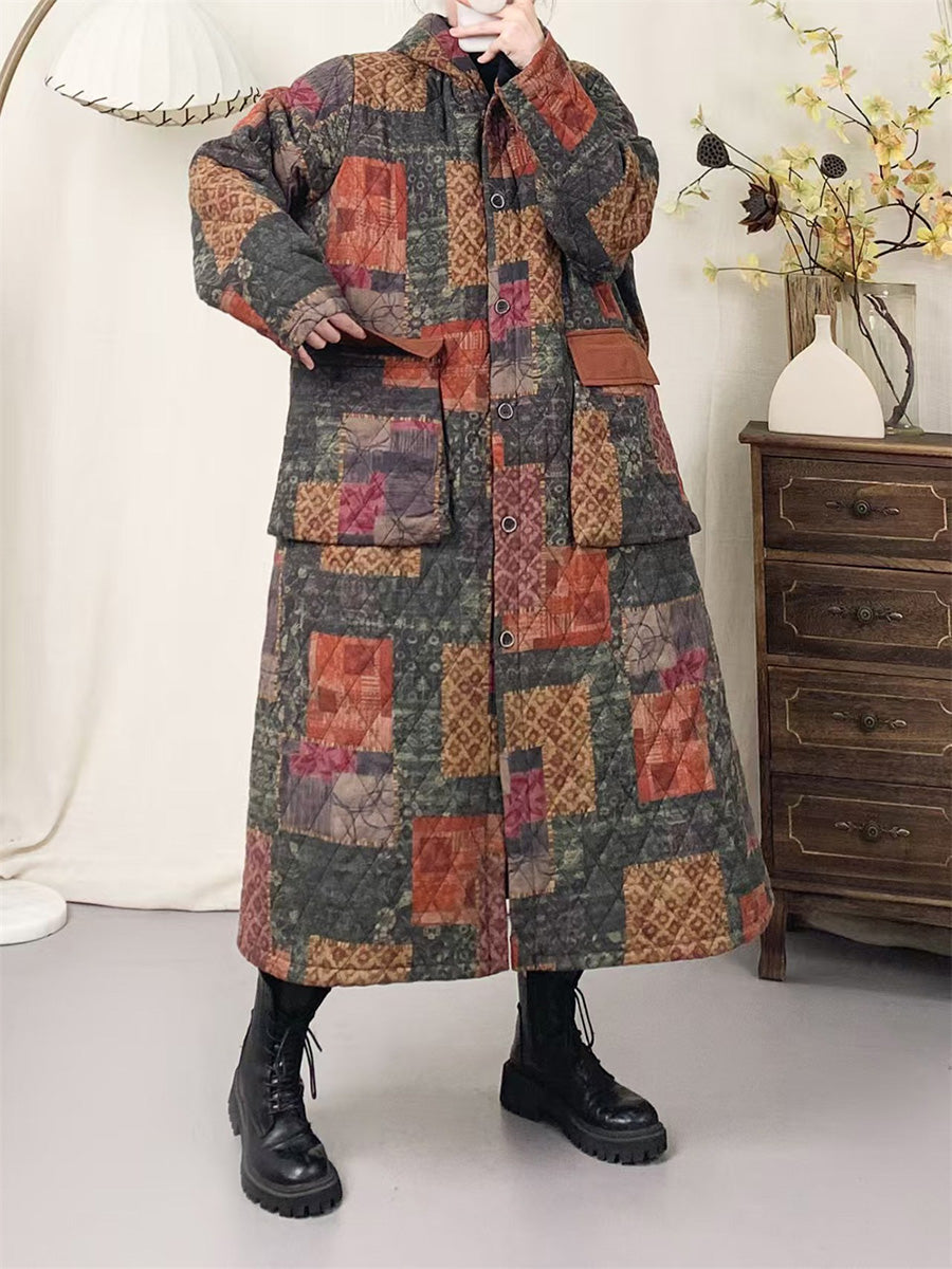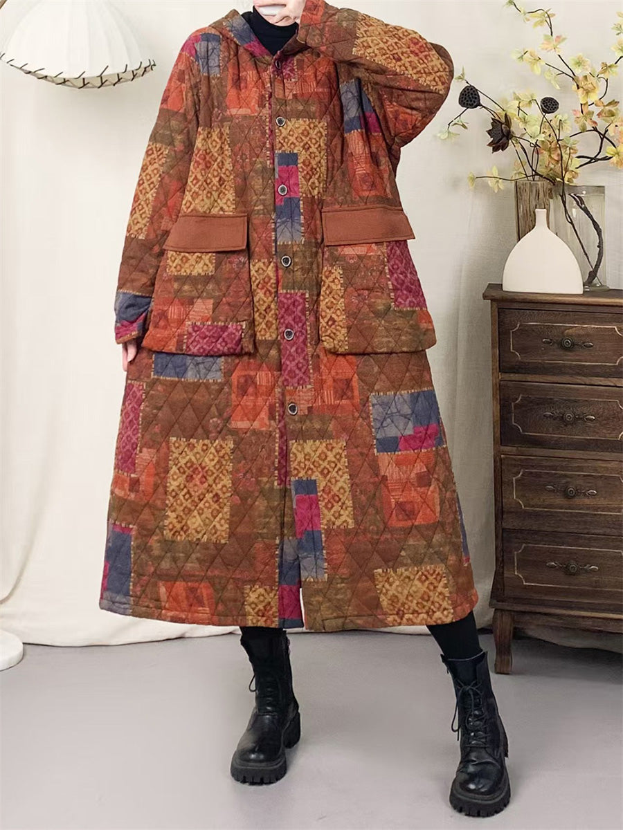 מעיל כותנה מרופד עם קפוצ'ון וטלאים לחורף לנשים