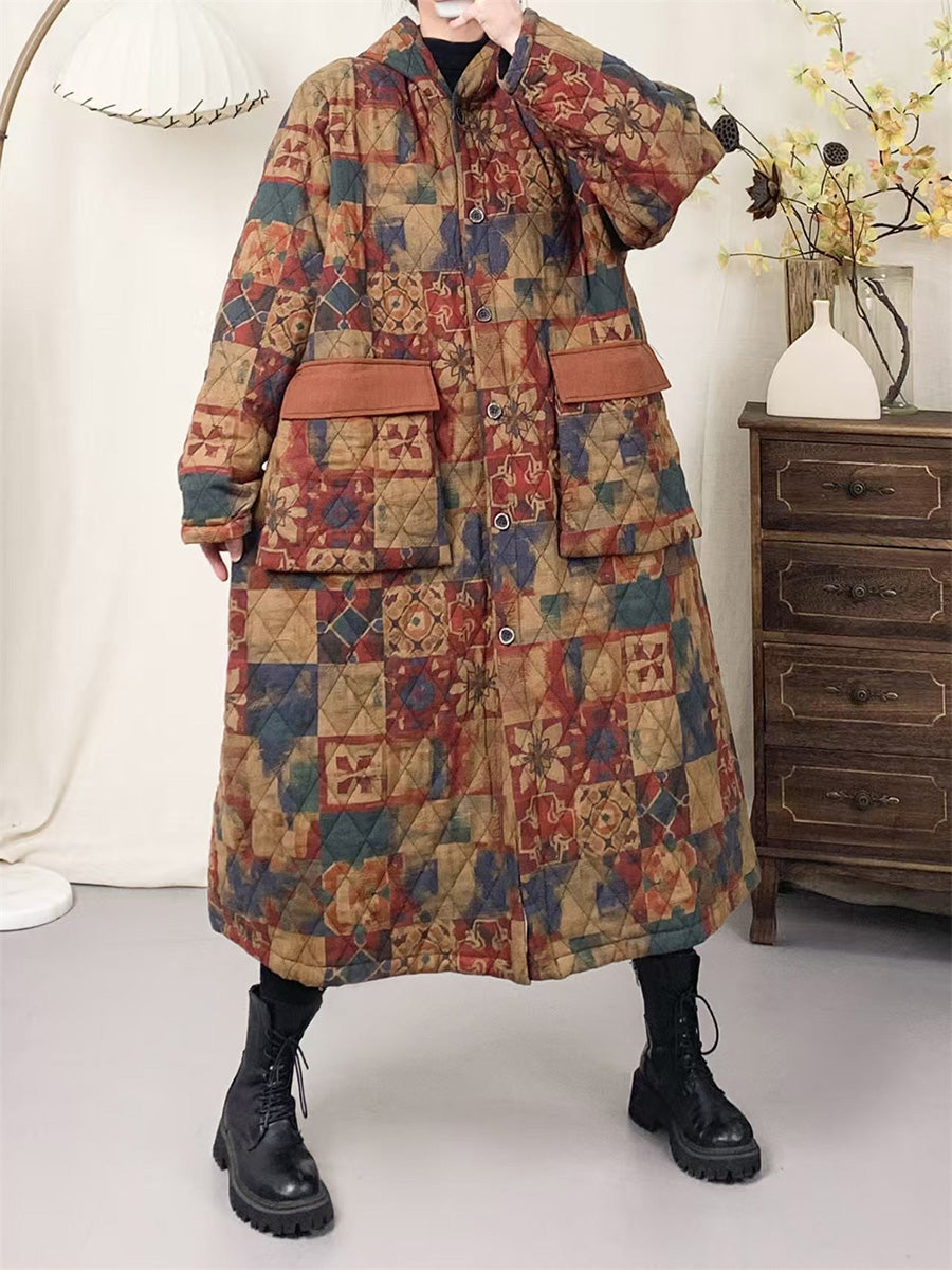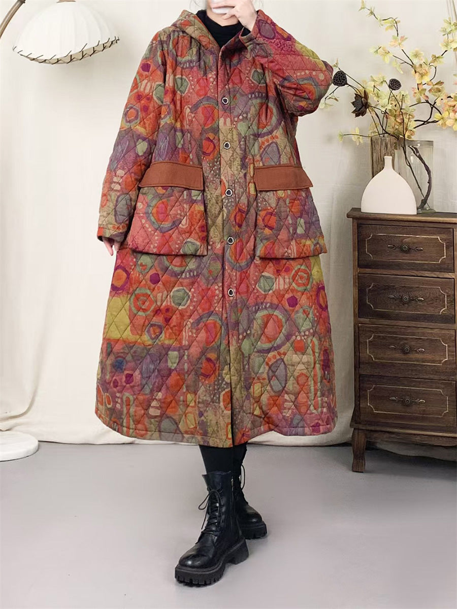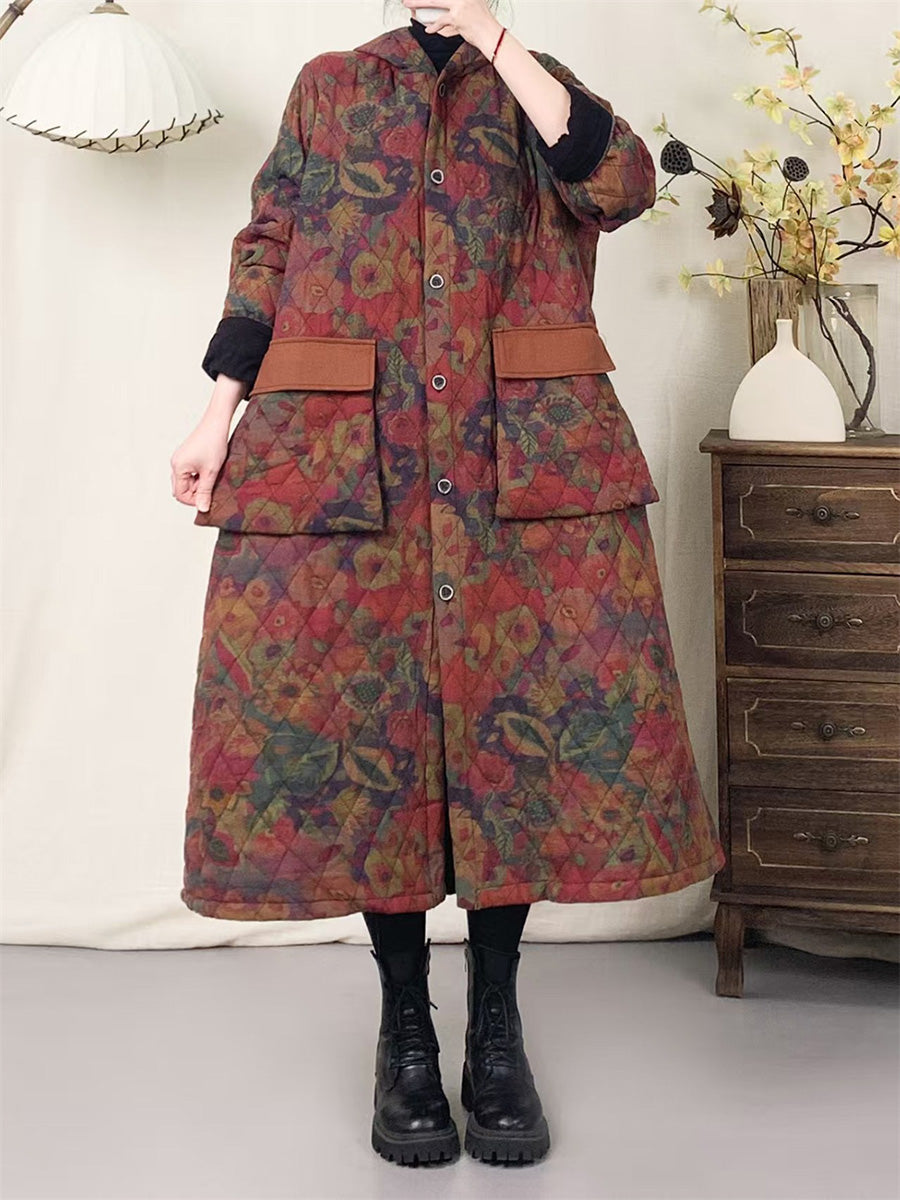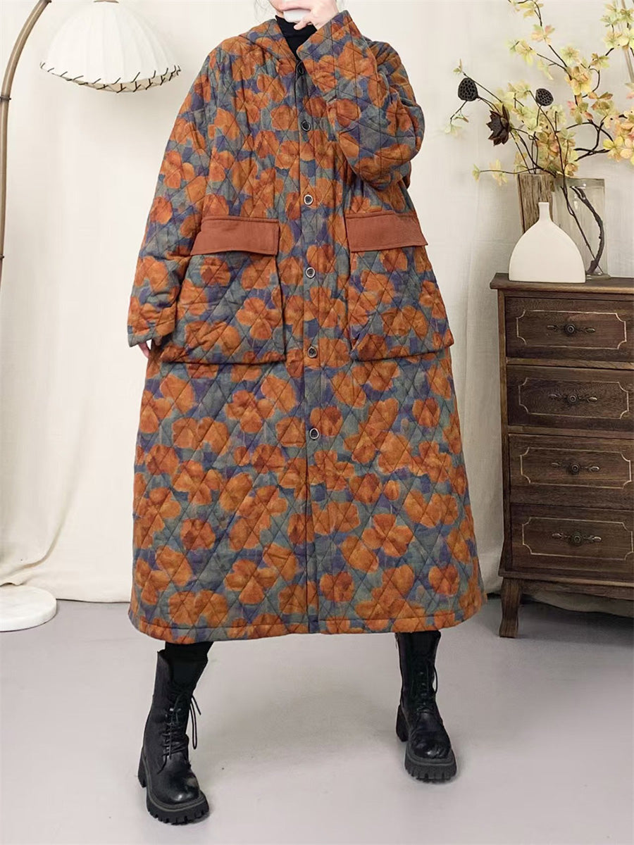 מעיל כותנה מרופד עם קפוצ'ון וטלאים לחורף לנשים