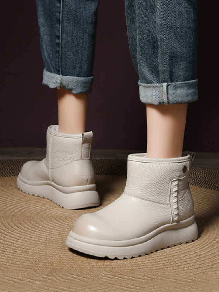 מגפי פלטפורמה מעור אמיתי לנשים בחורף