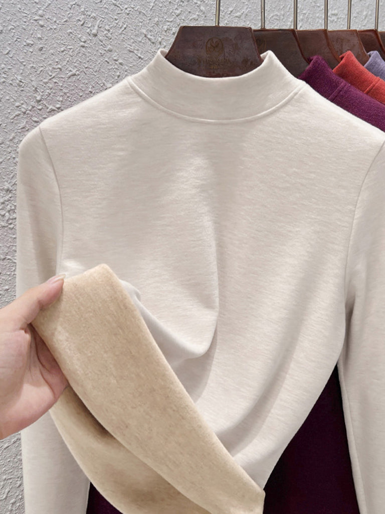 חולצה מזדמנת עם בטנת פליז לנשים בסתיו ובחצאית עם צווארון גולף