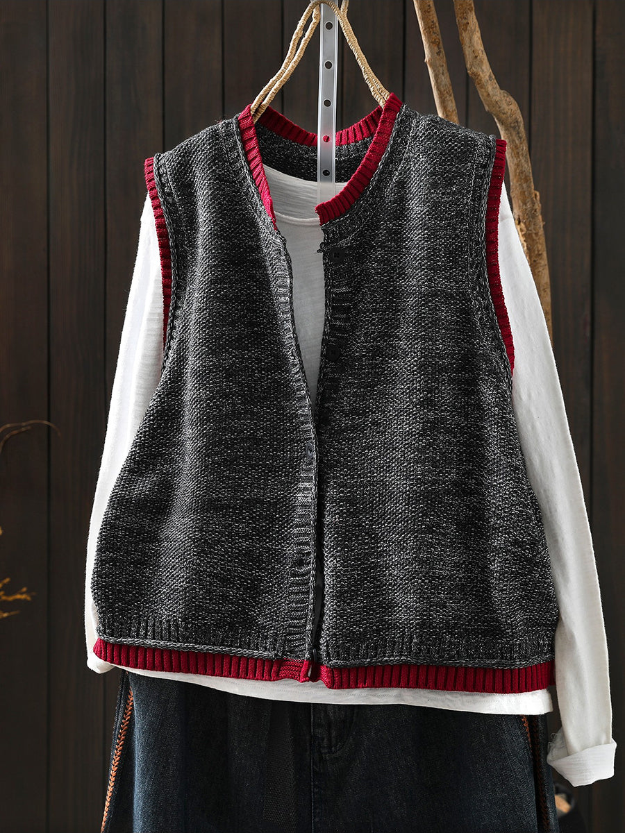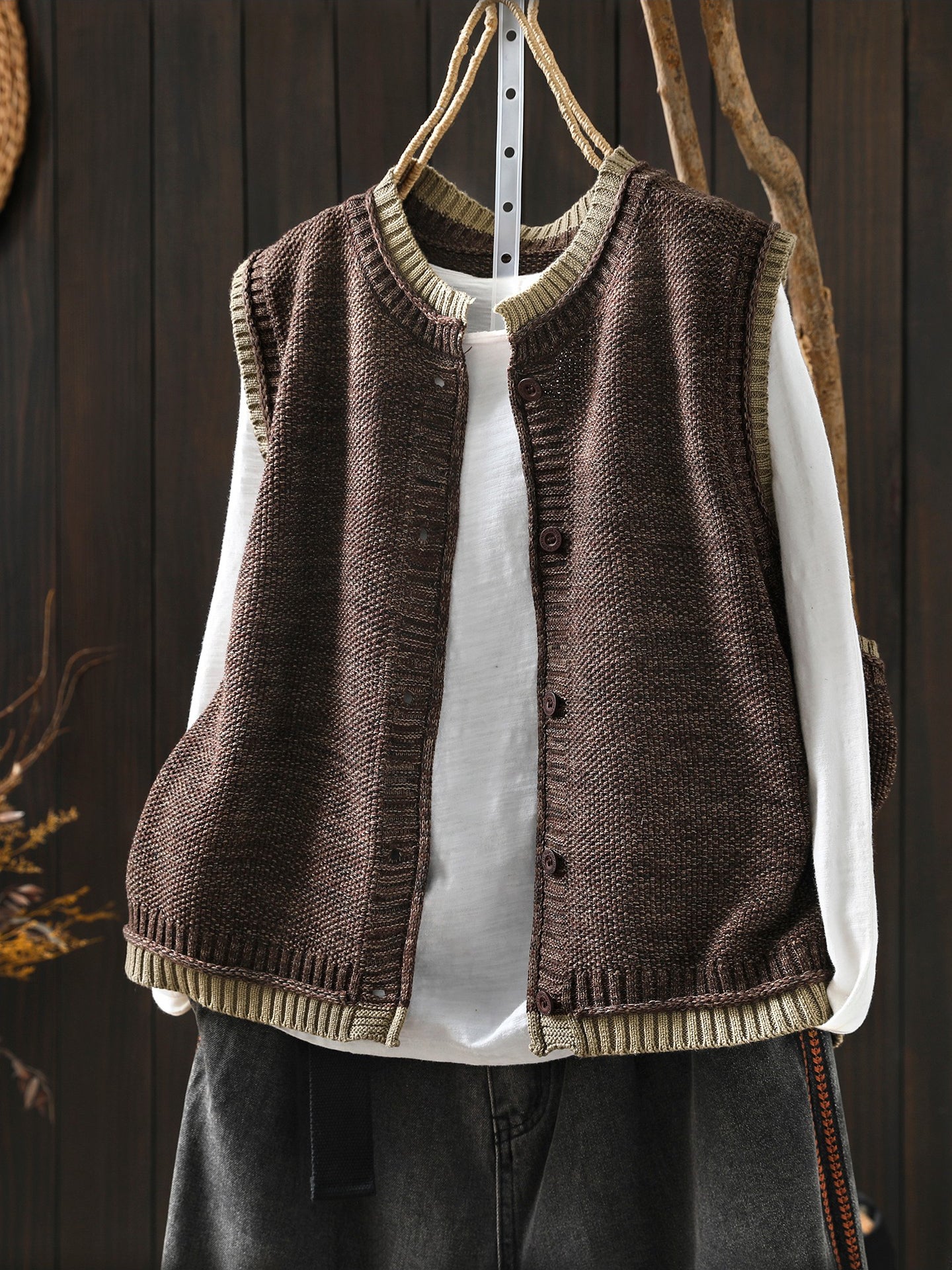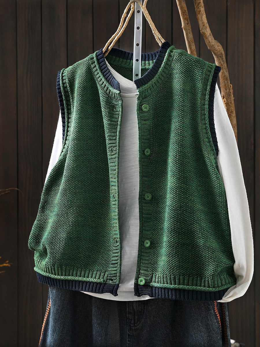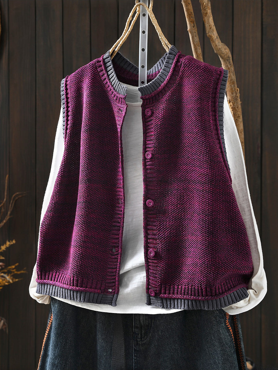 אפוד סרוג עם צווארון O וצבעים צבעוניים באביב לנשים