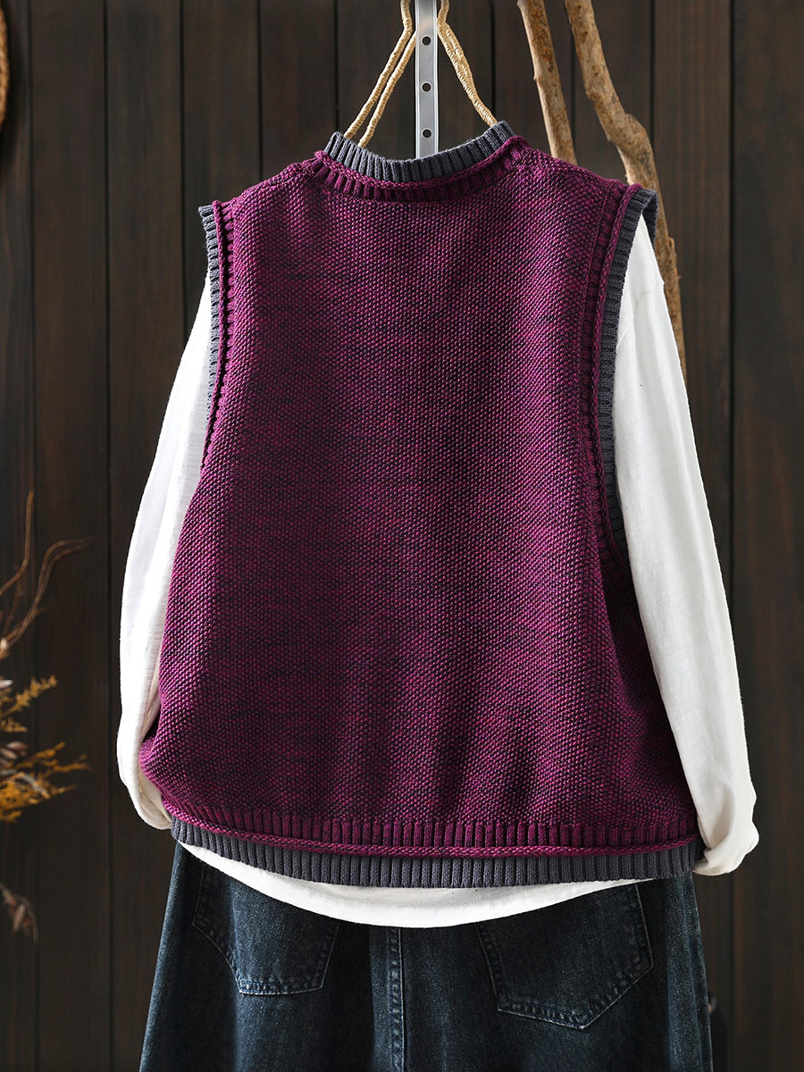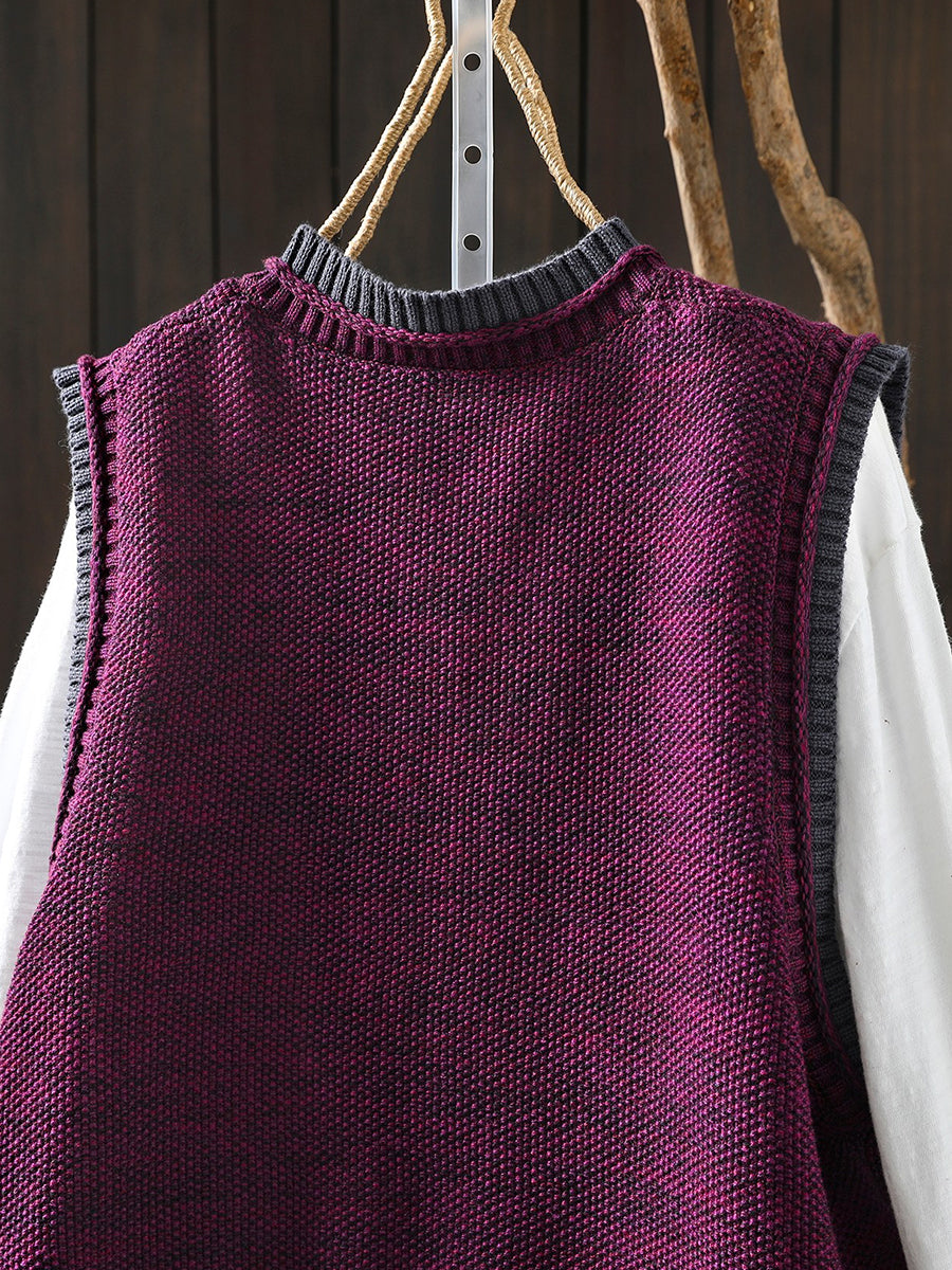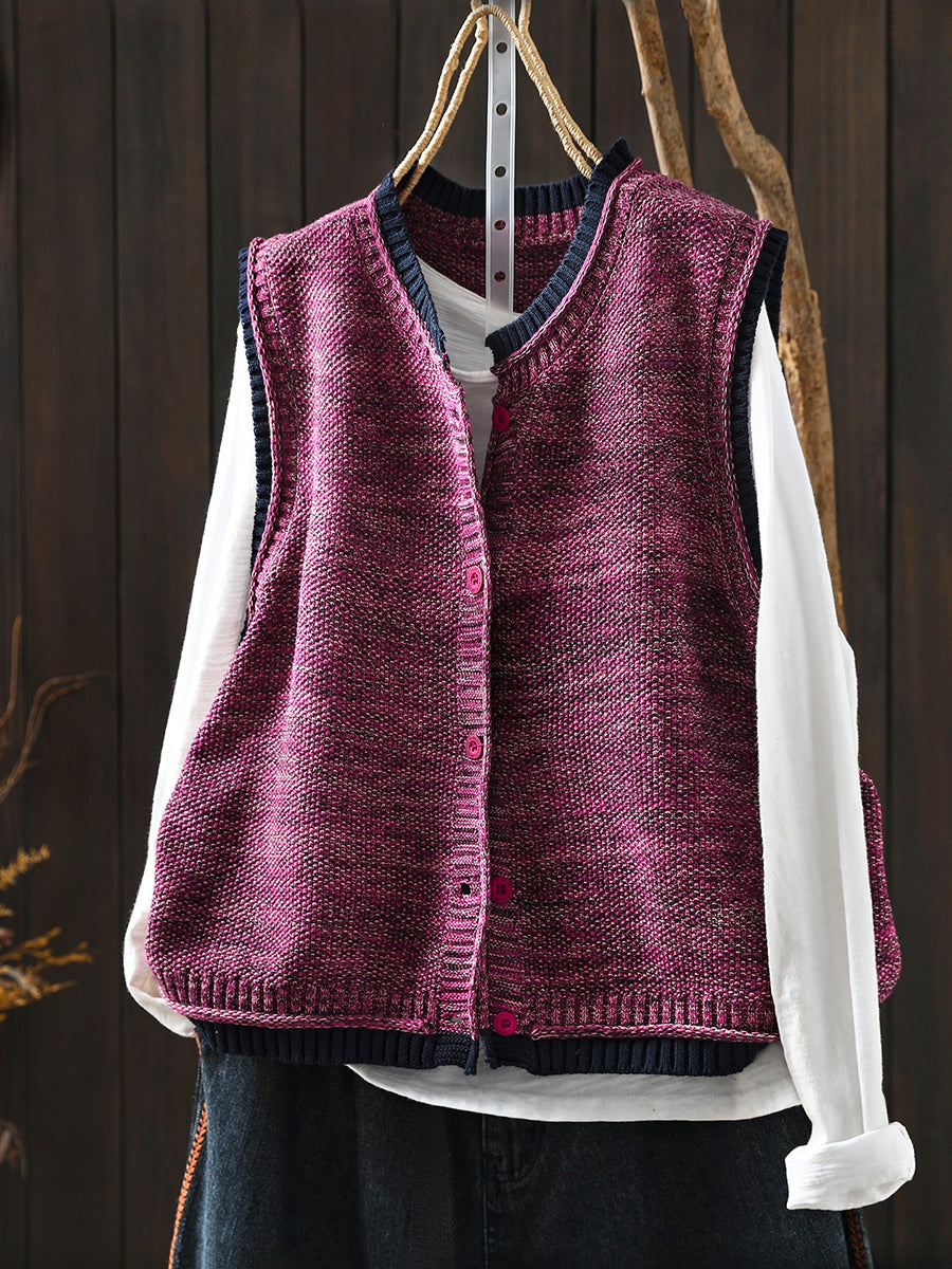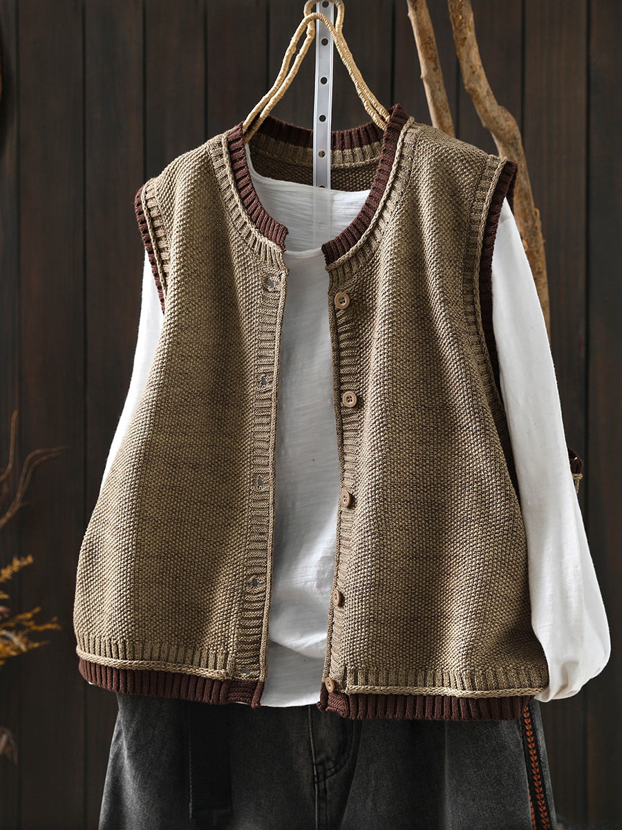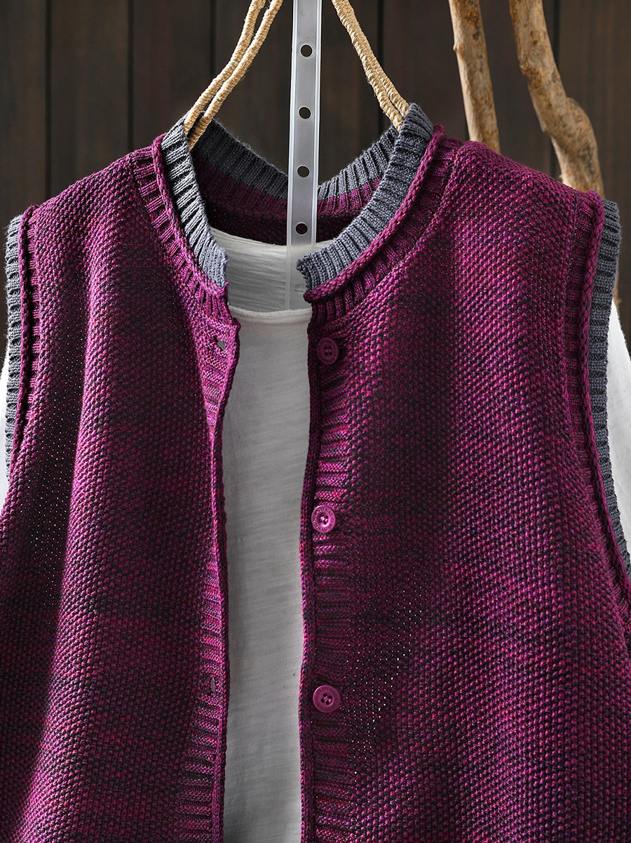 אפוד סרוג עם צווארון O וצבעים צבעוניים באביב לנשים