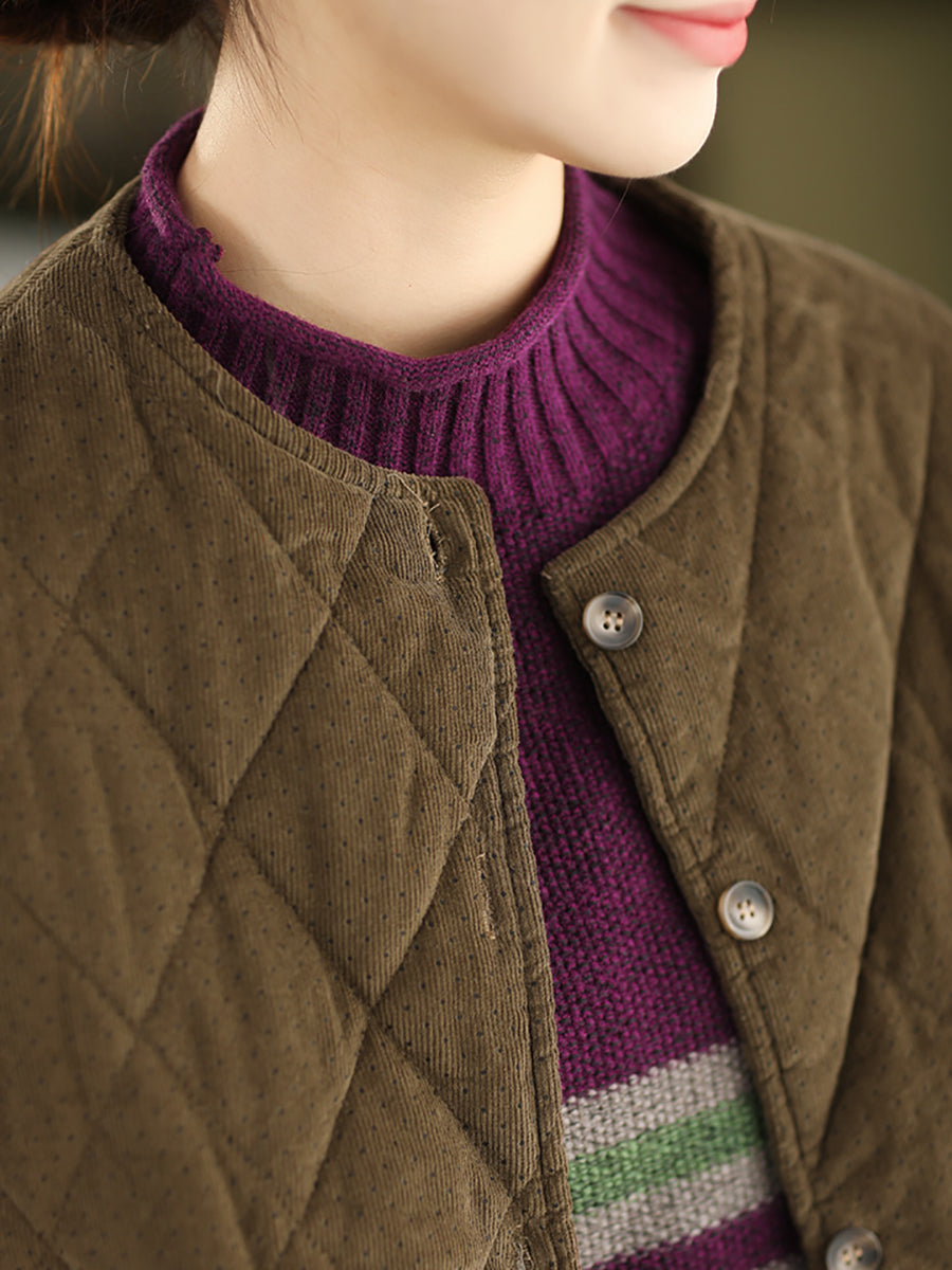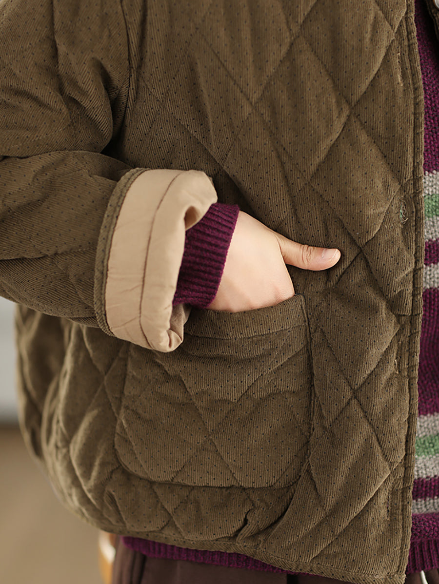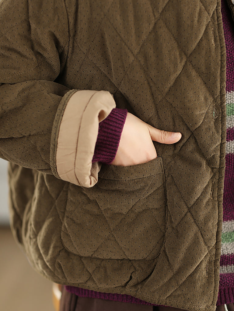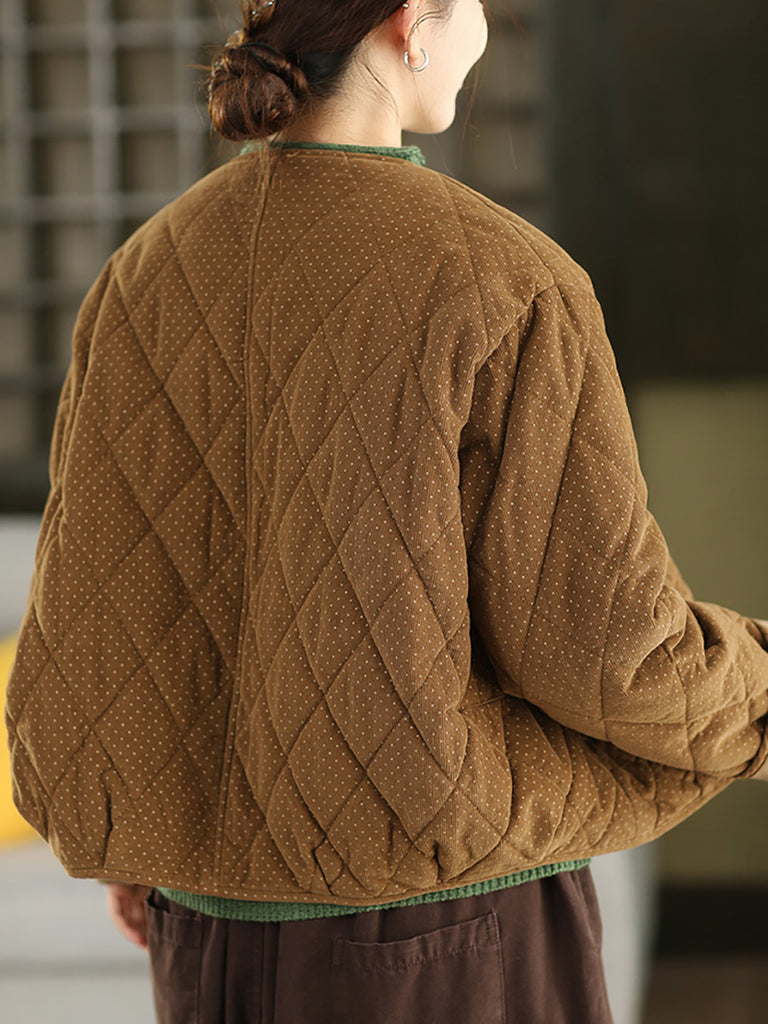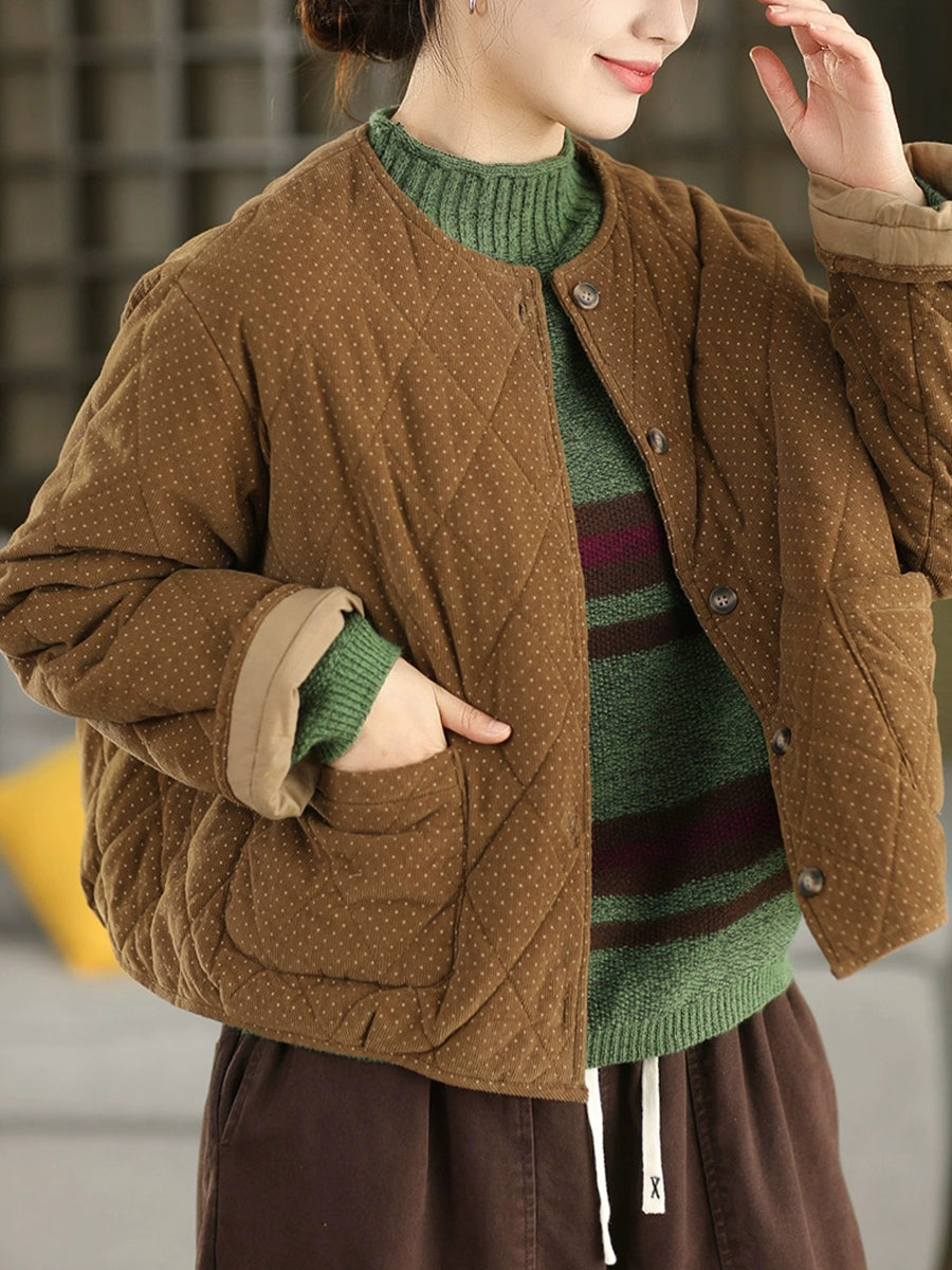 מעיל קורדרוי מרופד עם צווארון O ונקודות בסגנון רטרו לנשים לחורף