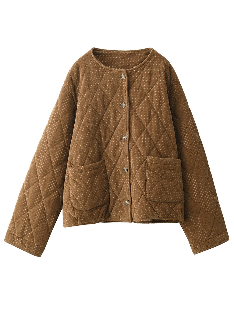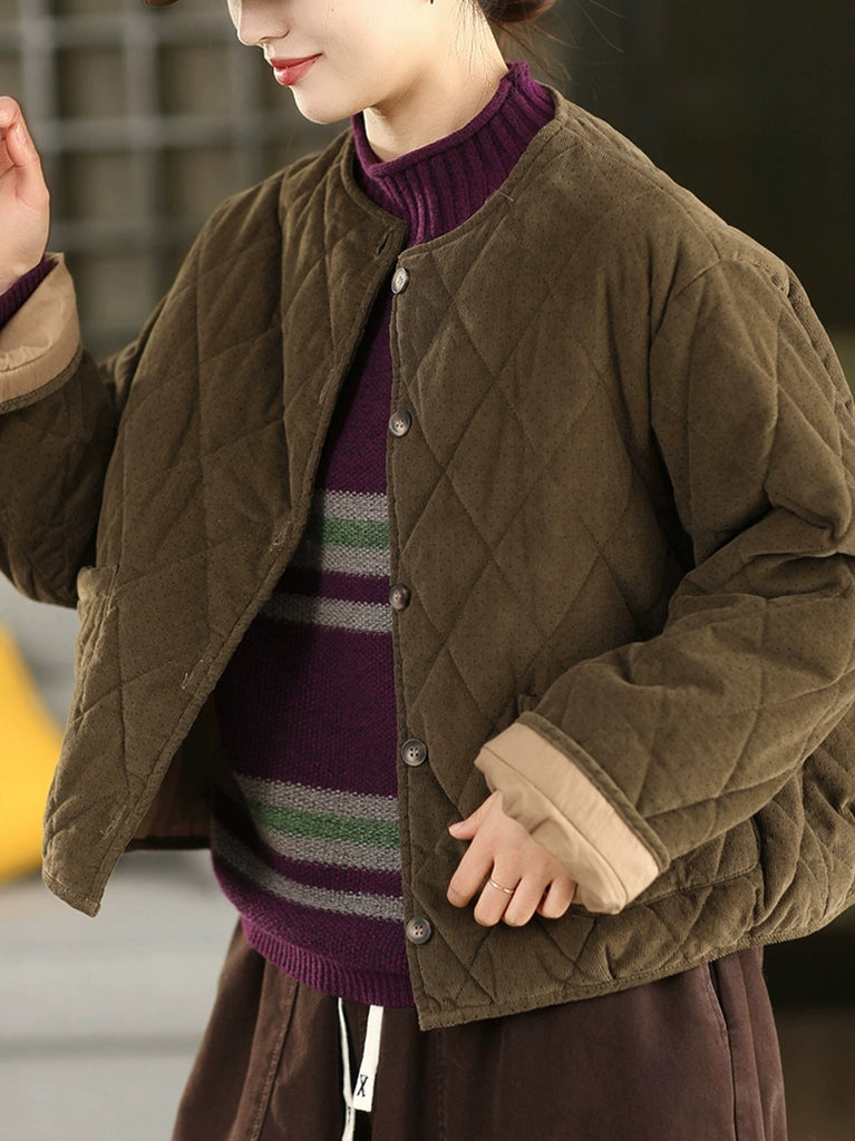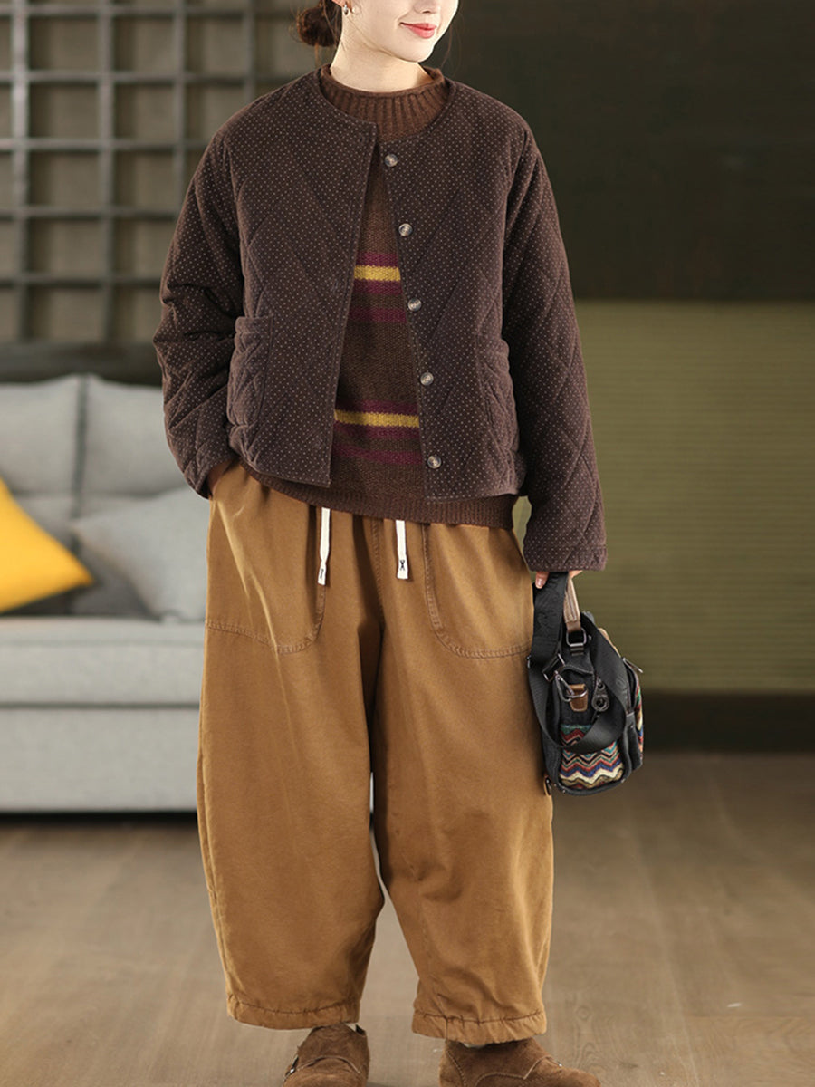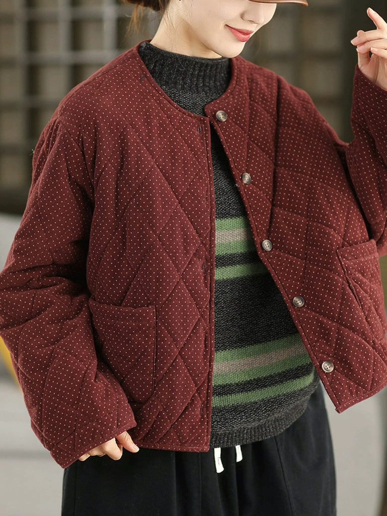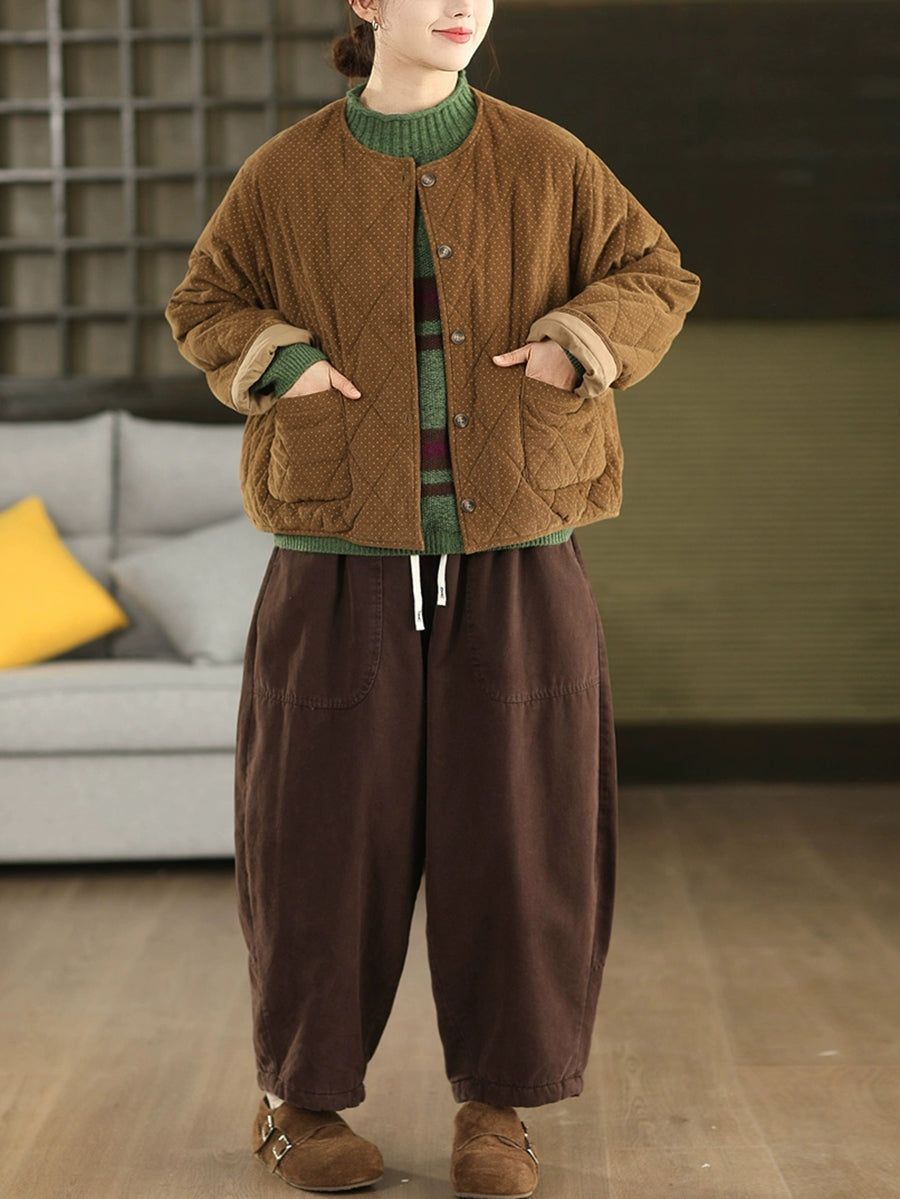 מעיל קורדרוי מרופד עם צווארון O ונקודות בסגנון רטרו לנשים לחורף