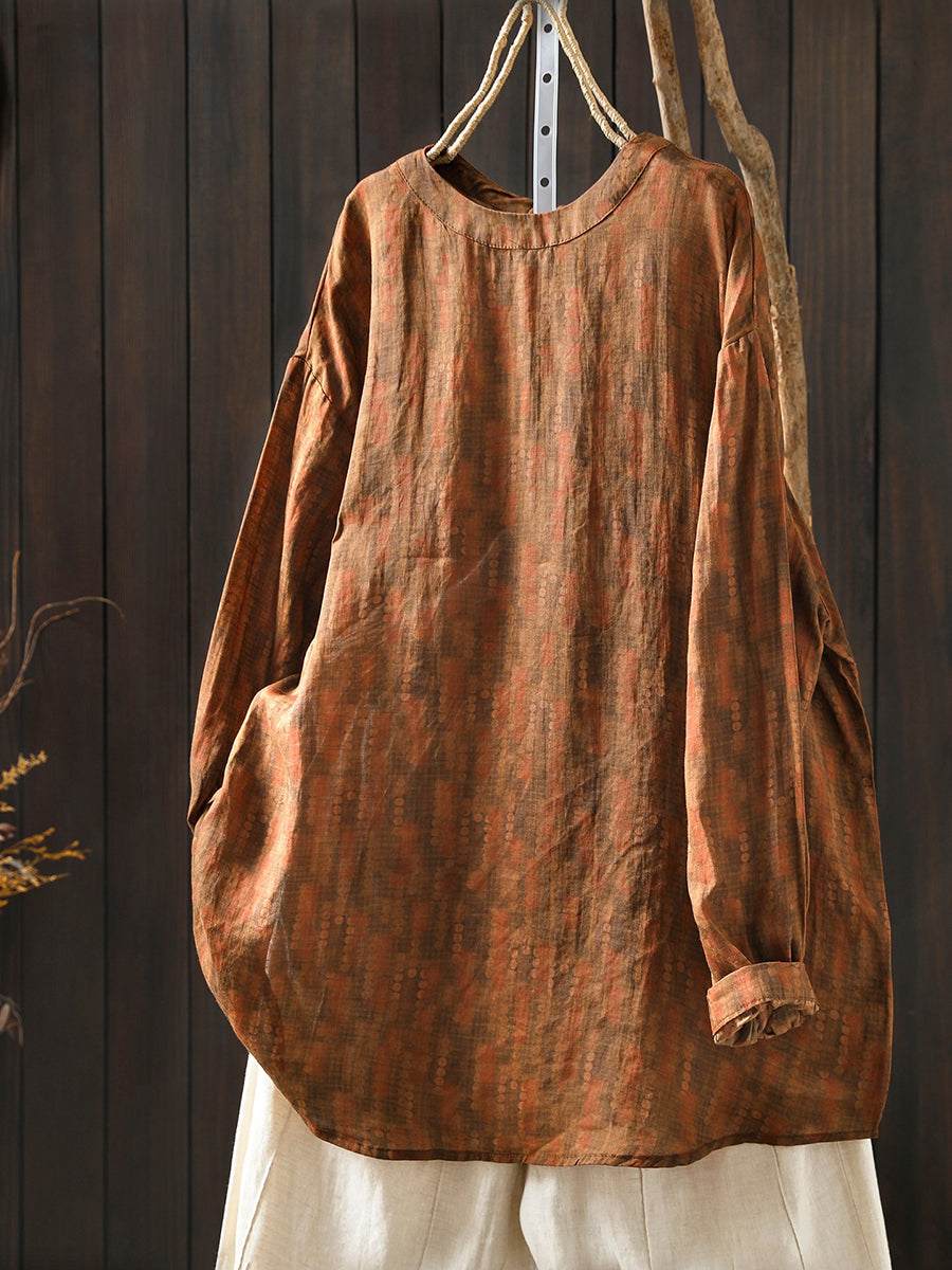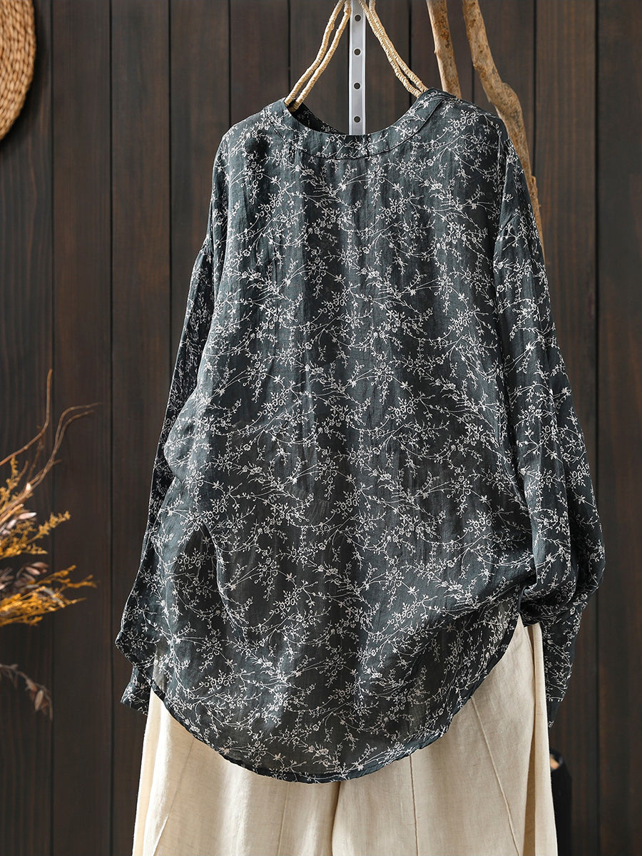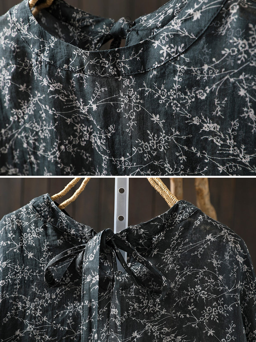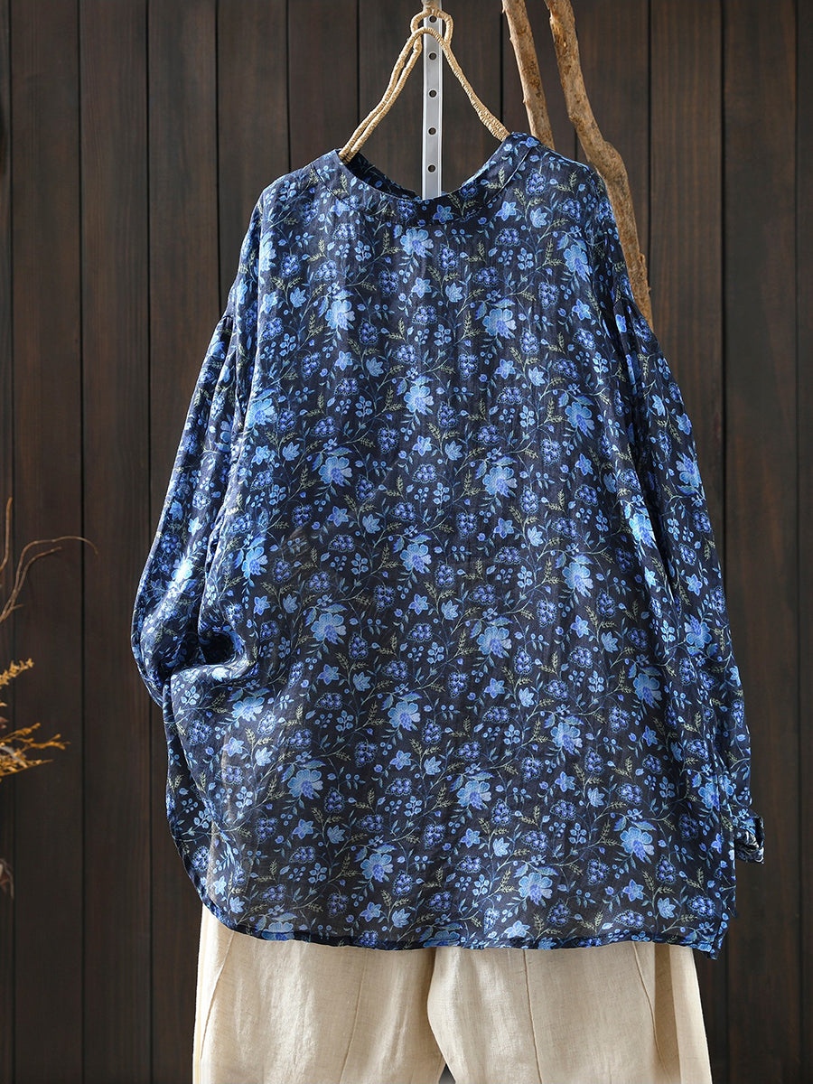 חולצה פרחונית אומנותית לנשים עם צווארון O 100% רמי