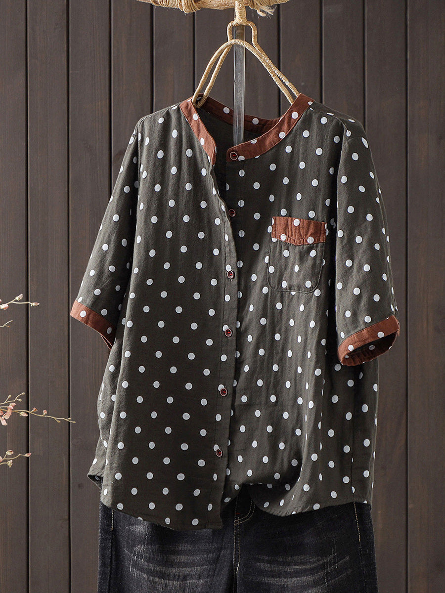 חולצת כותנה עם נקודות אומנותיות לקיץ לנשים