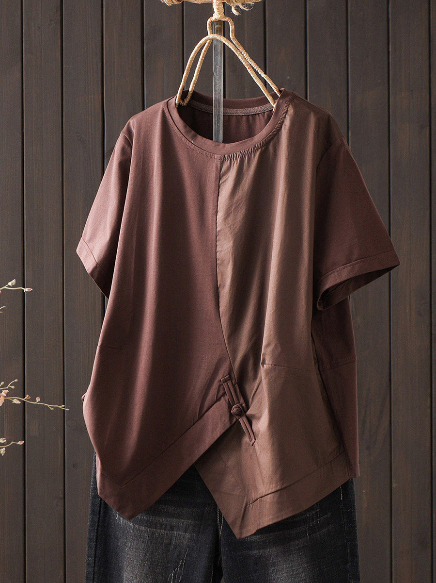 חולצת טי עם צווארון O ושוליים אתניים בקיץ לנשים