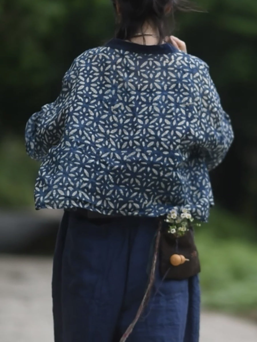 חולצת ריימה עם צווארון V ופרפרים בקיץ לנשים