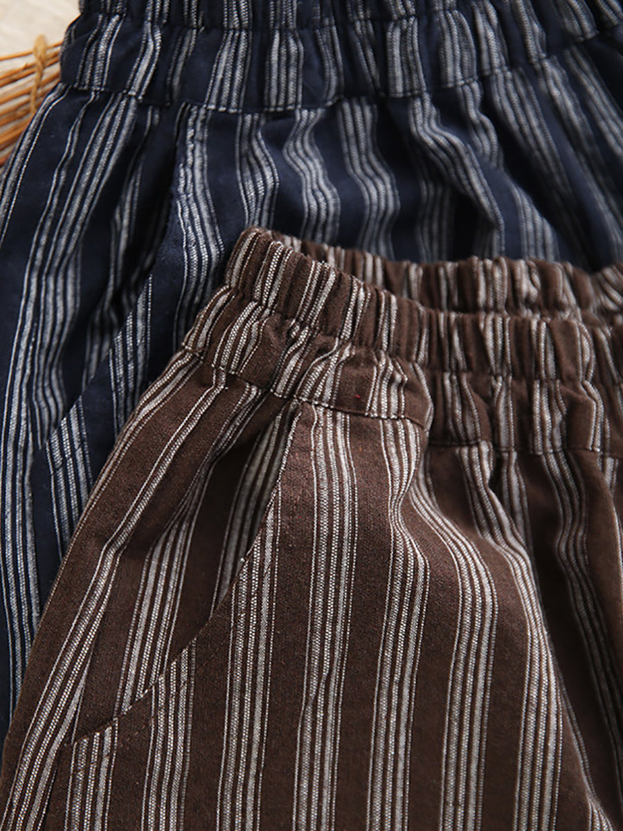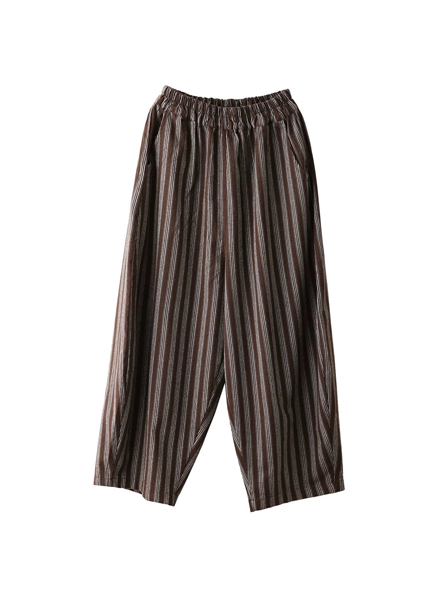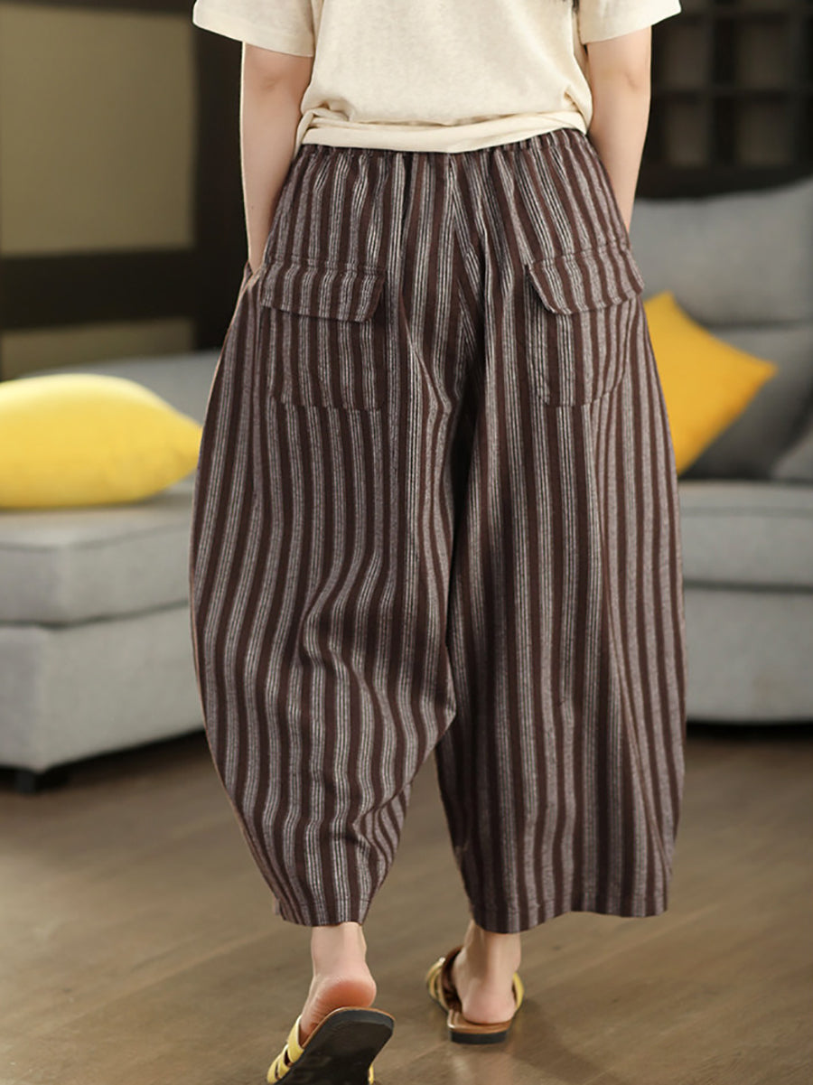 מכנסי הרמון לנשים בקיץ עם פסים רטרו 100% פשתן