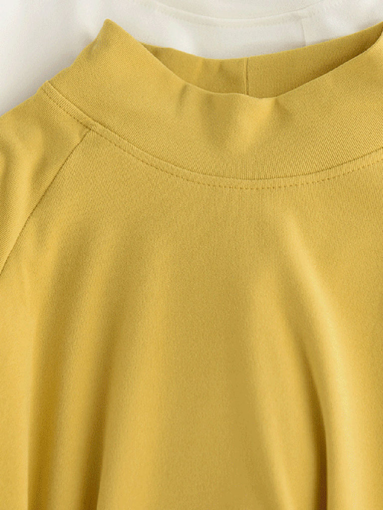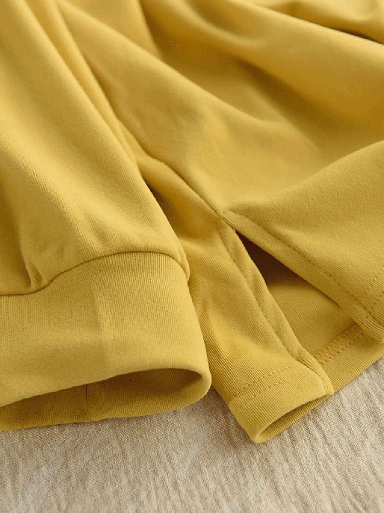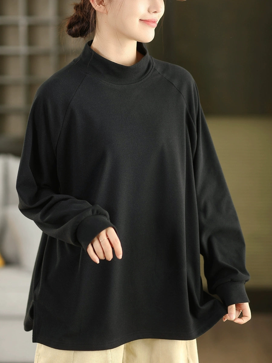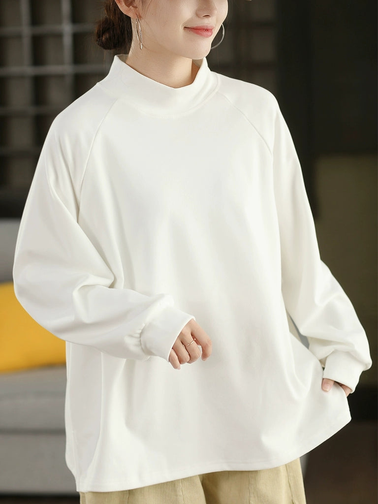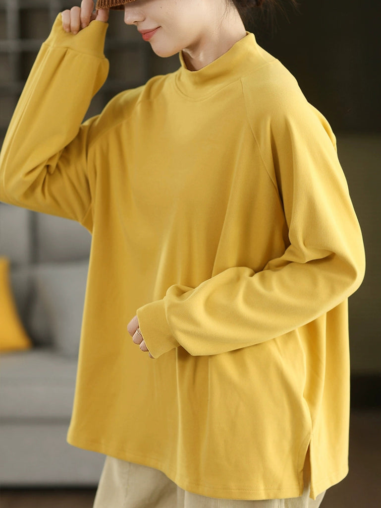 חולצה חורף אומנותית בצבע טהור לנשים עם צווארון גולף חצי 100% כותנה