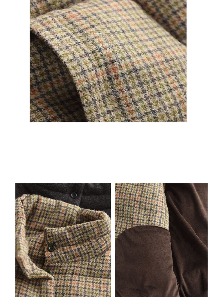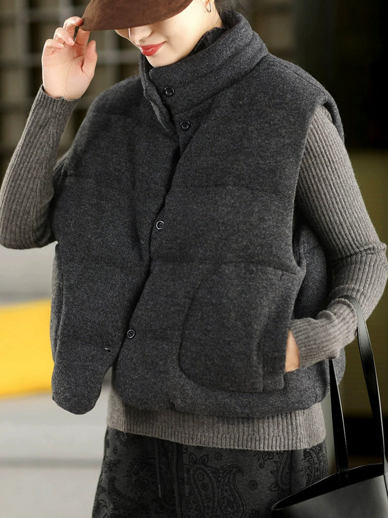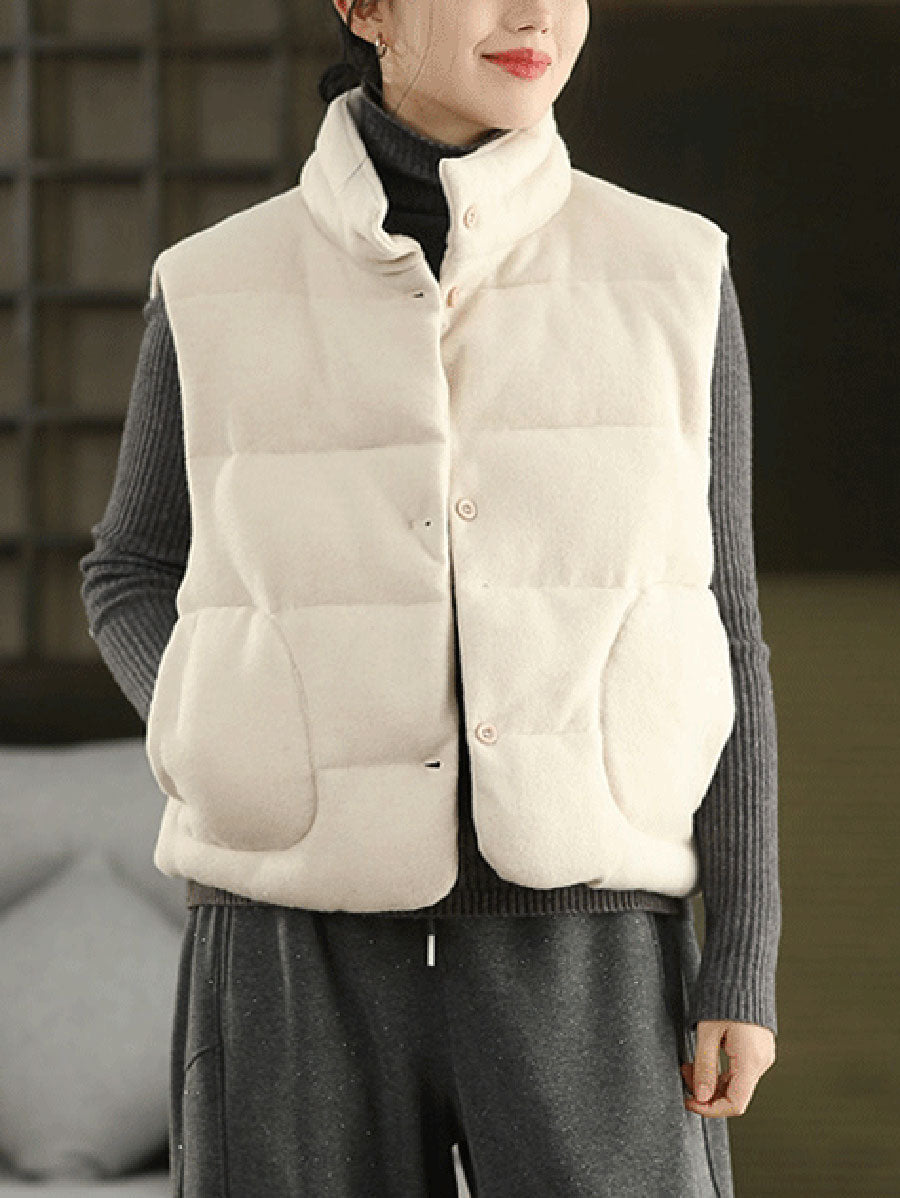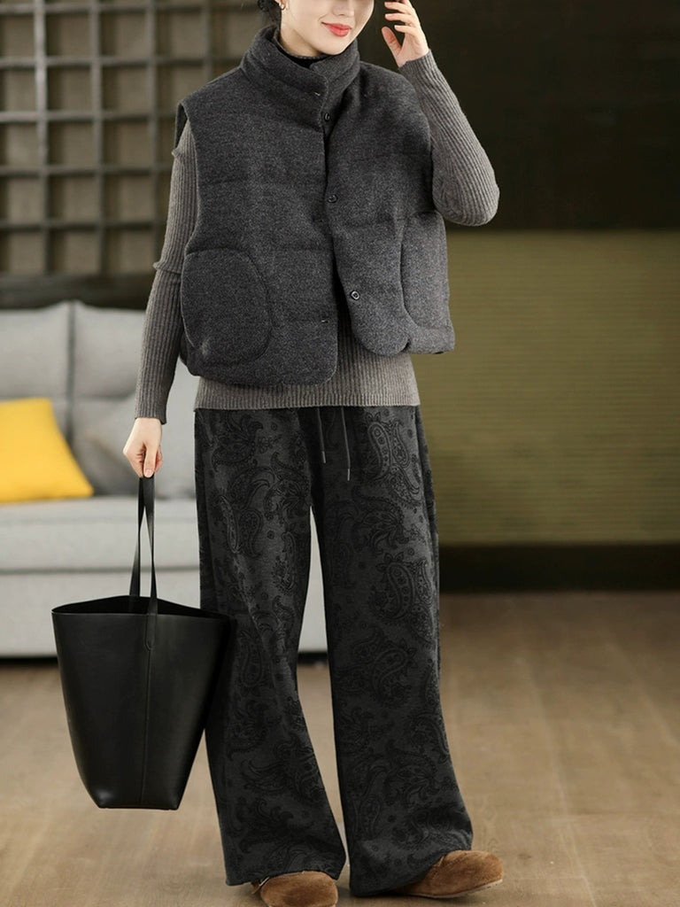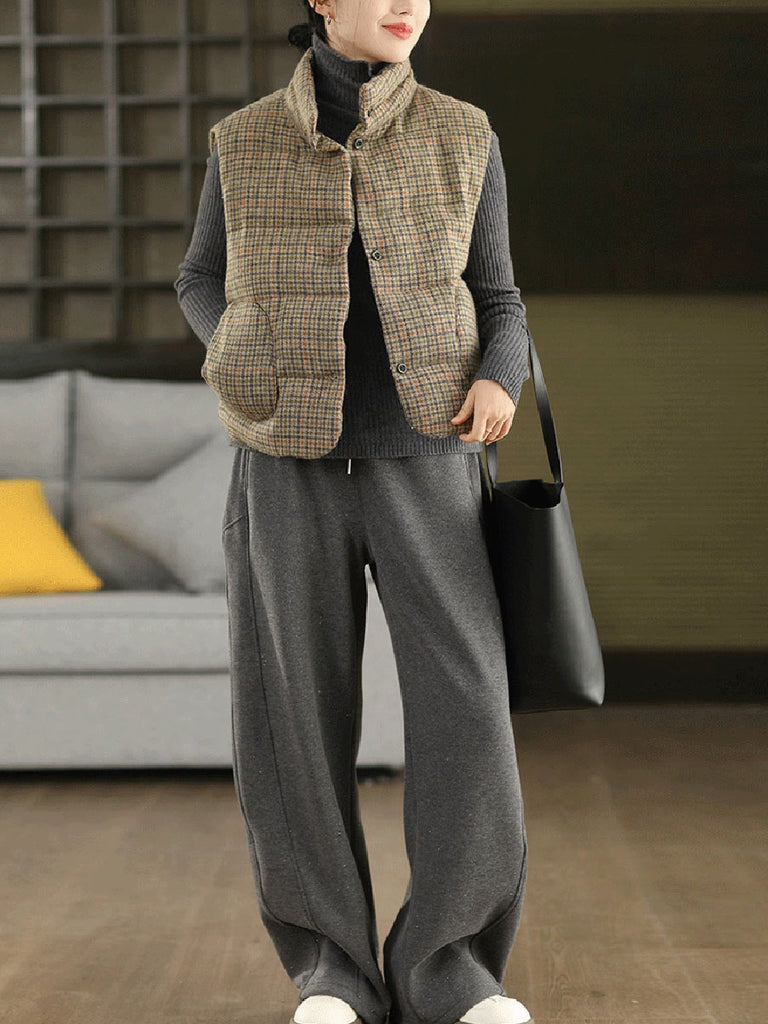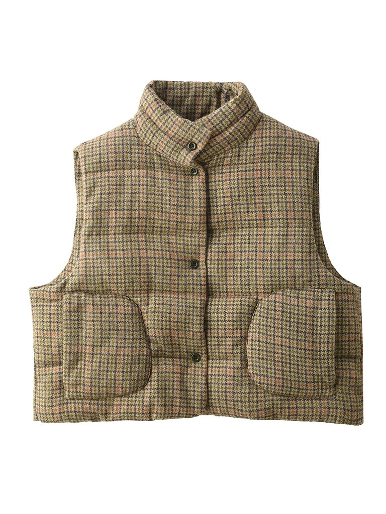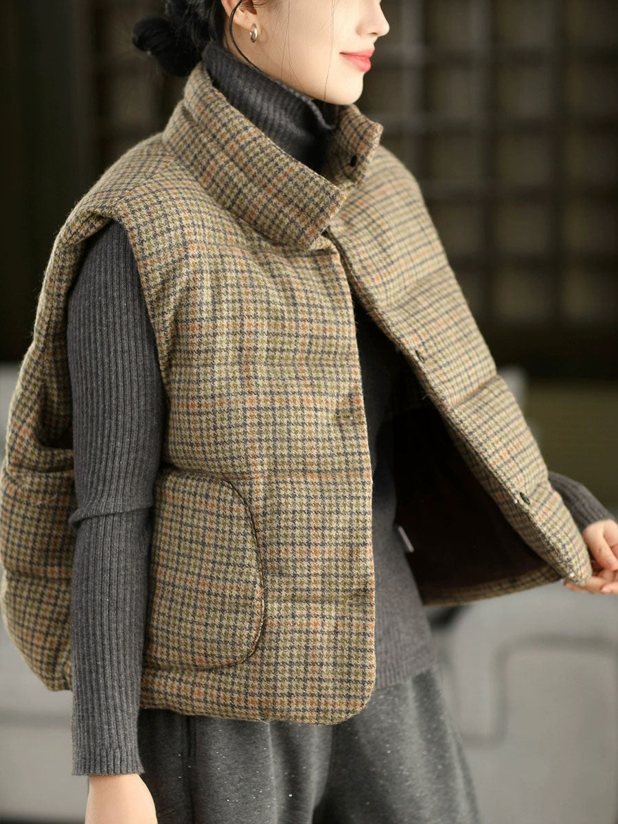 נשים חורף וינטג' משובץ צווארון עומד אפוד