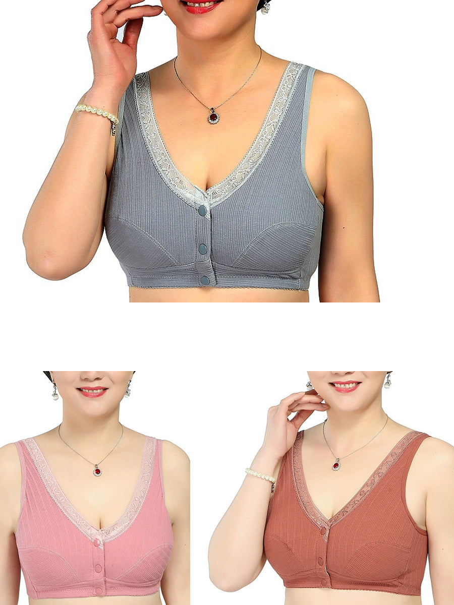 Ženski ležerni grudnjak bez žica s kopčanjem u jednobojnim bojama, 3 komada
