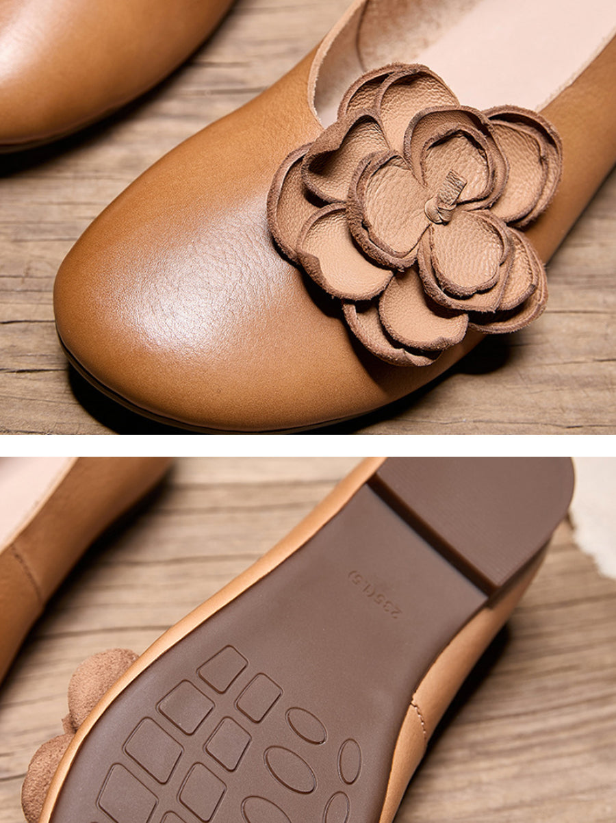 Ženske umjetničke cipele s cvjetnim uzorkom od kože i niskom petom