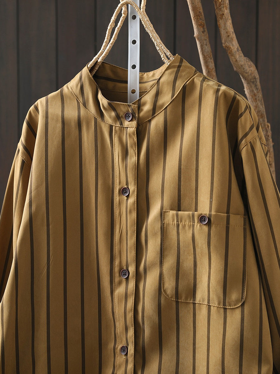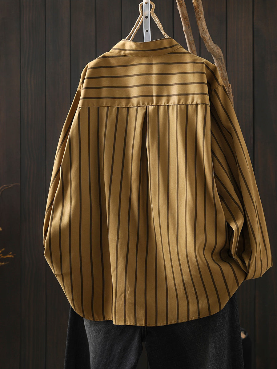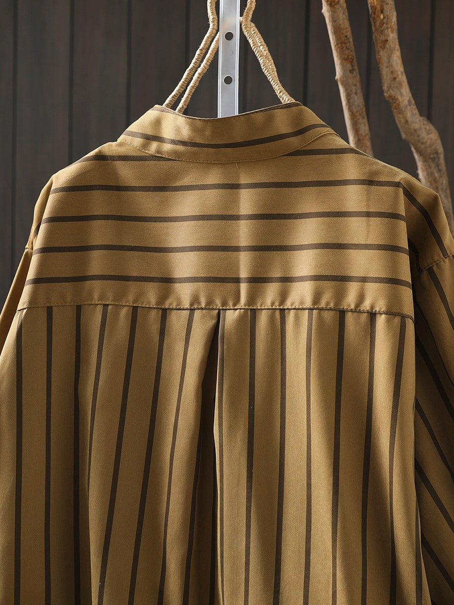 Ženska umjetnička proljetna prugasta pamučna košulja s ovratnikom