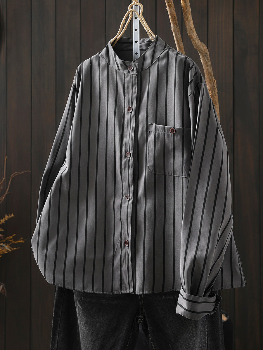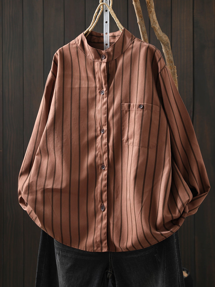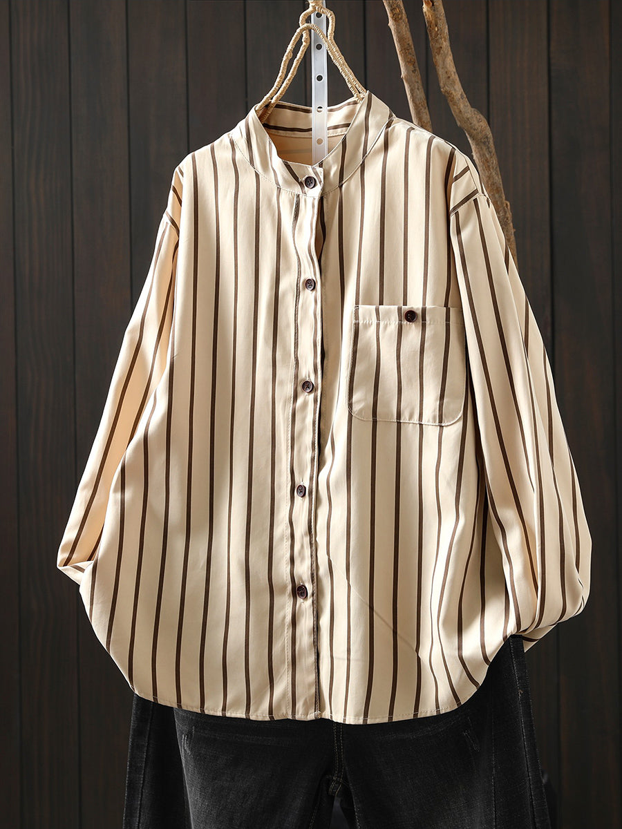 Ženska umjetnička proljetna prugasta pamučna košulja s ovratnikom