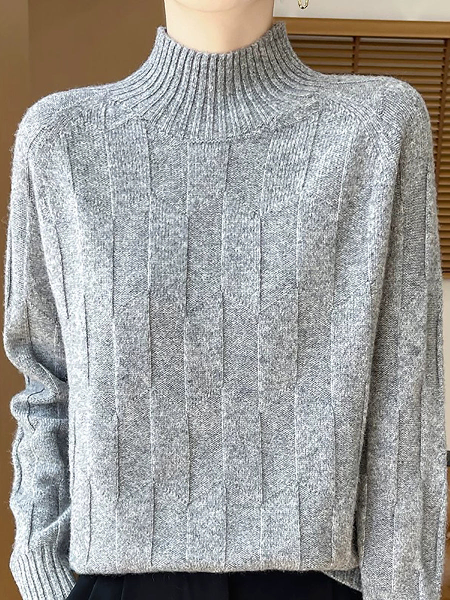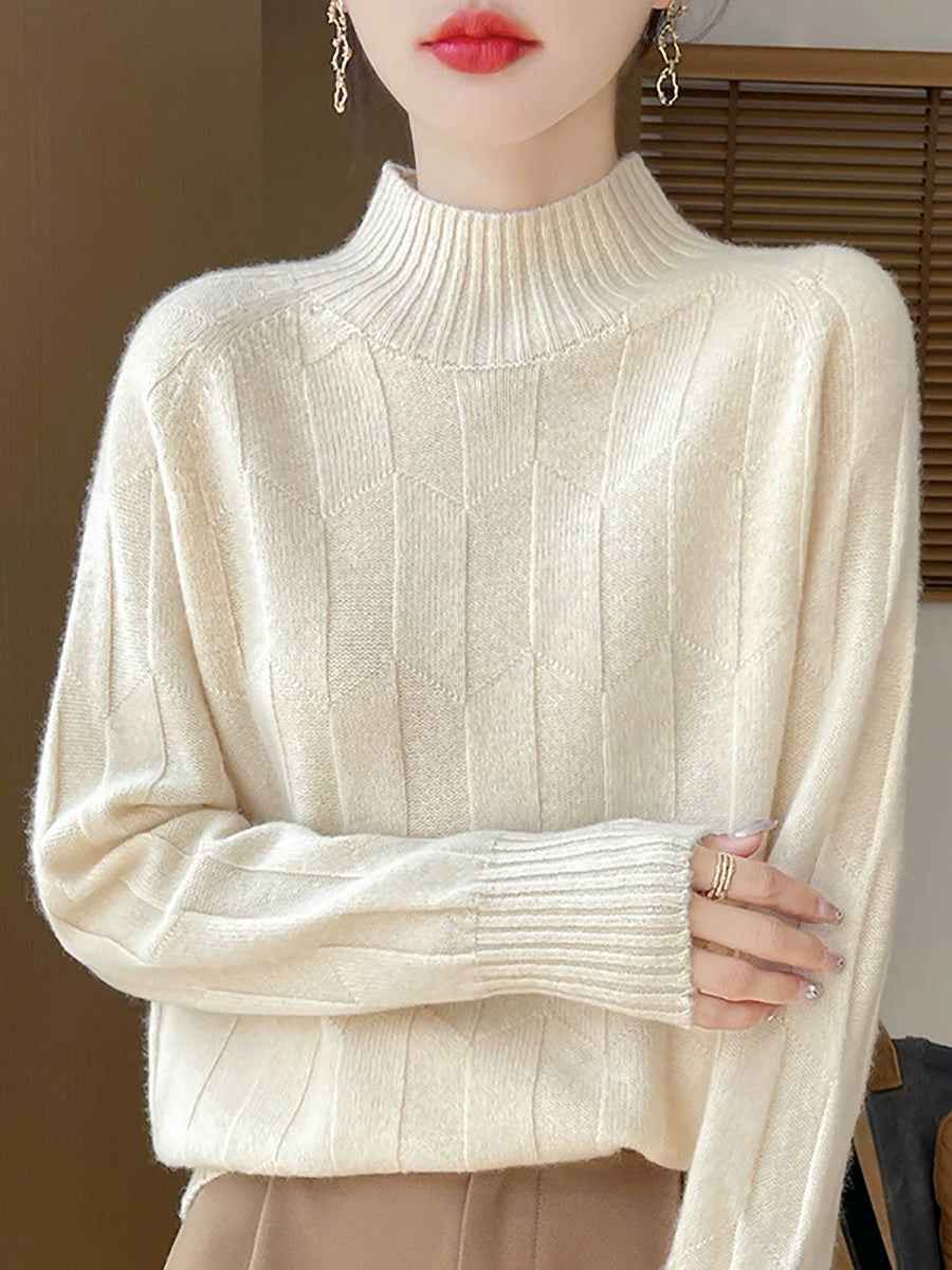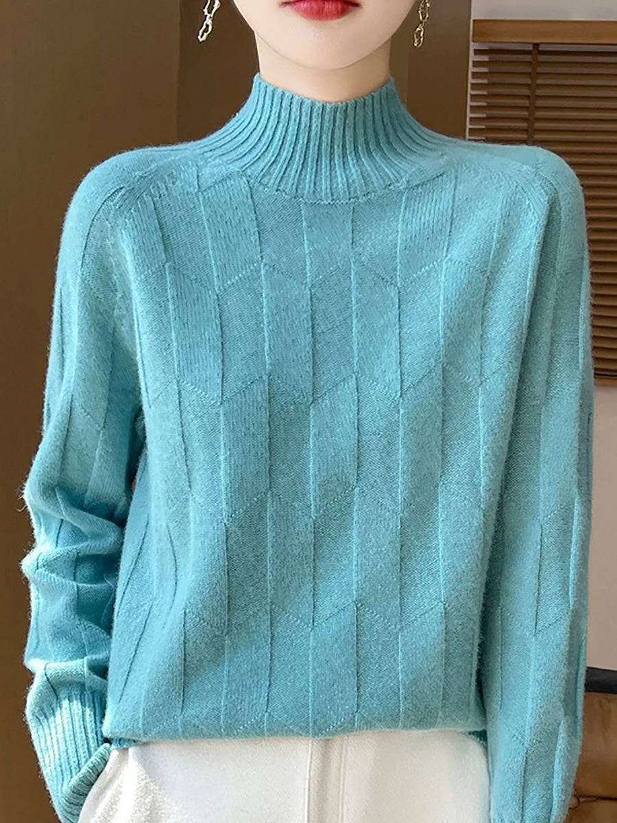 Ženski ležerni proljetni pulover s polu-rolkom u čistim bojama