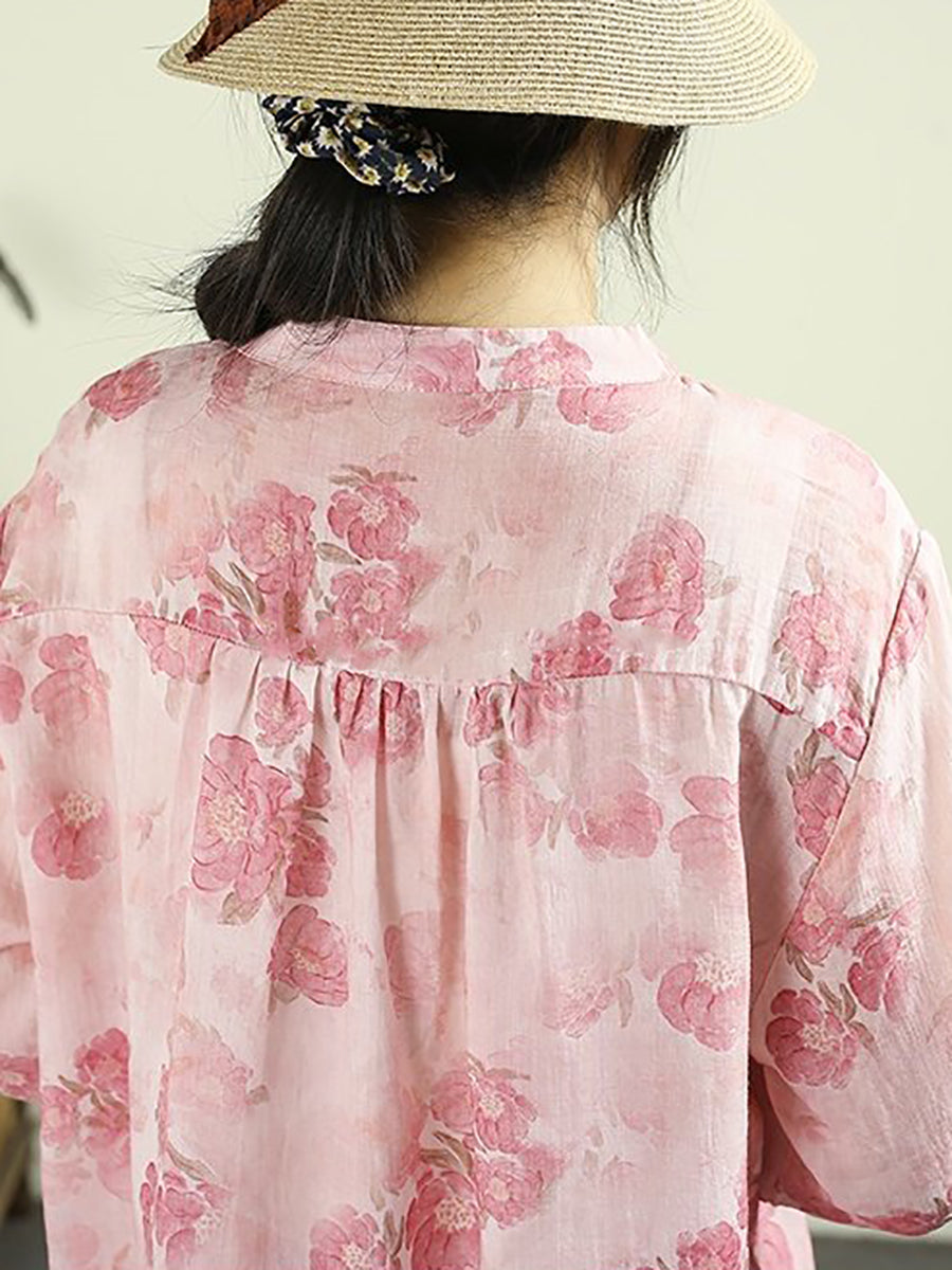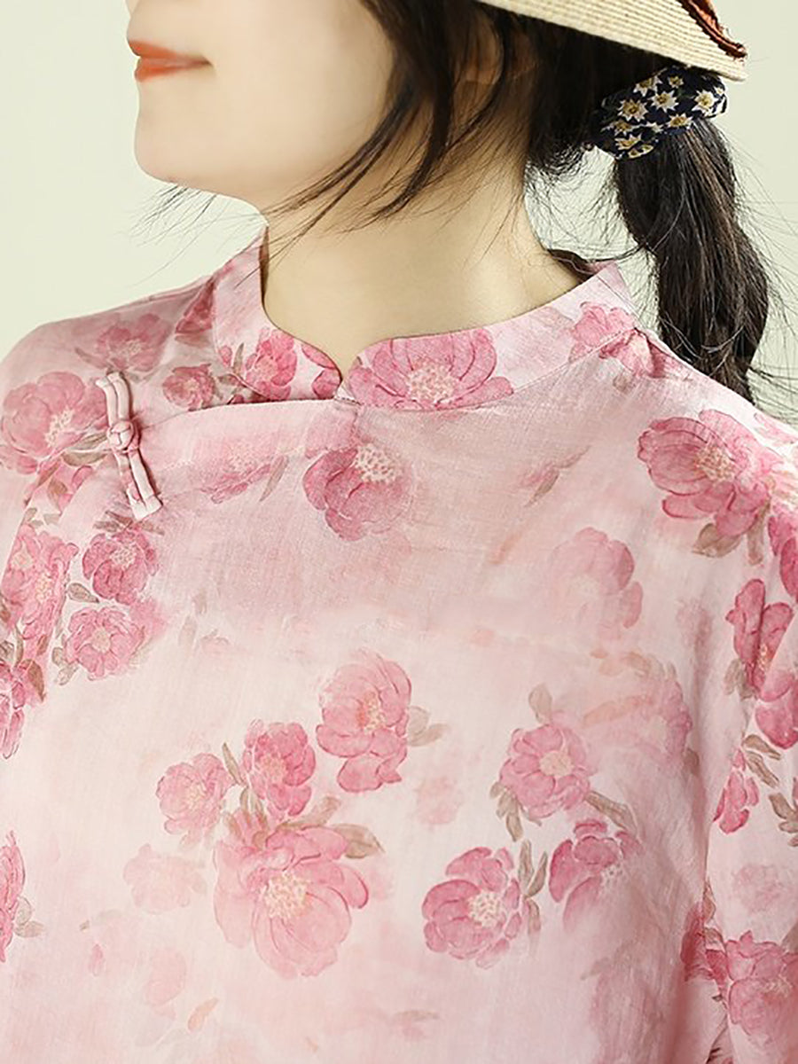 Ženska etnička bluza s proljetnim cvijećem i ovratnikom od 100% ramije