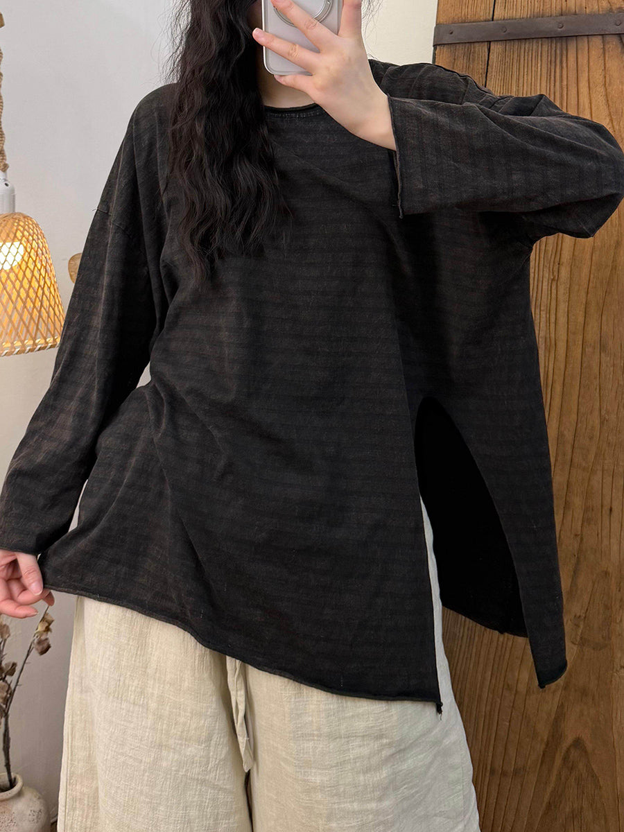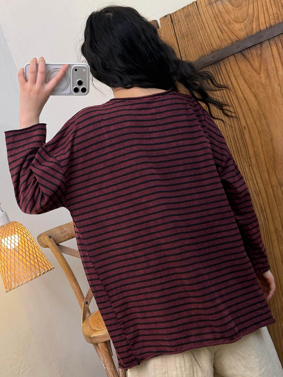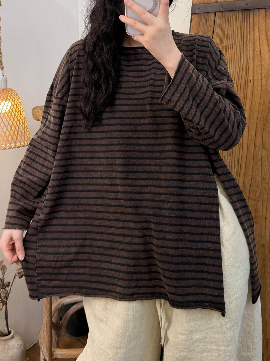 Ženska retro proljetna prugasta bluza s O-izrezom i bočnom podjelom