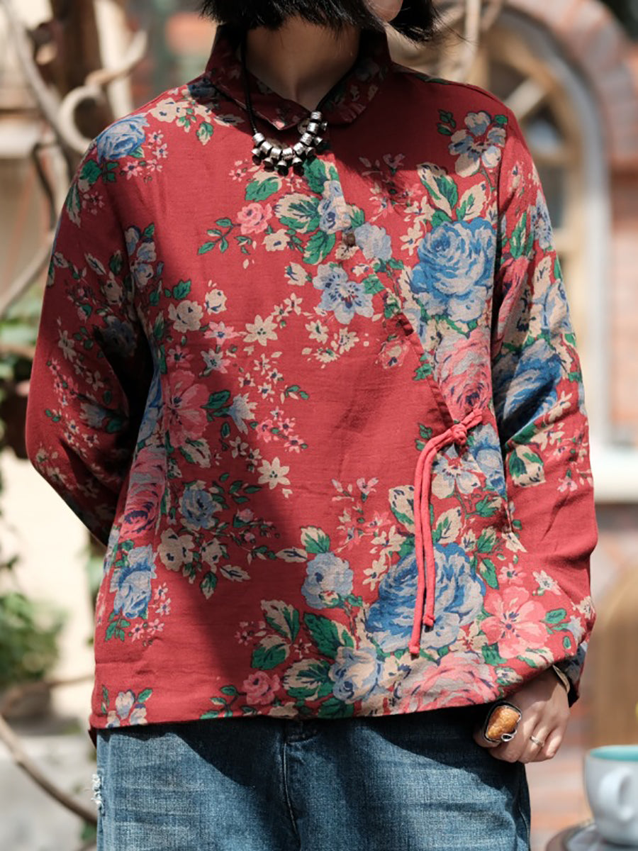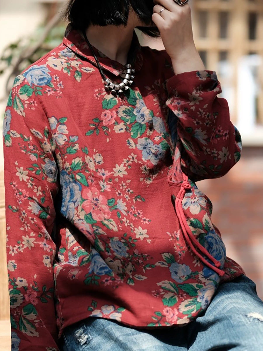 Ženska proljetna vintage cvjetna košulja s odloženim ovratnikom, 100% pamuk
