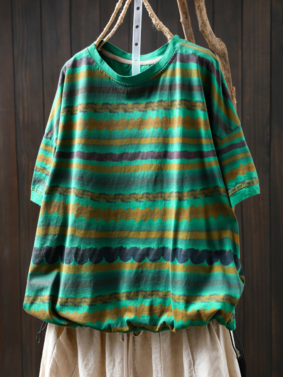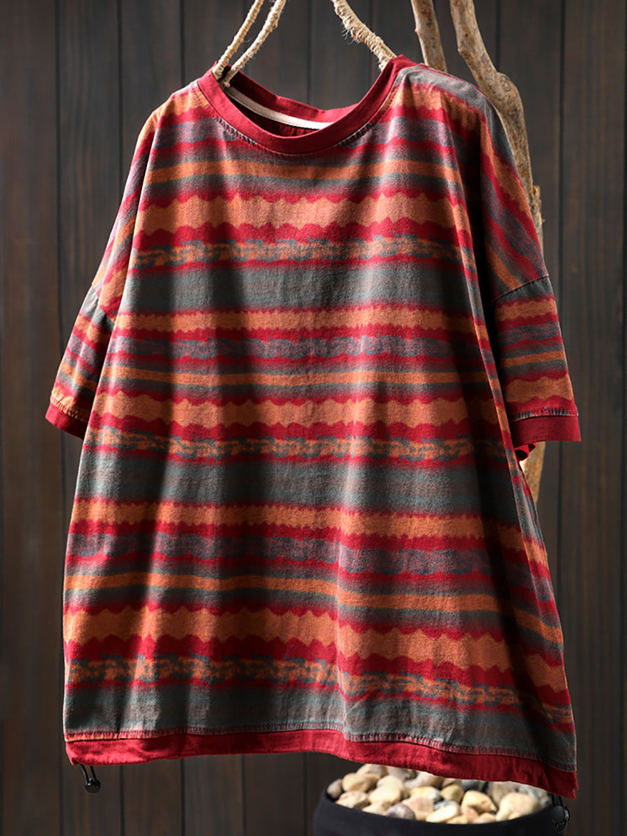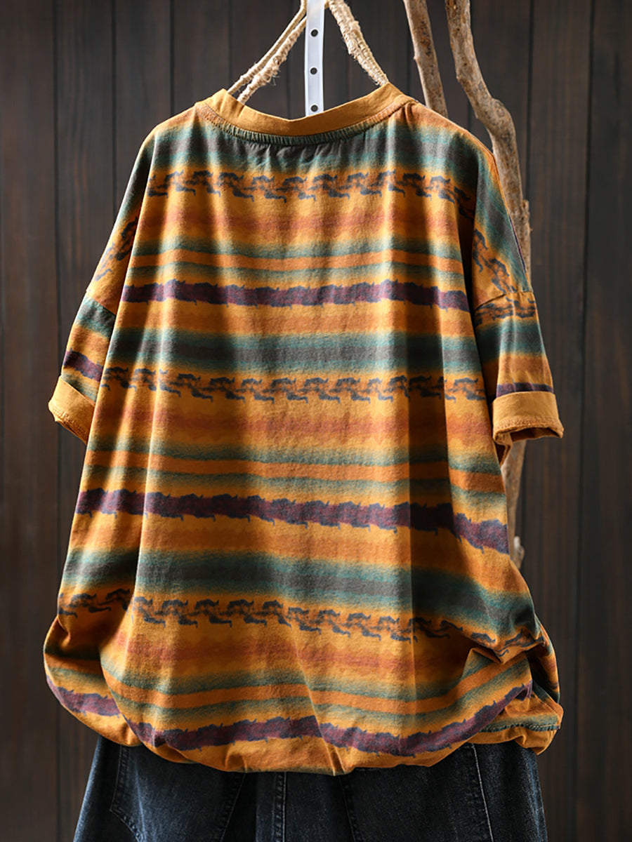Ženska ljetna vintage pamučna košulja s O-izrezom na pruge