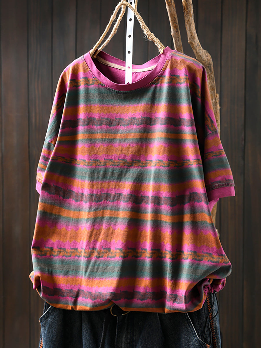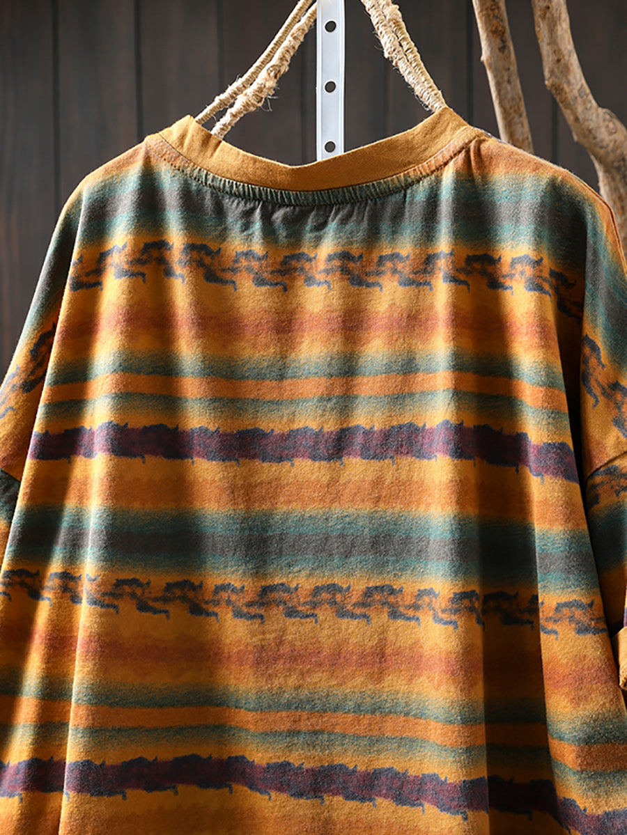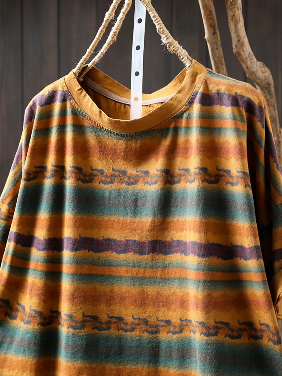 Ženska ljetna vintage pamučna košulja s O-izrezom na pruge