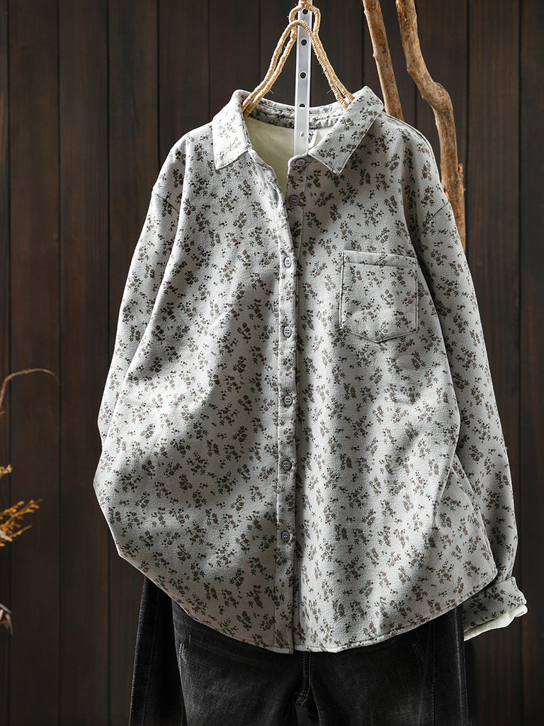 Ženska zimska majica s umjetničkim cvjetnim uzorkom i flis podstavom od 100% pamuka