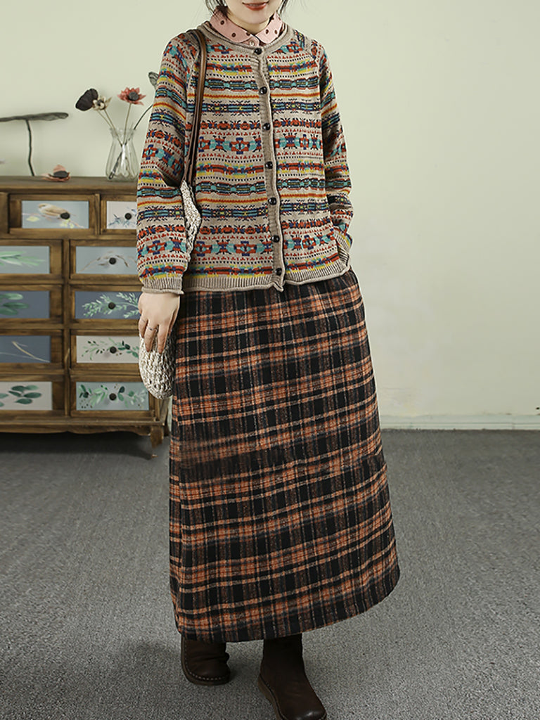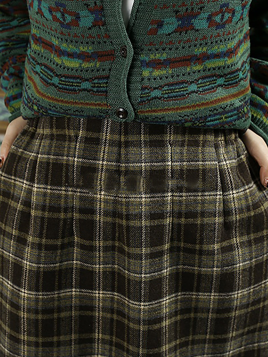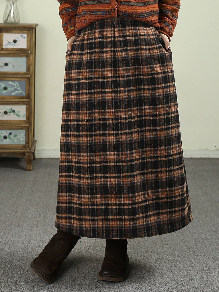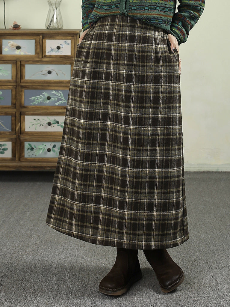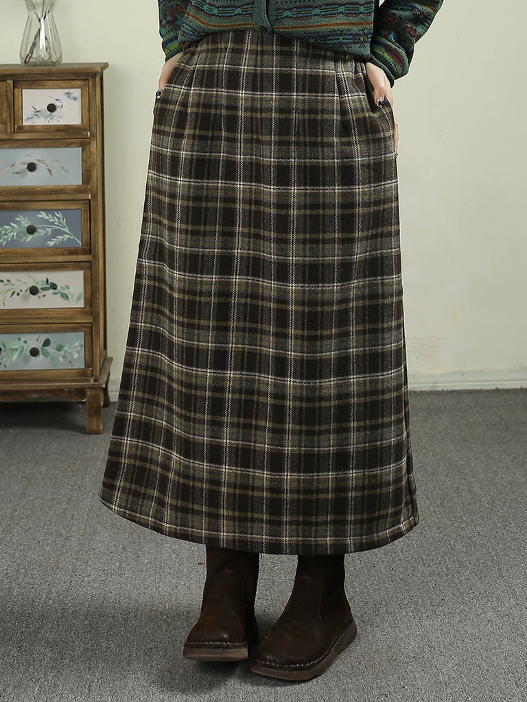 Ženska zimska karirana suknja A-kroja s flis podstavom