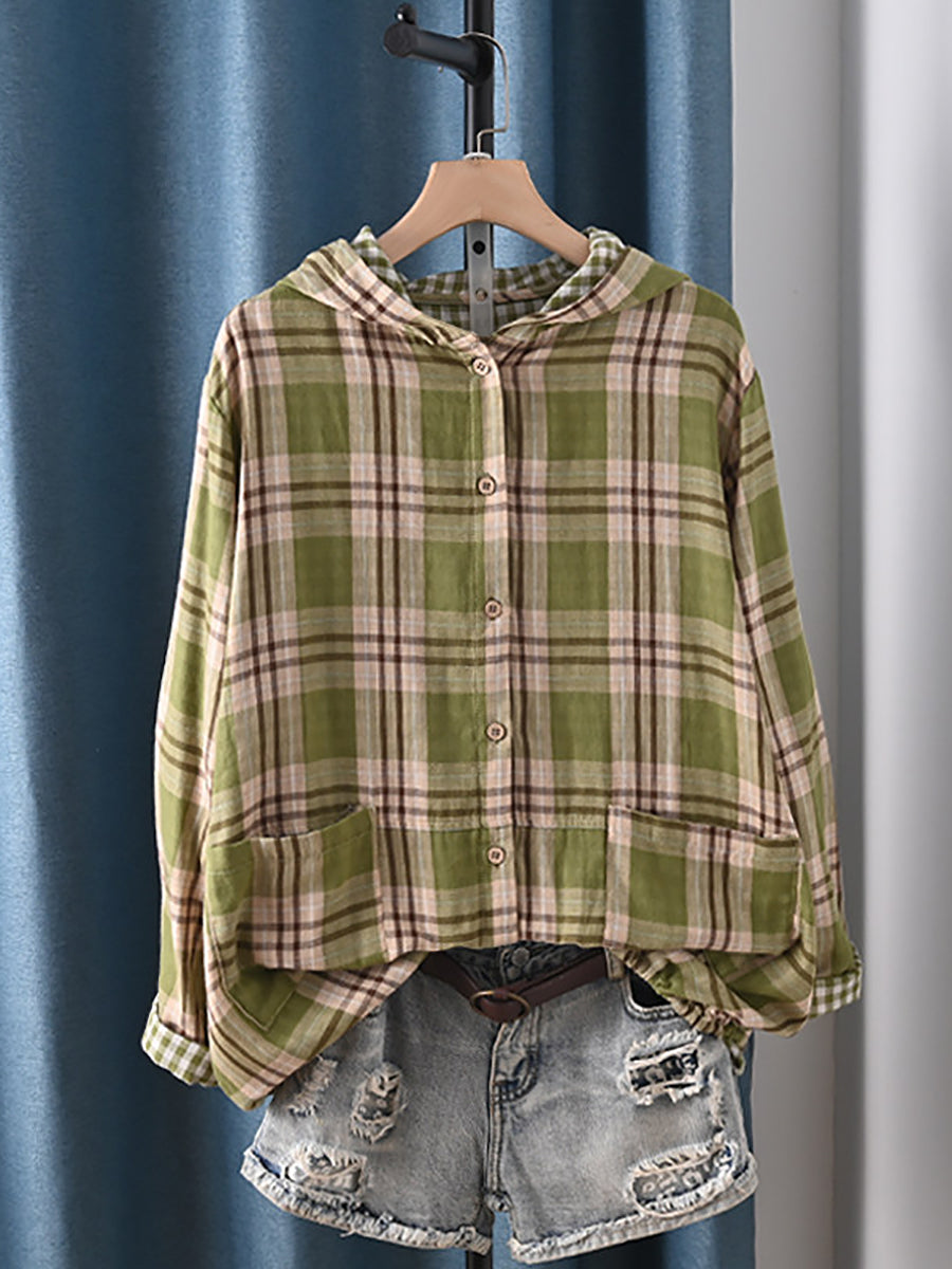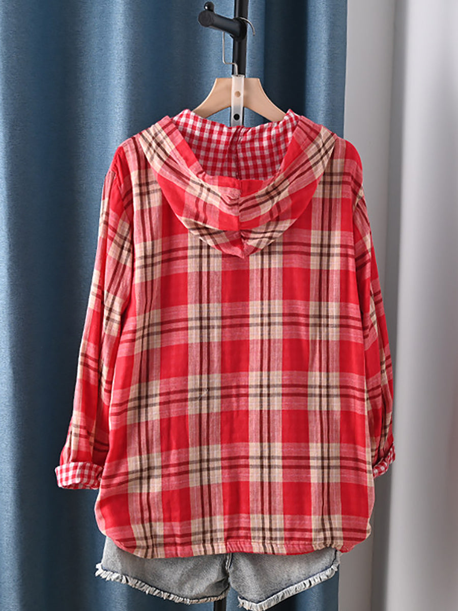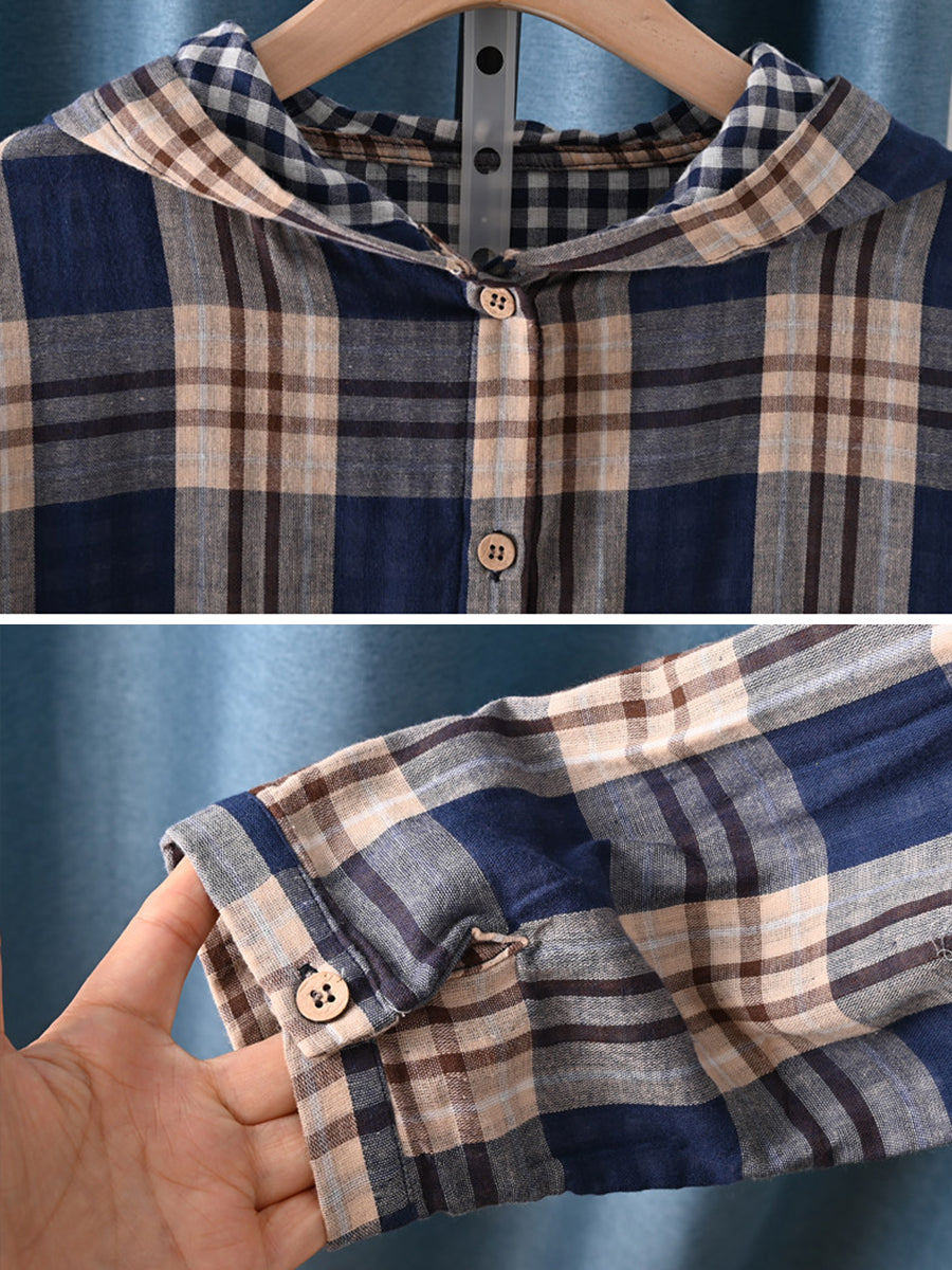 Női lezser tavaszi kockás 100% pamut kapucnis ing