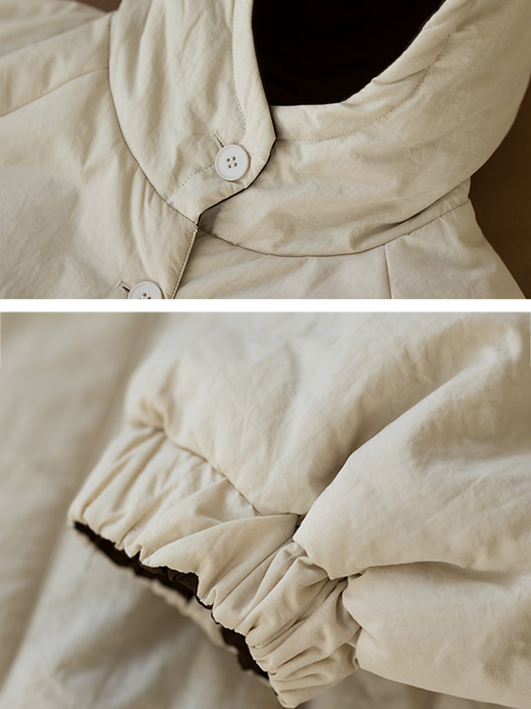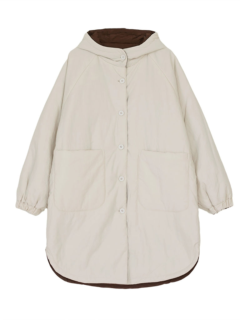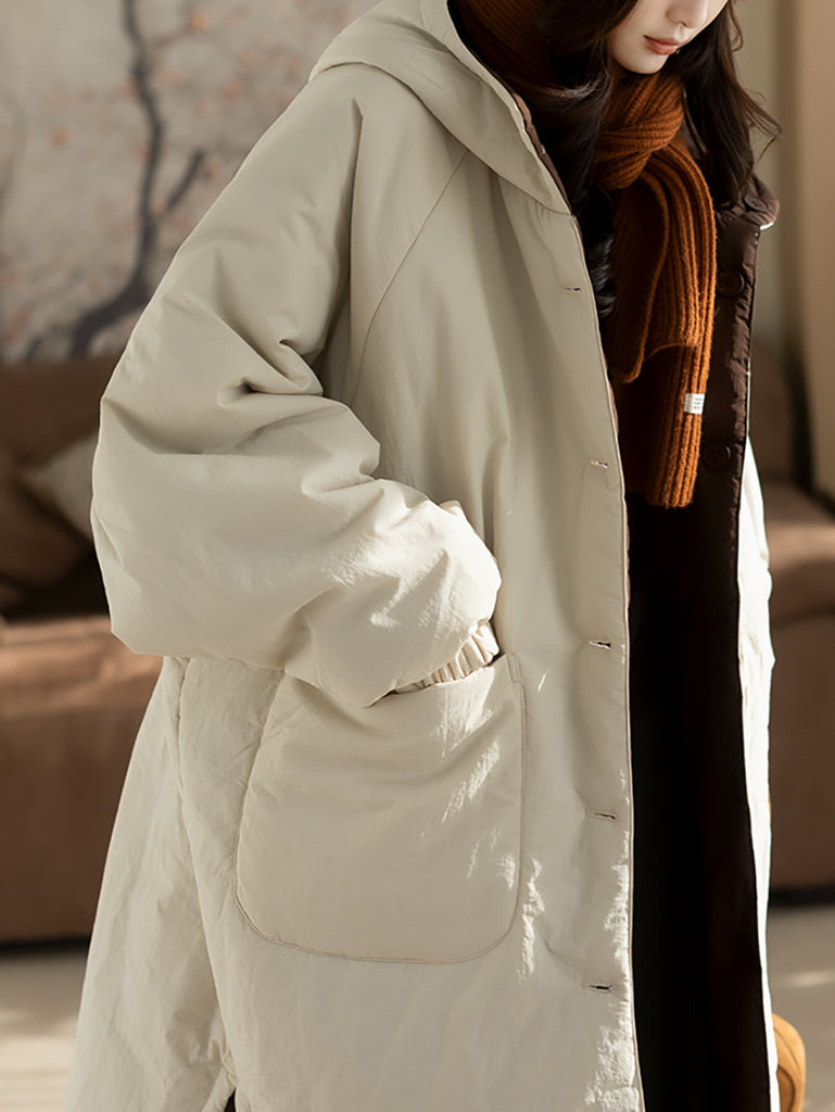 Női téli retro tiszta színű kapucnis bélelt kabát