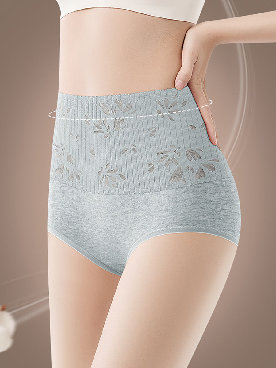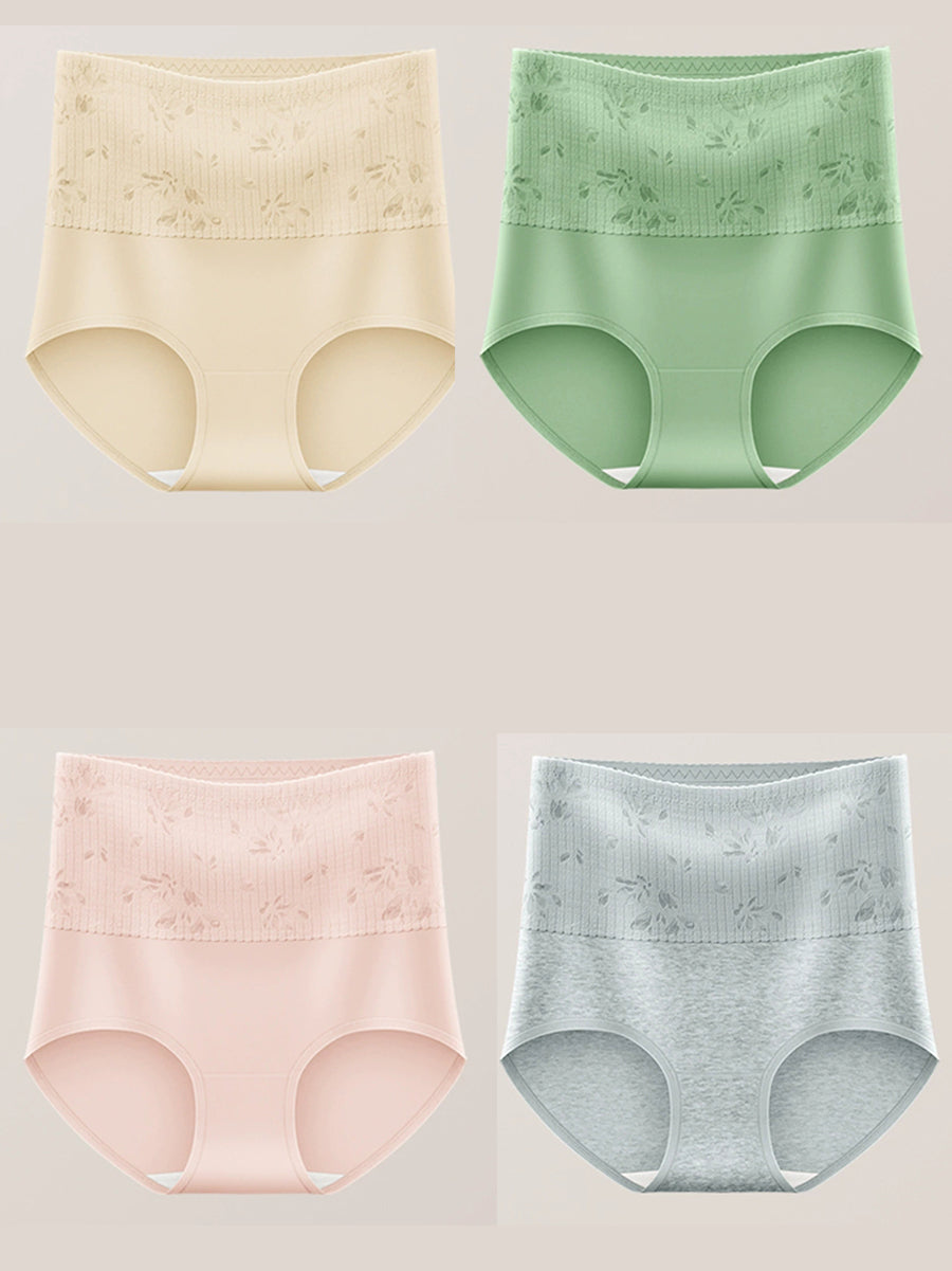 4 darabos női művészi virágmintás, magas derekú alsónemű