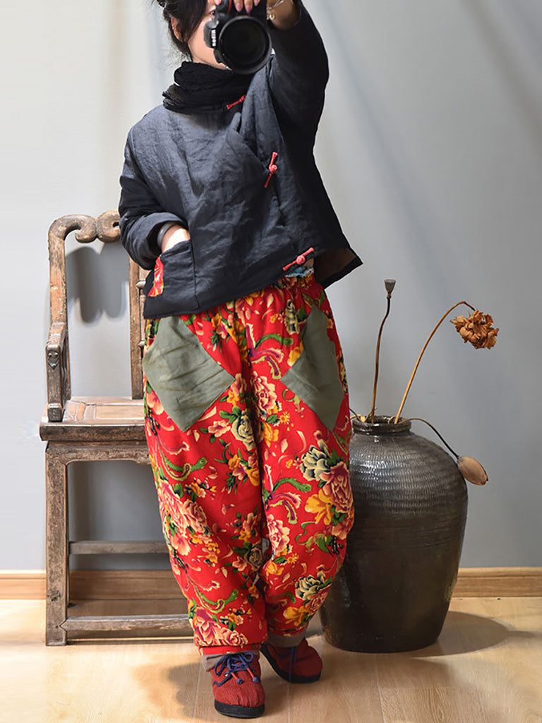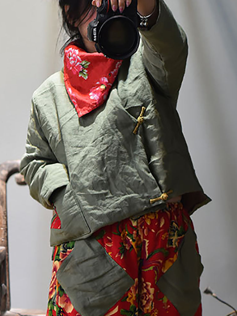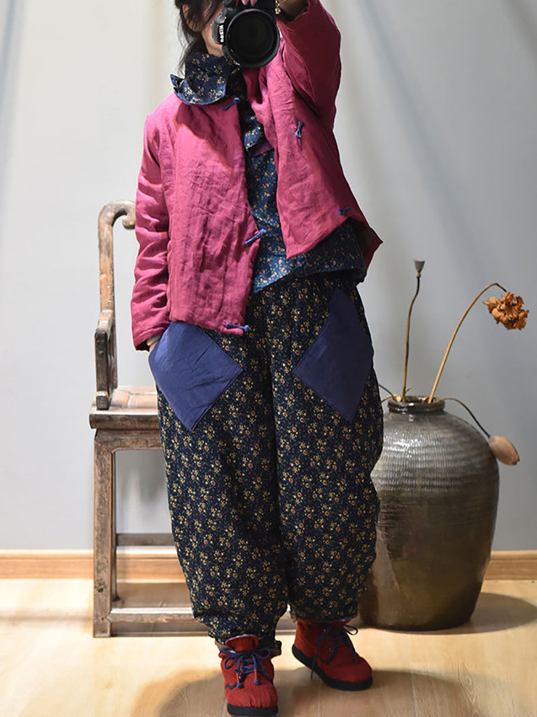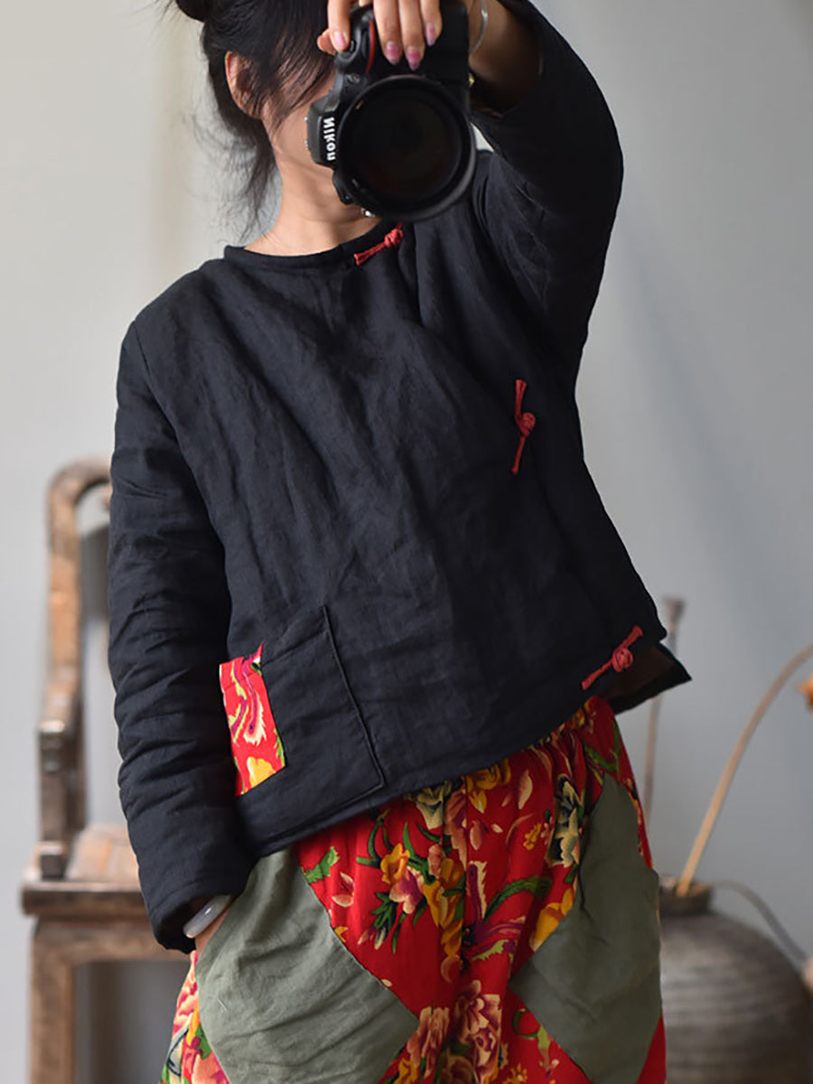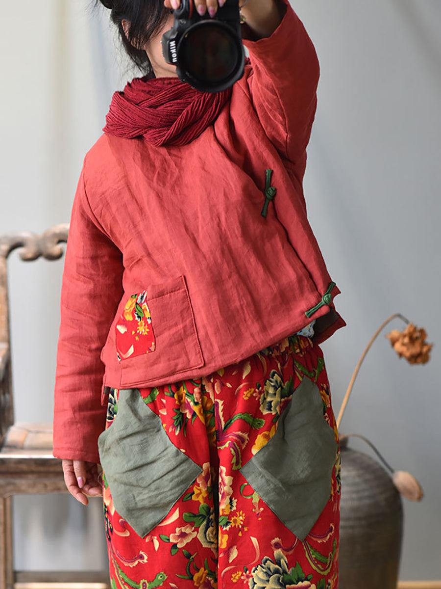 Női téli vintage tömör, ráncos zsebpárnázott kabát