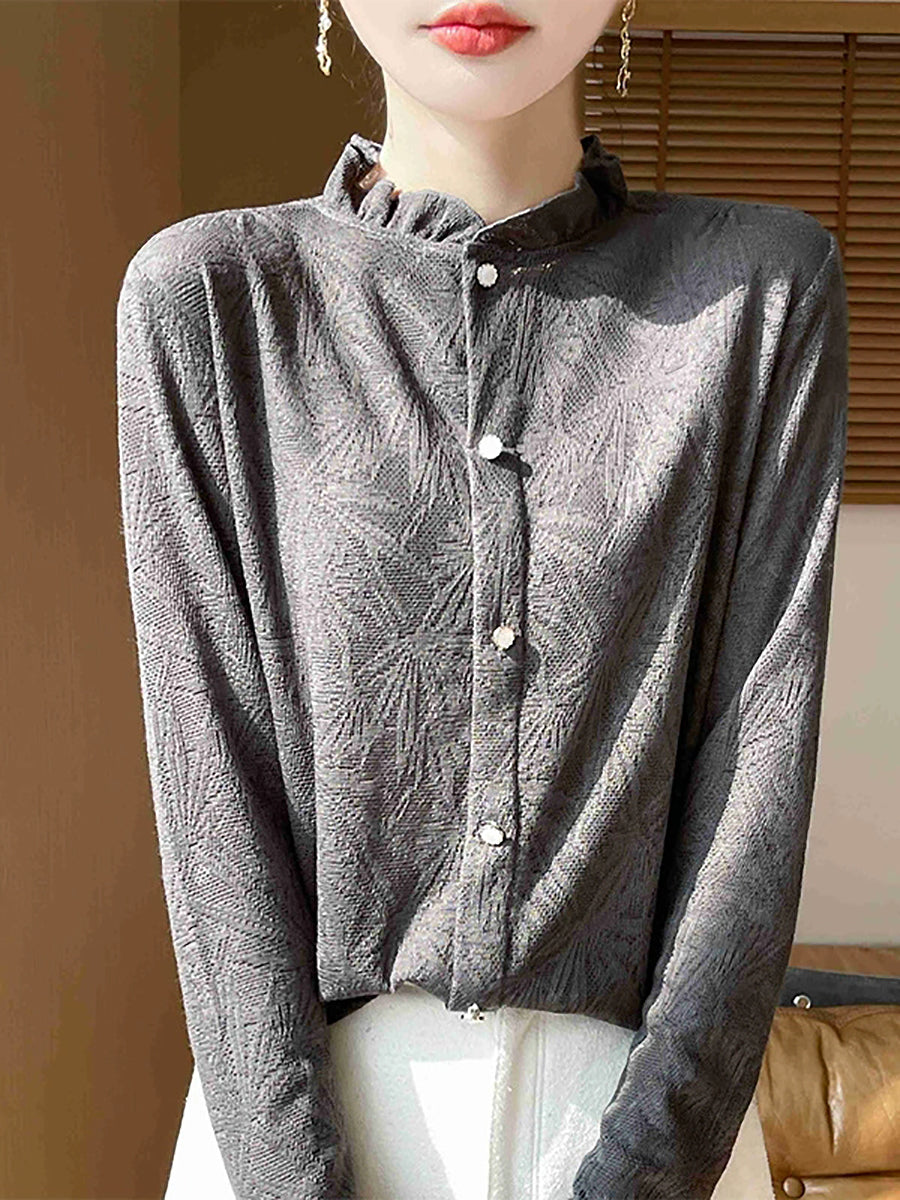 Női művészi tavaszi Jackqard állványos galléros pulóver