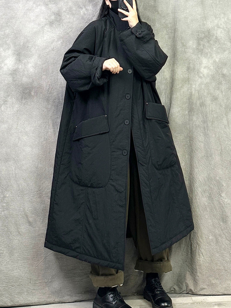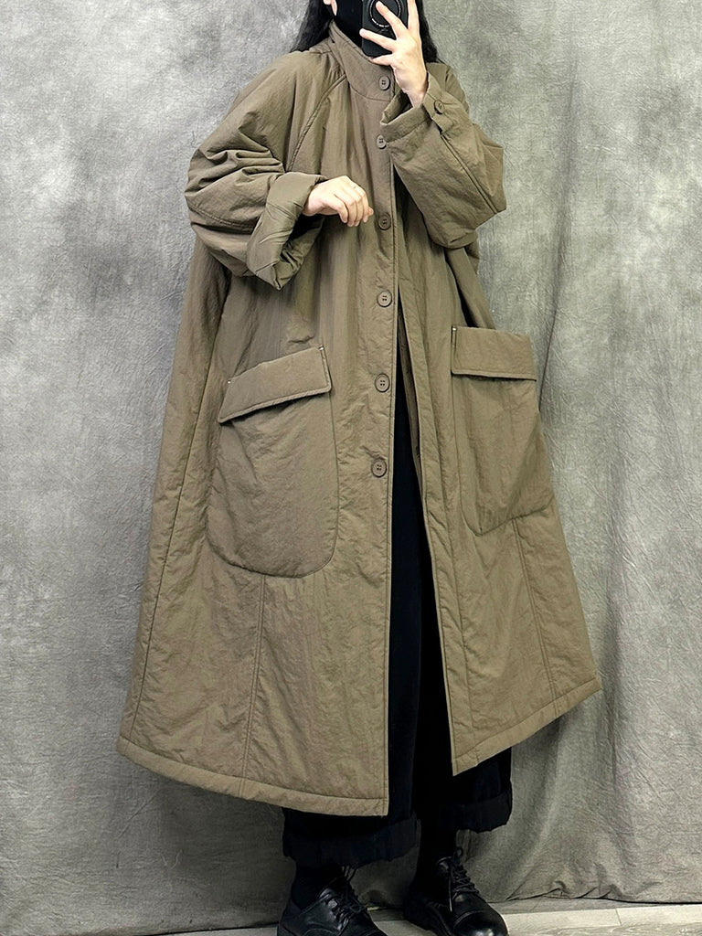 Női őszi alkalmi tiszta színű, állógalléros hosszú kabát