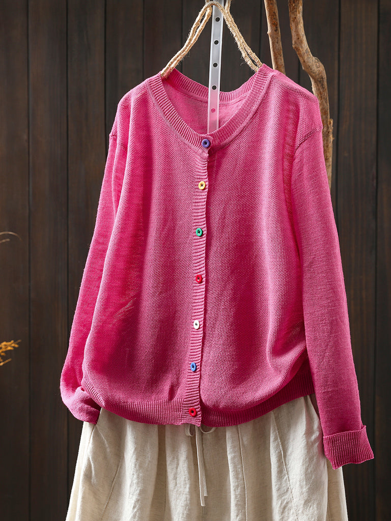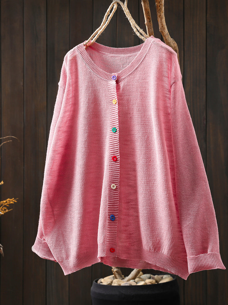 Női nyári alkalmi színes gombos kötött O-nyakú ing