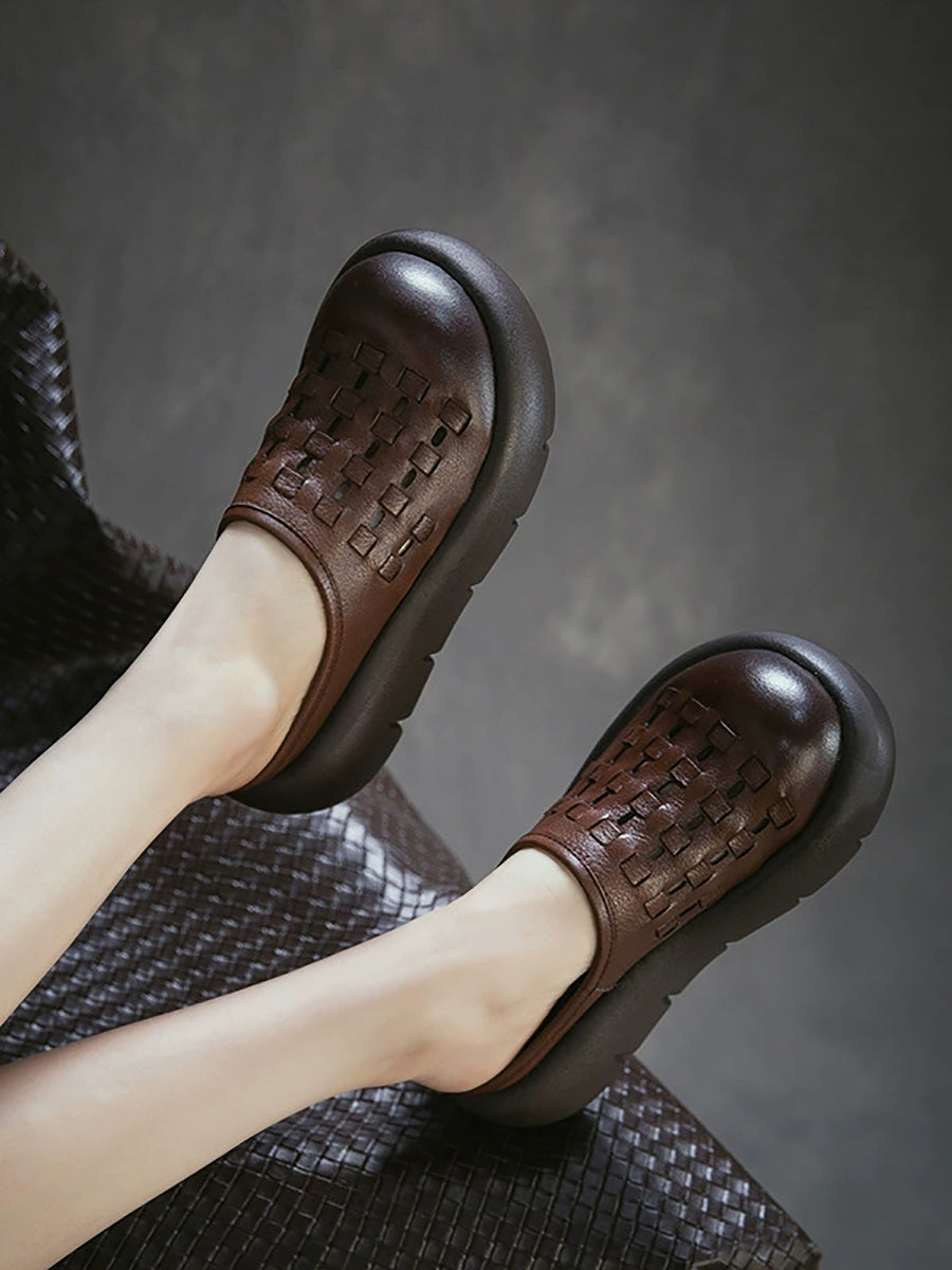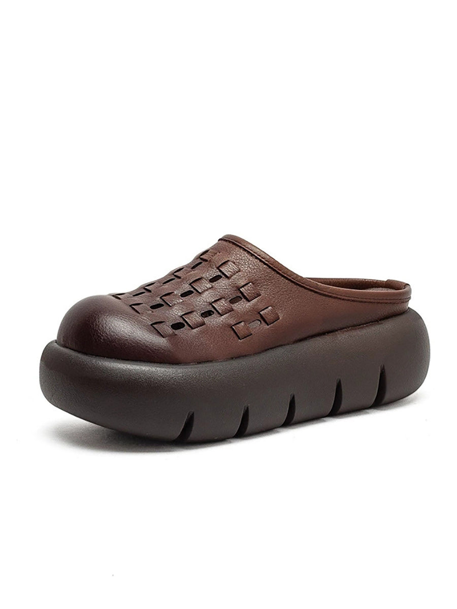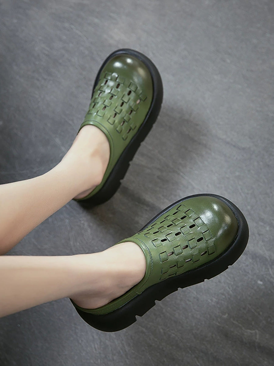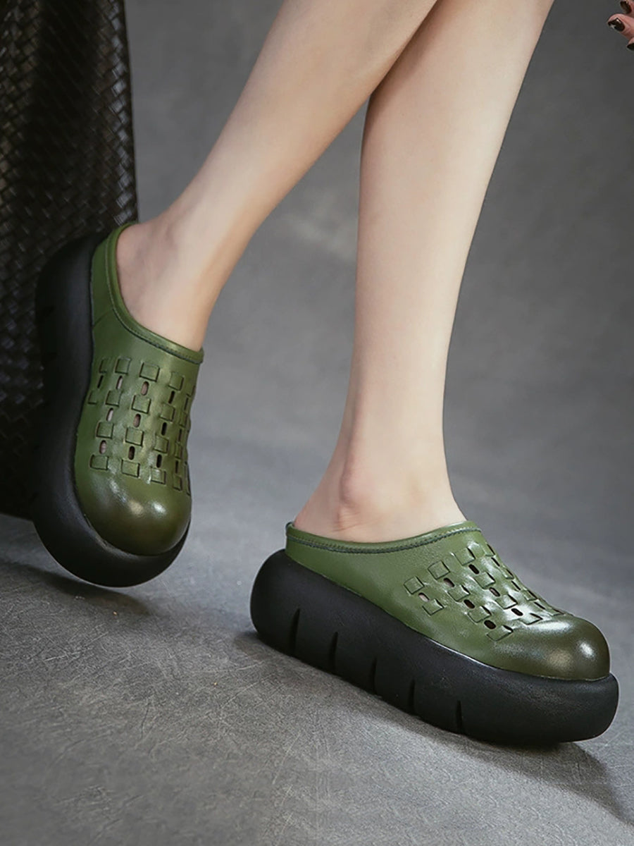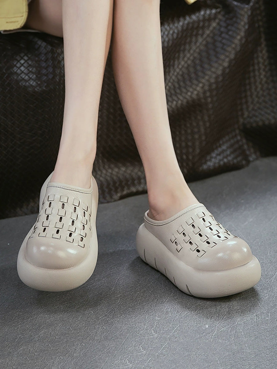 Női nyári valódi bőr szövésű platform papucs