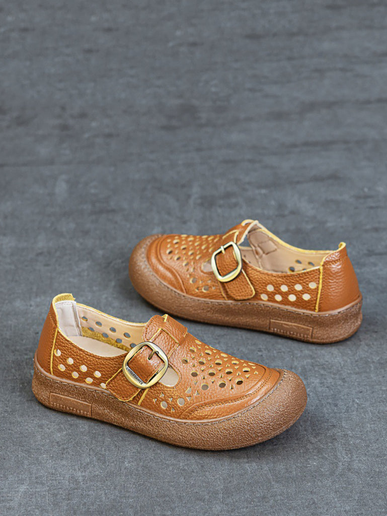 Női nyári tiszta színű valódi bőr lapos cipő