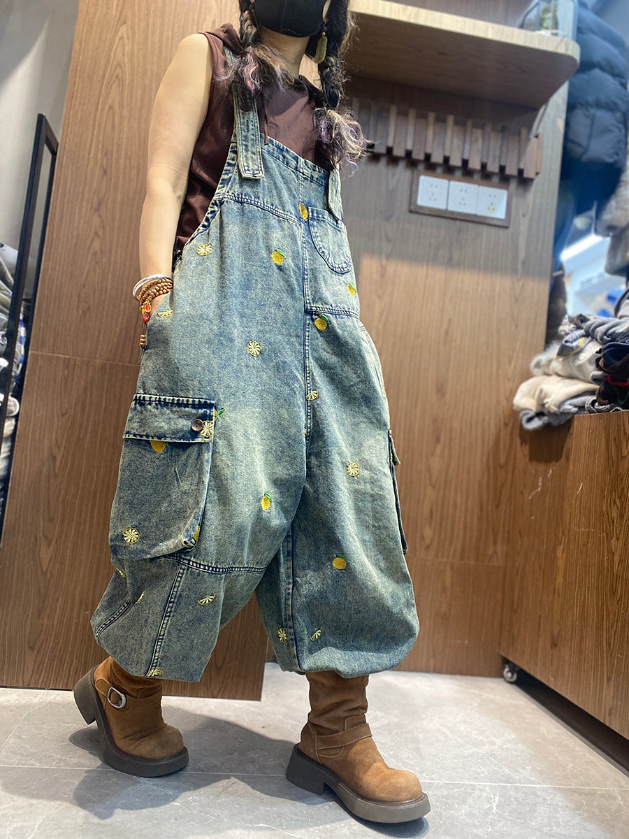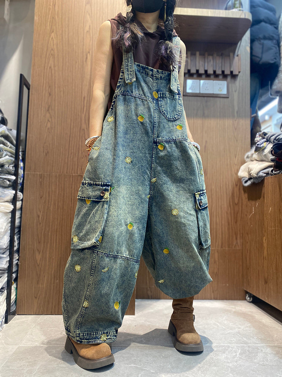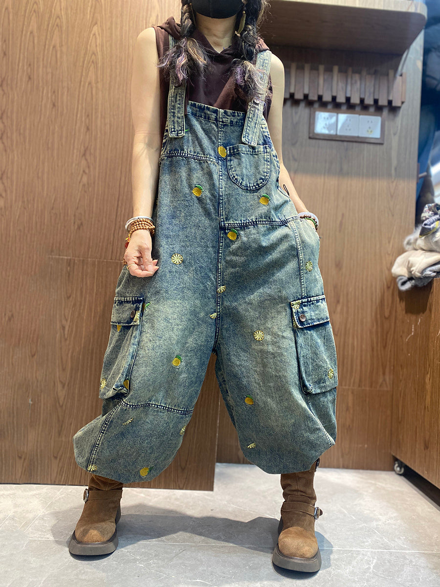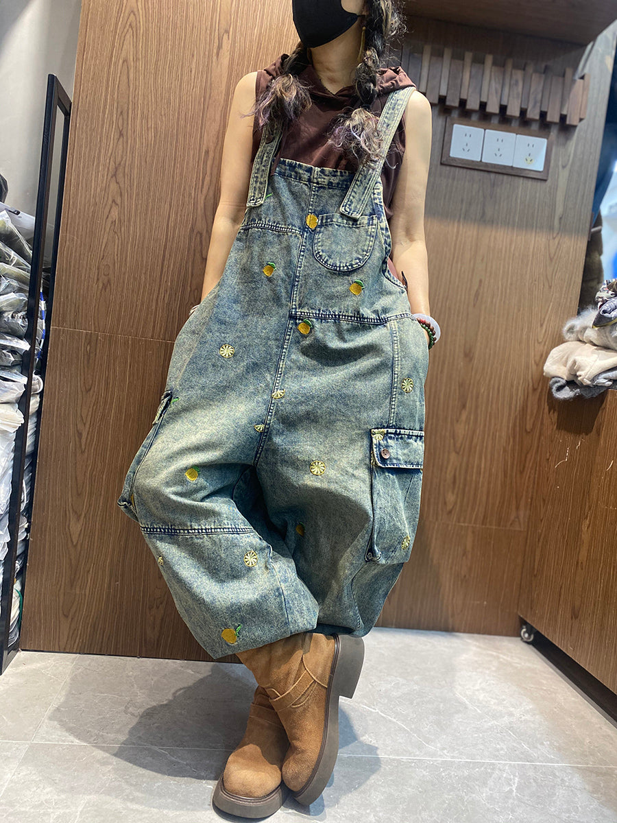 Női Vintage Hímzés Laza Farmer Jumpsuits