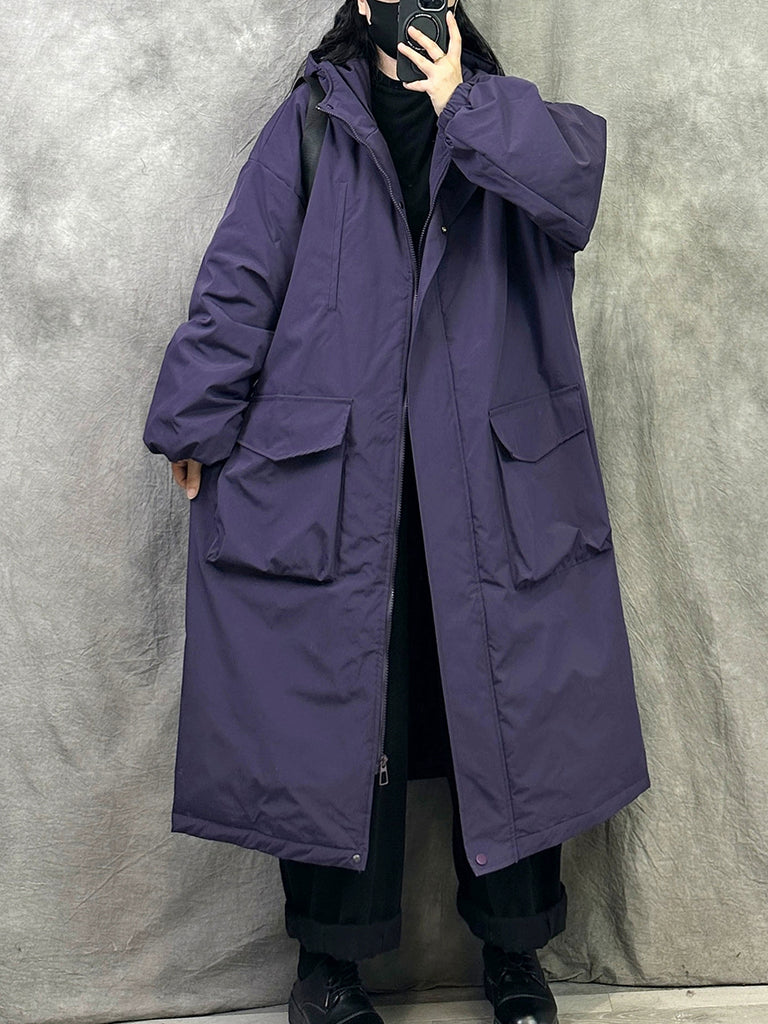 Női téli alkalmi, tiszta színű, kapucnis, bélelt kabát