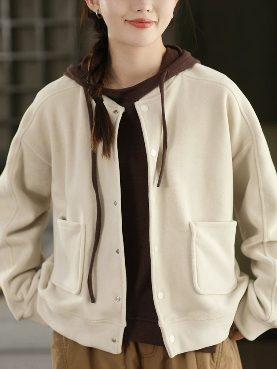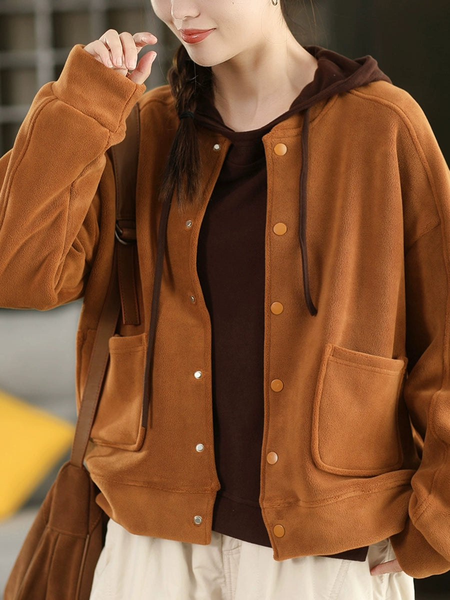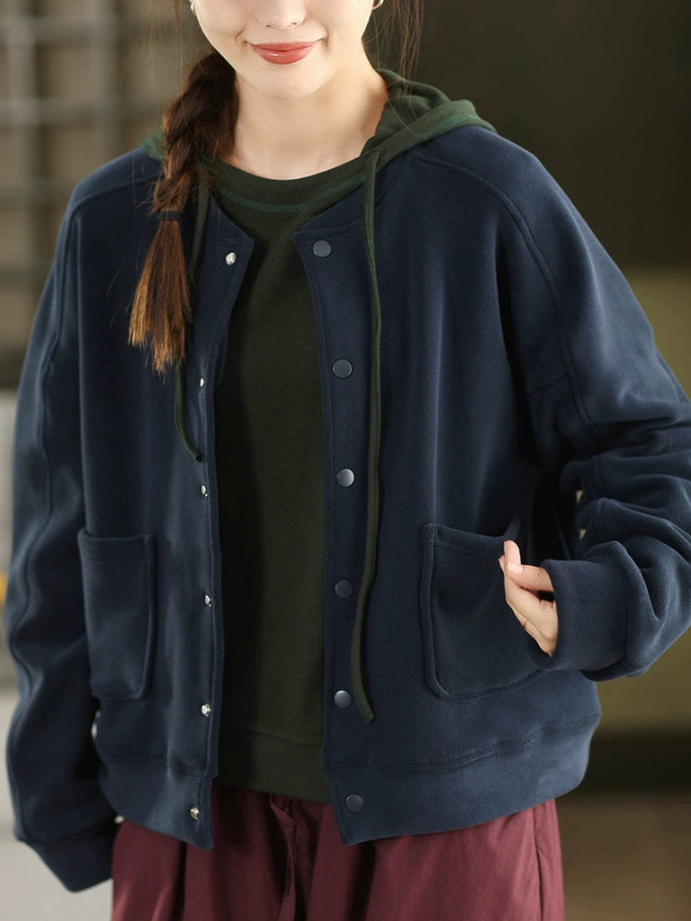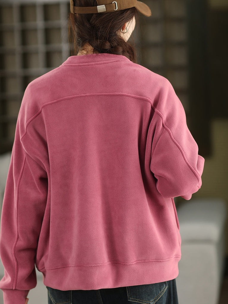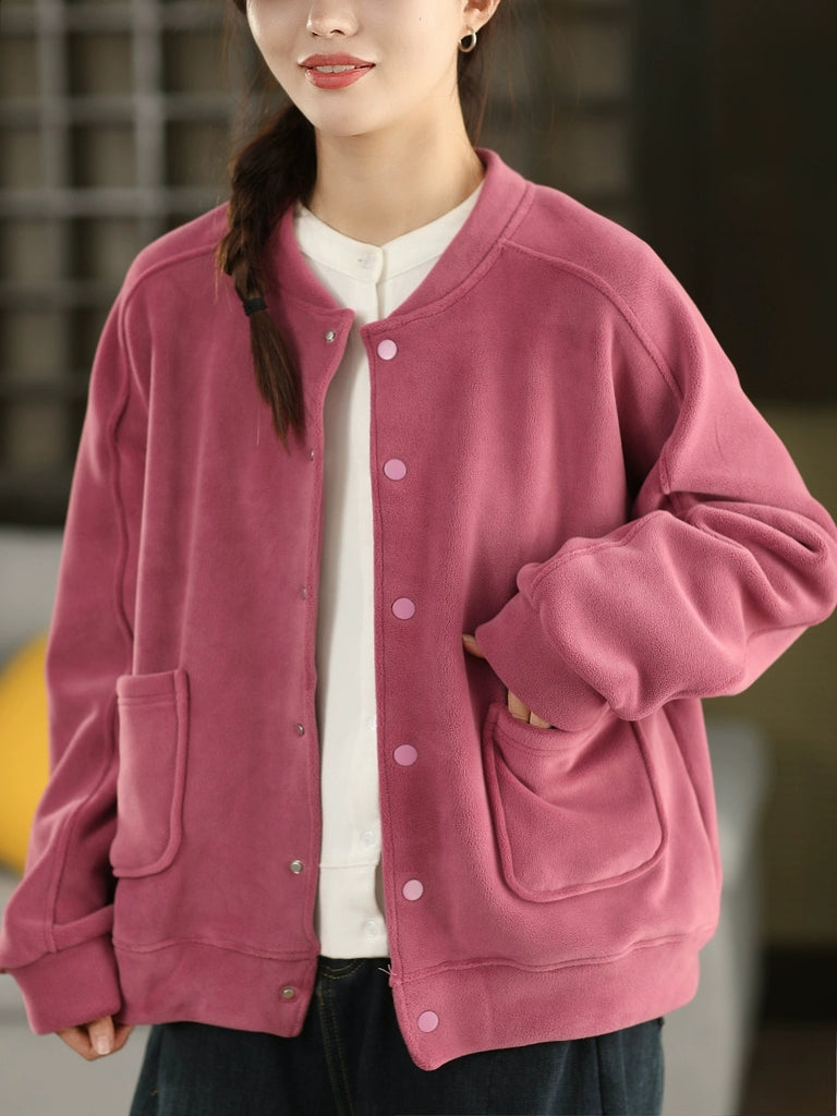 Női téli alkalmi tiszta színű O-nyakú polárkabát