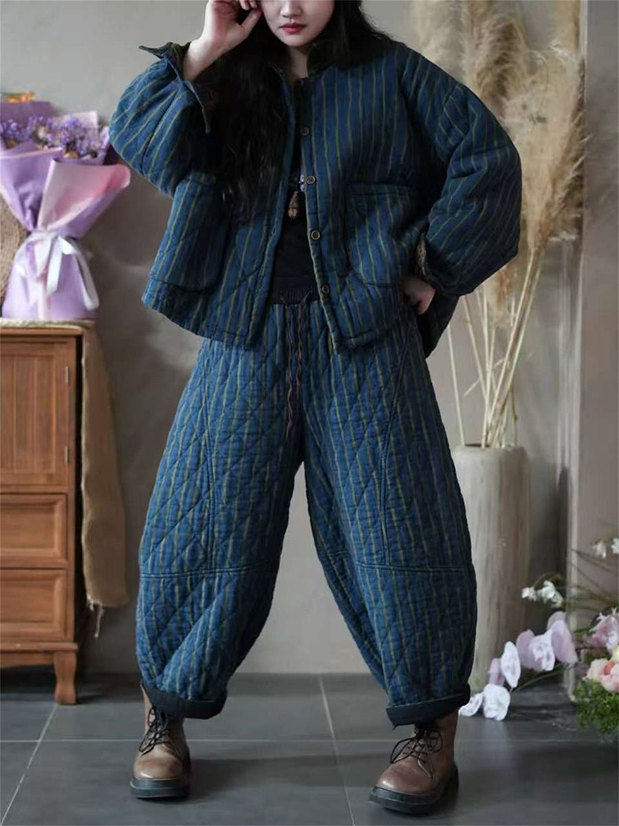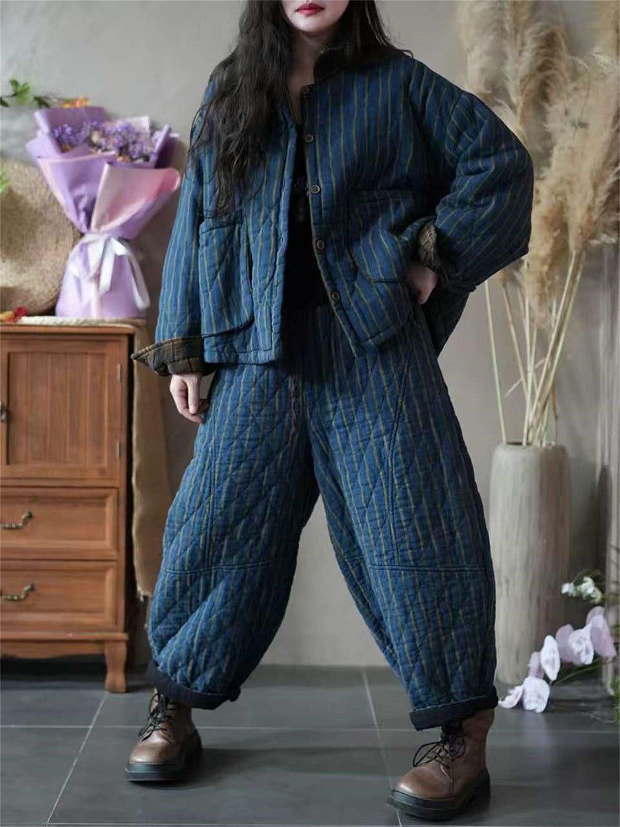 Női téli vintage csíkos bélelt öltönyök