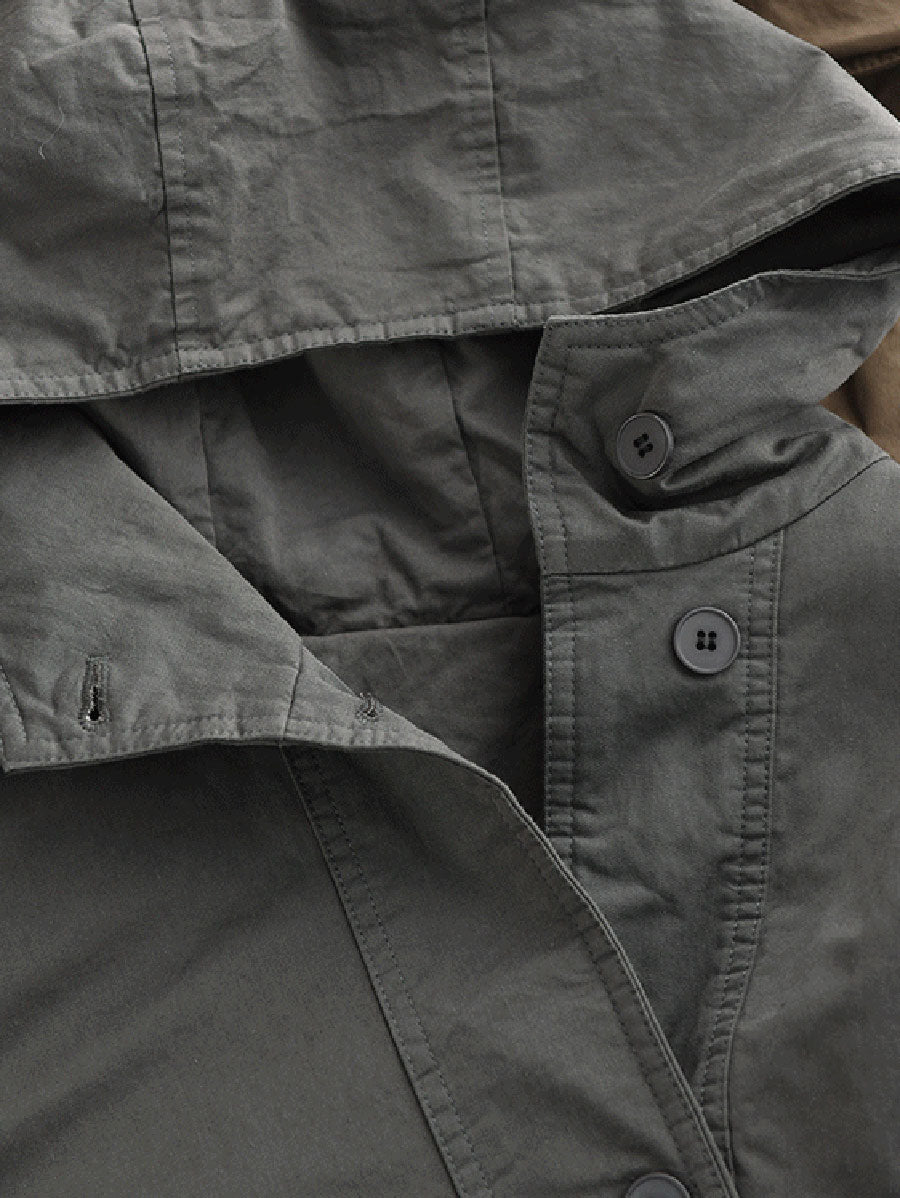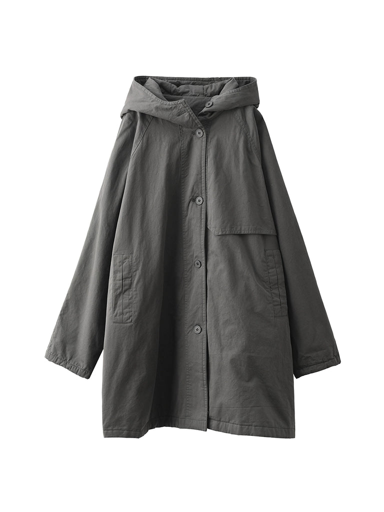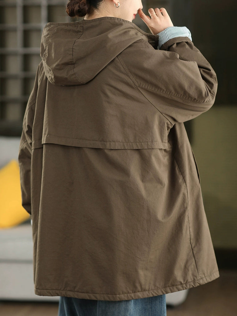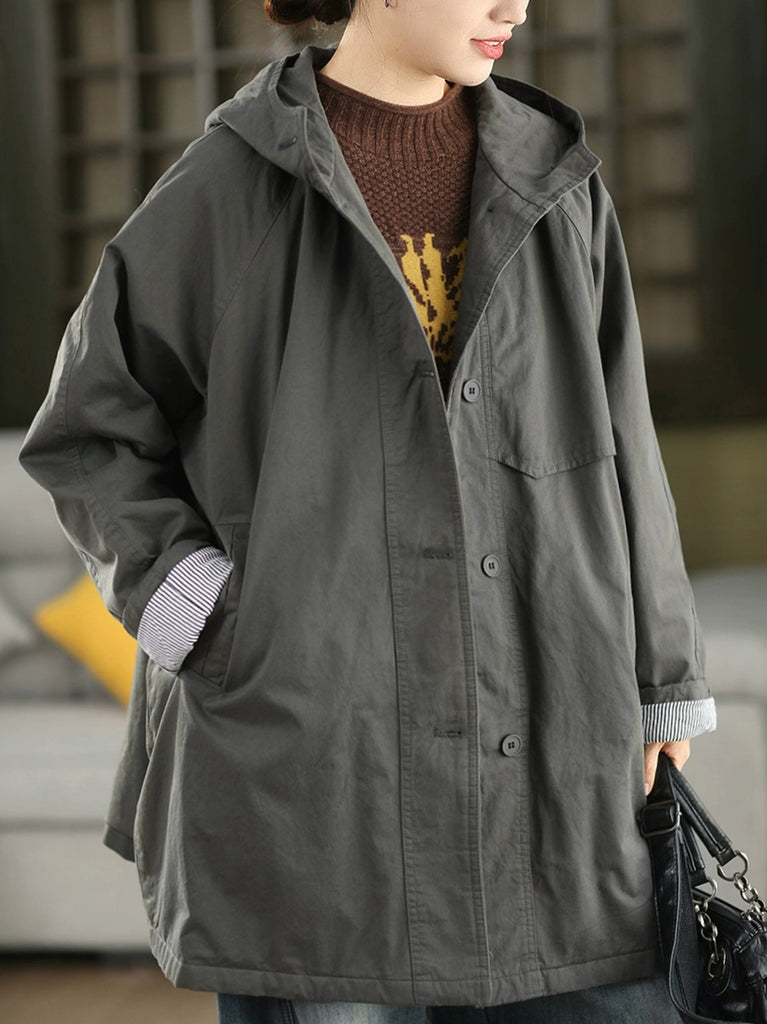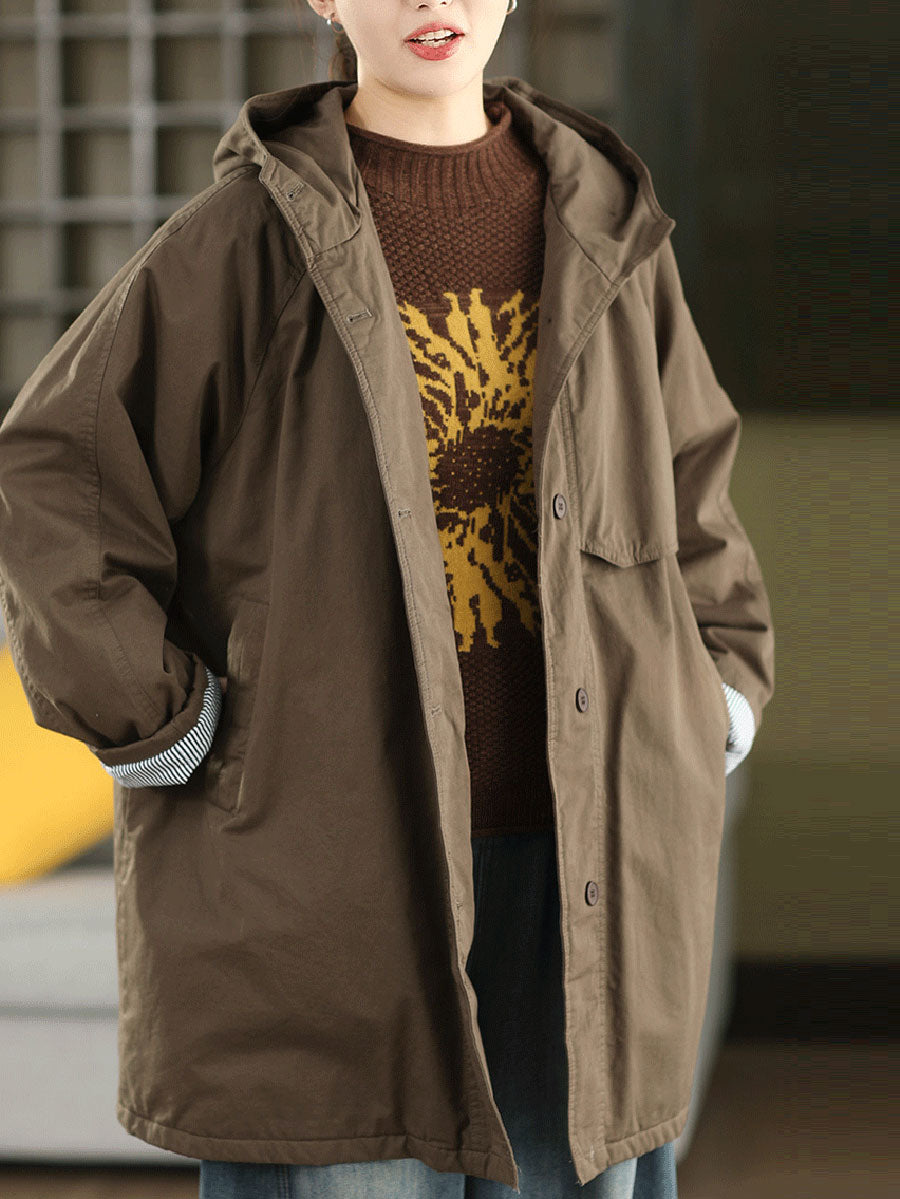Vetrarfrakki með hettu, 100% bómull, úr hreinum lit fyrir konur