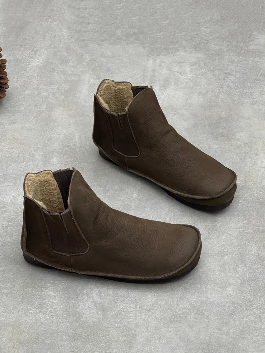 Vetrarstígvél úr ekta leðri úr flísfóðri fyrir konur