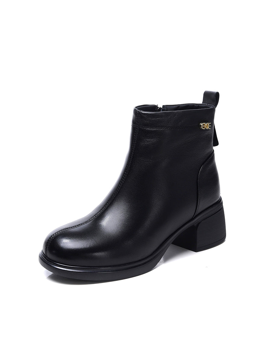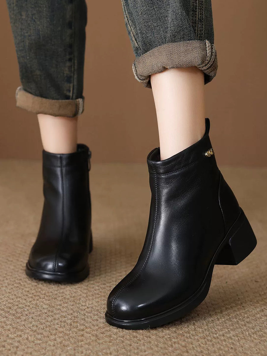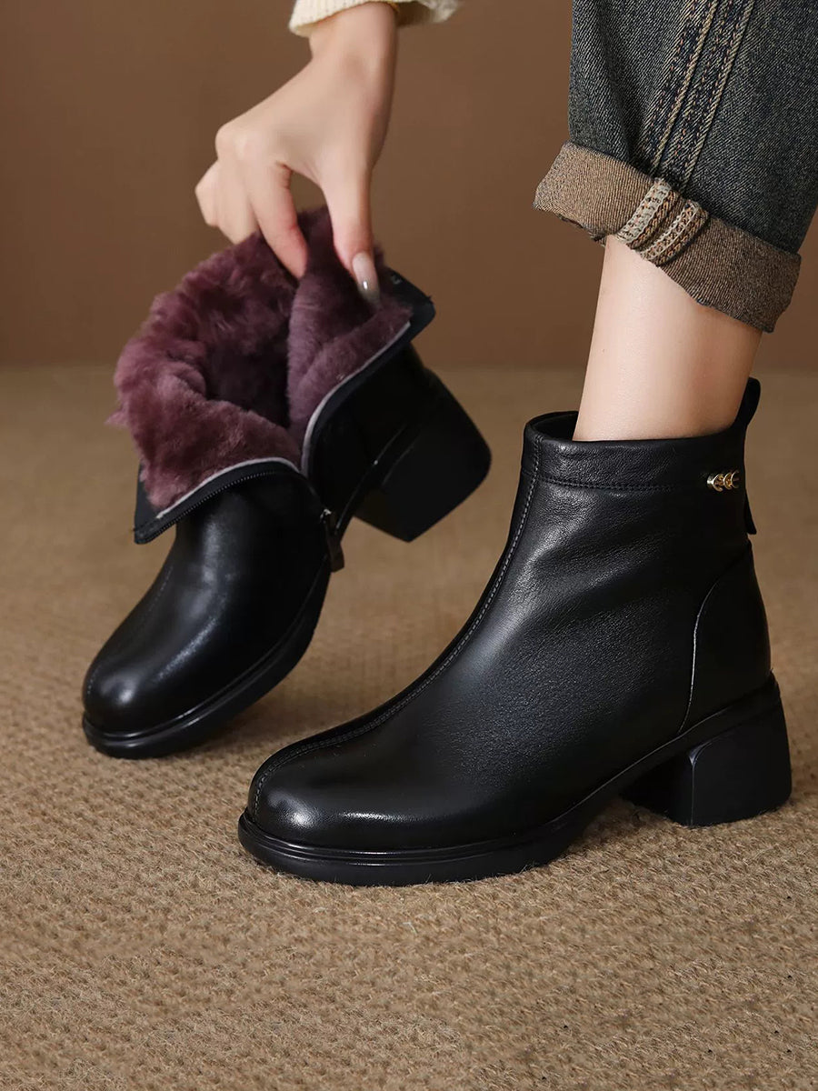 Vetrarstígvél úr ekta leðri með flísfóðri fyrir konur, miðlungs hælum