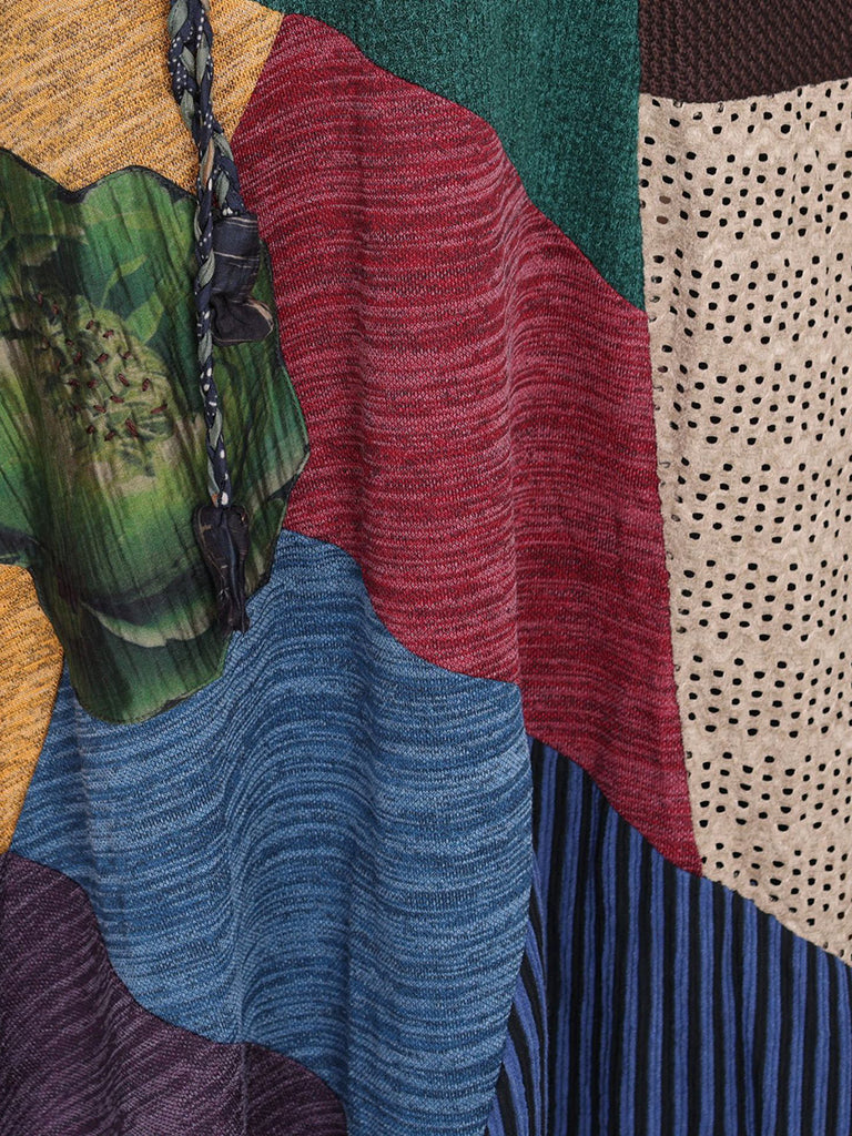 Konur Haust Maple Leaf Óreglulegur Hem O-háls laus kjóll