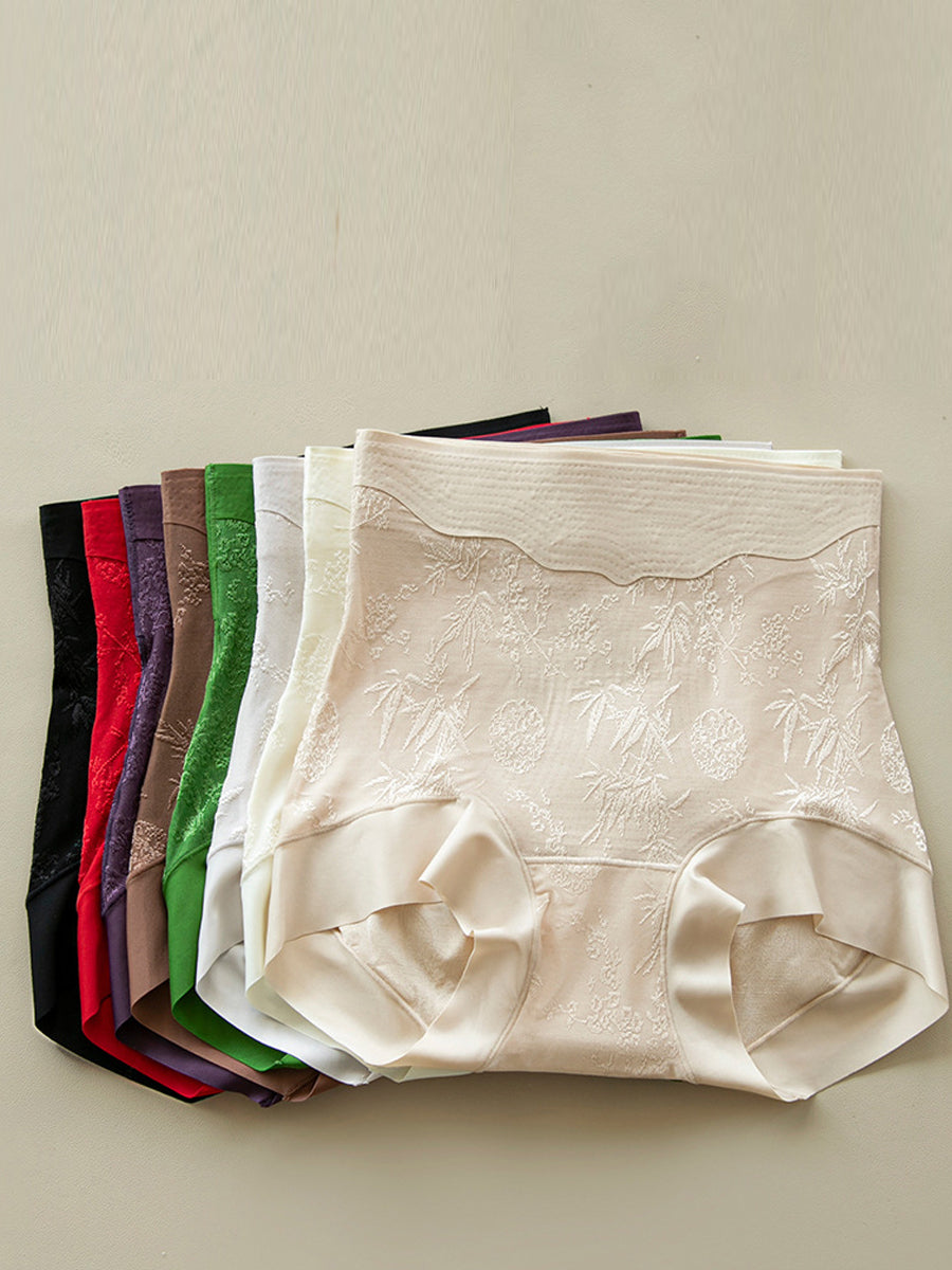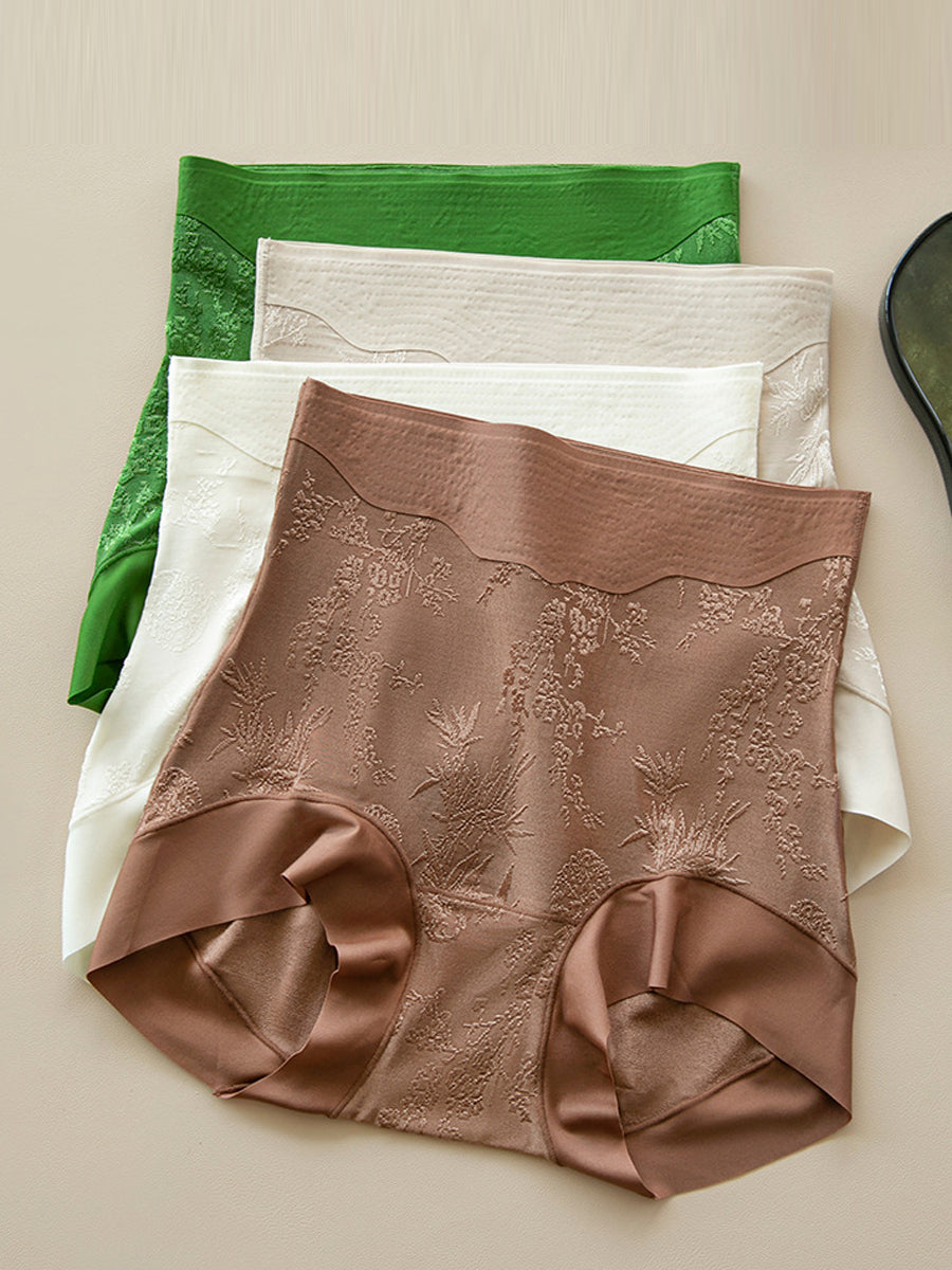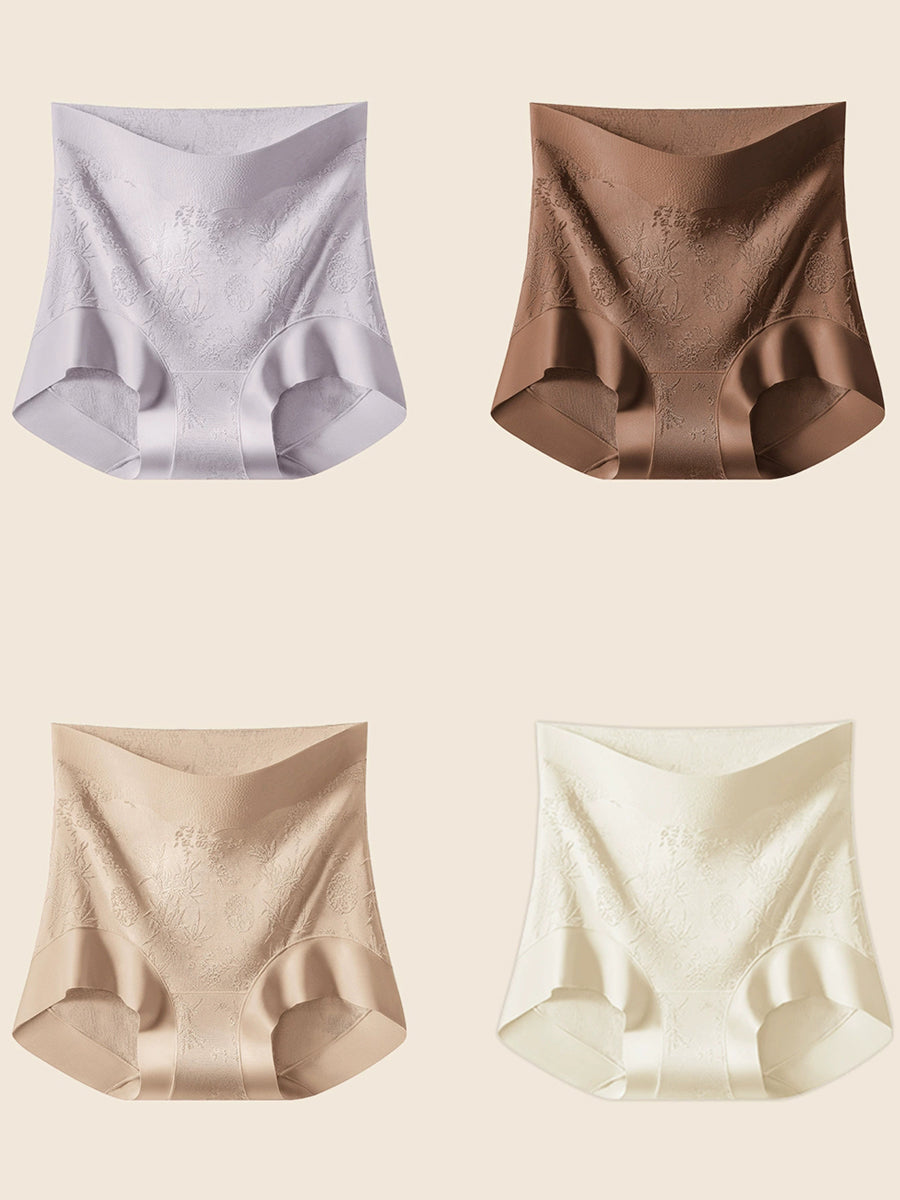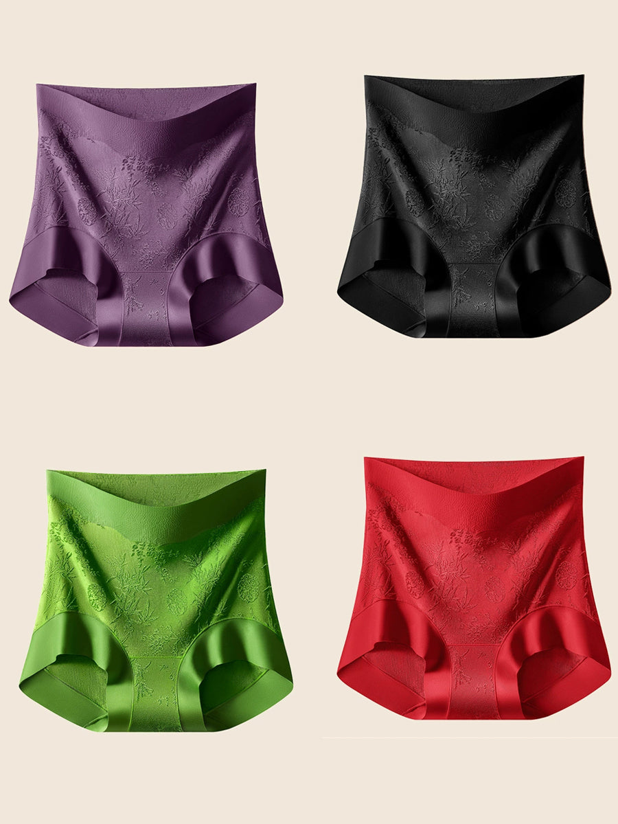 4 stykki kvenna Jacquard nærbuxur með háu mitti