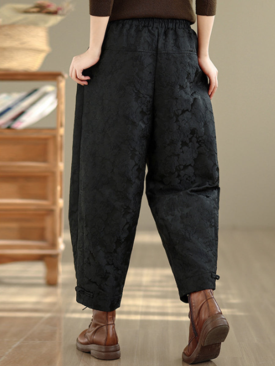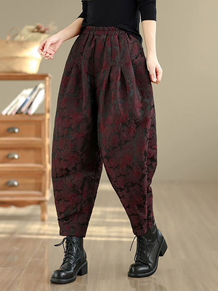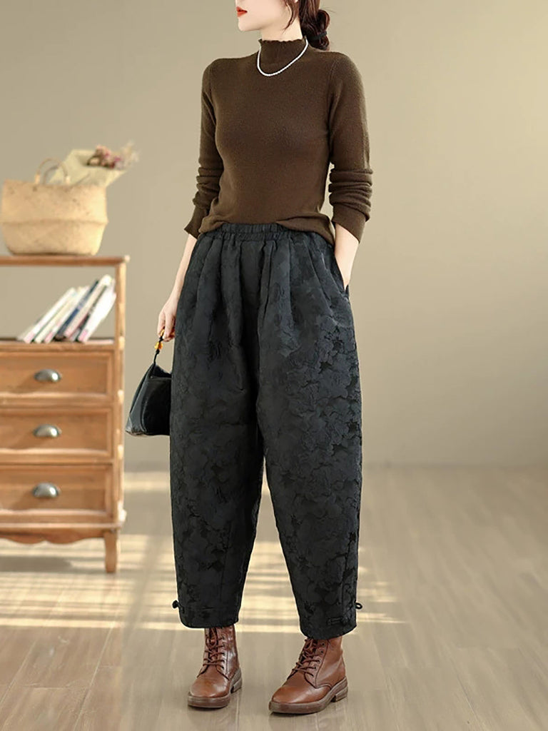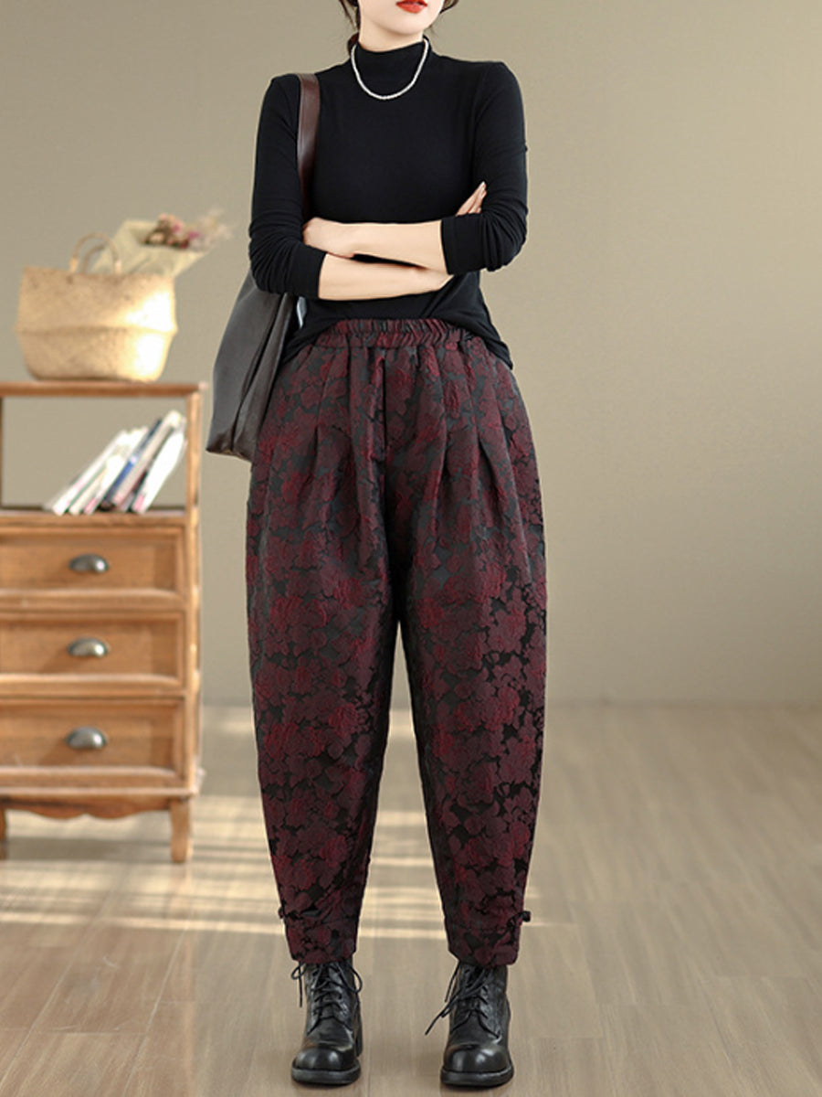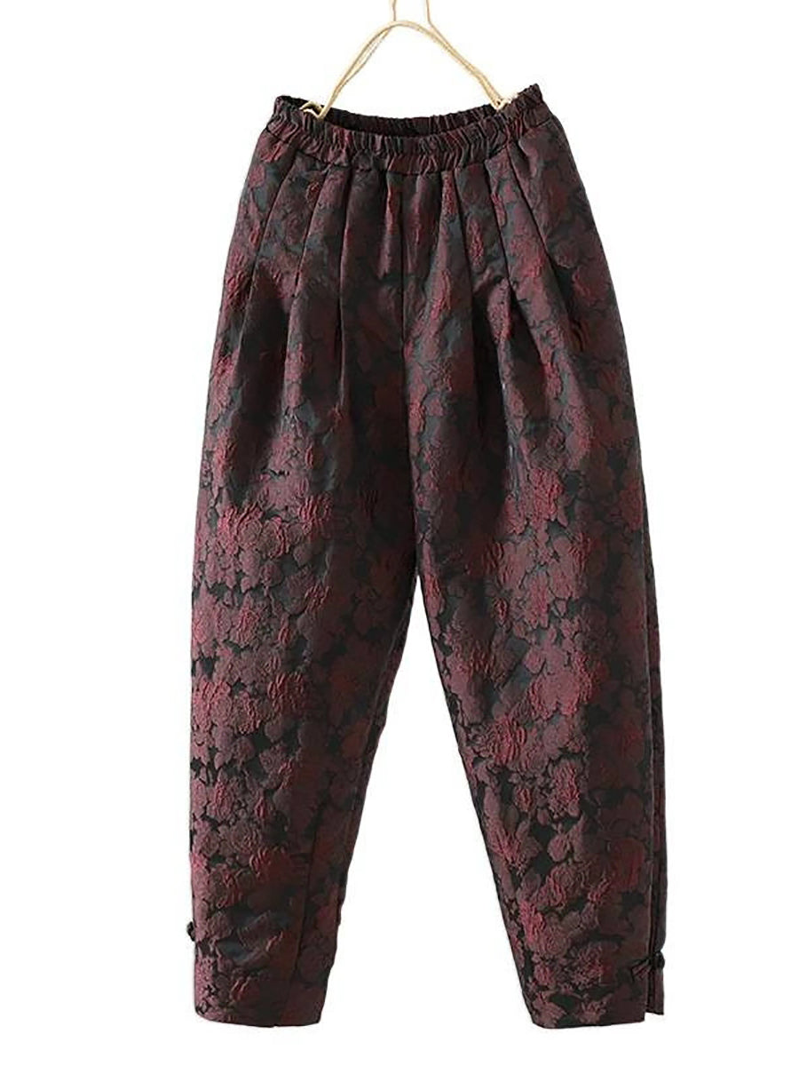 Vetrarblóma Jacquard flísfóðruð Harem buxur fyrir konur